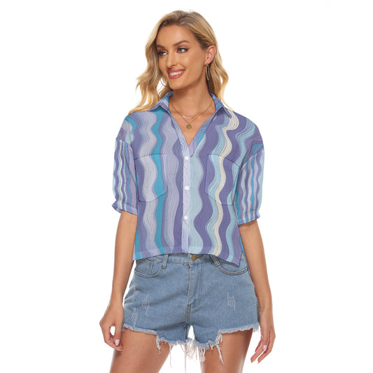 Mrs White Rabbit -- Women's Stacked V-neck Short Sleeve Blouse