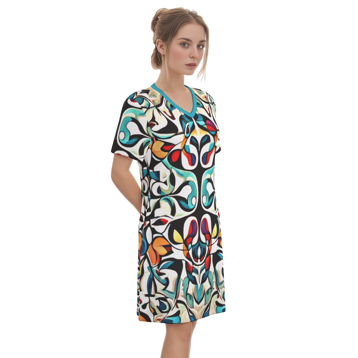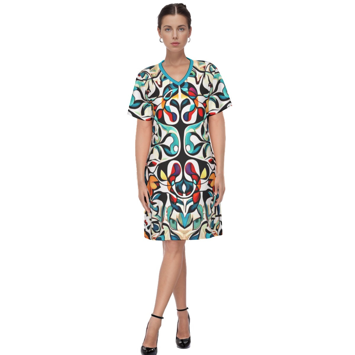 This V-necked short-sleeved dress features a breathable design, providing an unparalleled level of comfort.