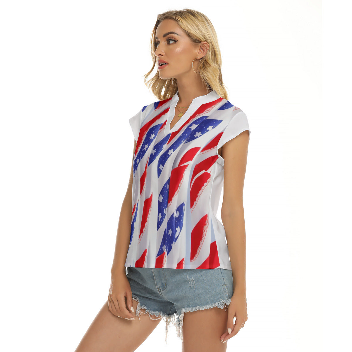 4th -- Women's Stacked V-neck Short Sleeve Blouse