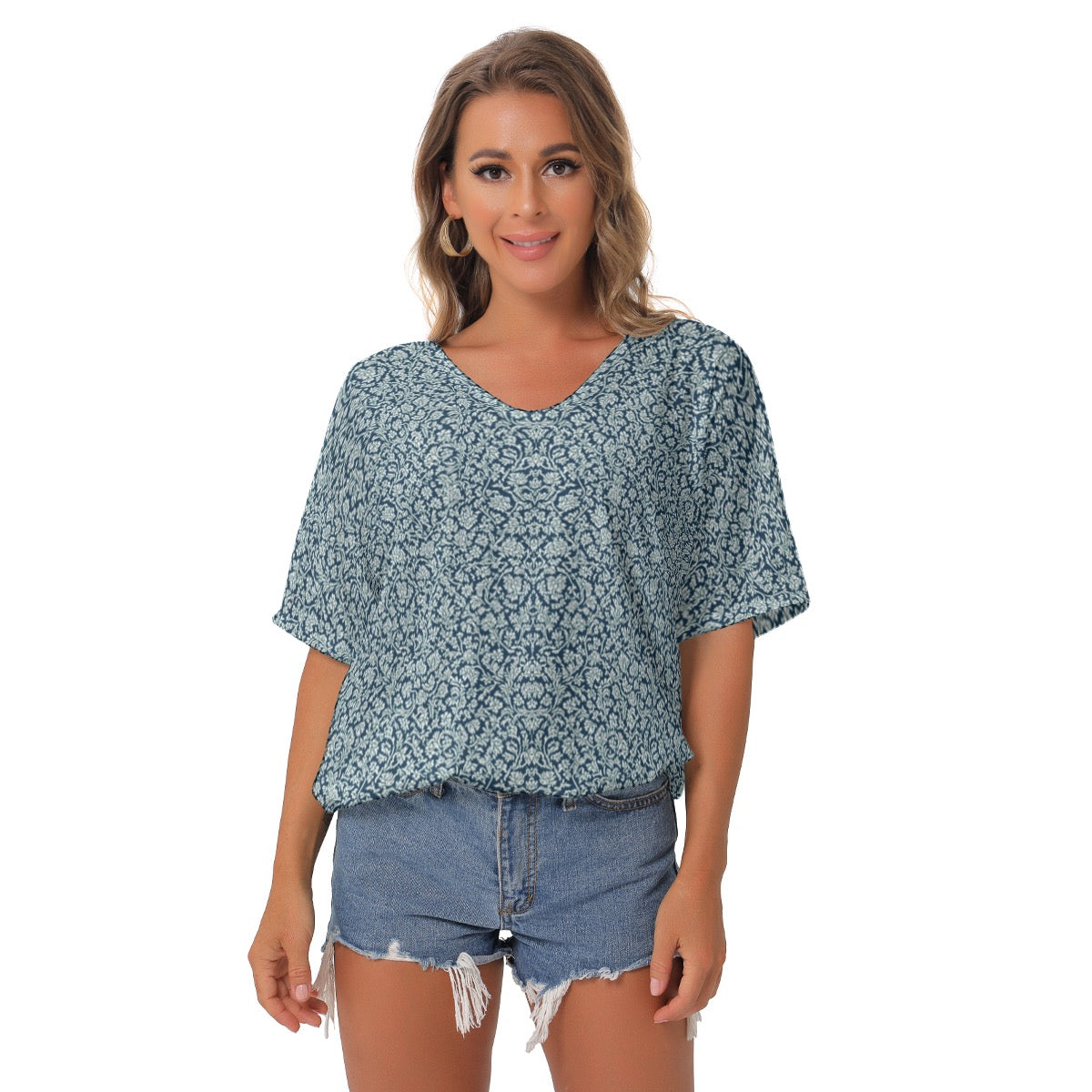Alice -- Women's Bat Sleeves V-Neck Blouse