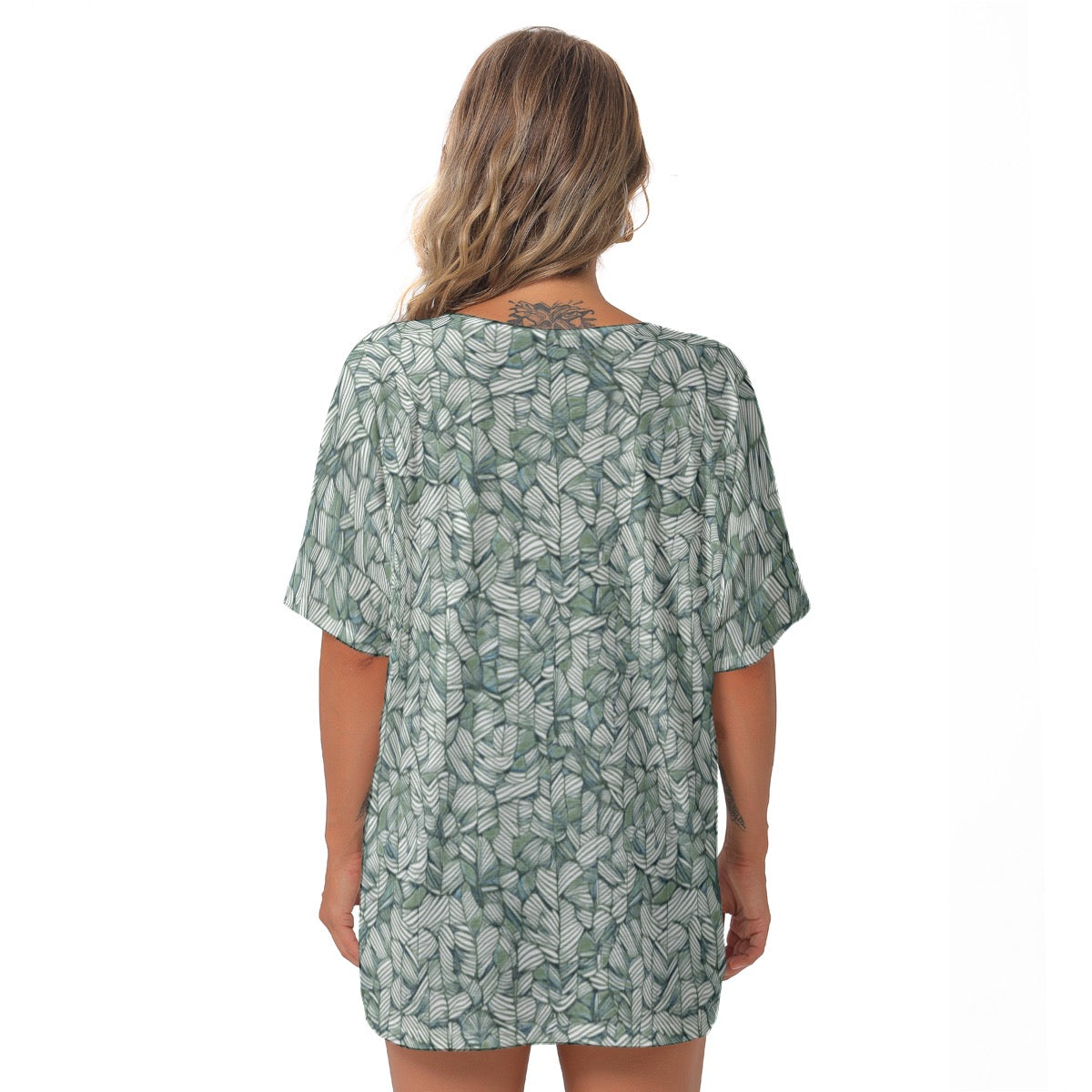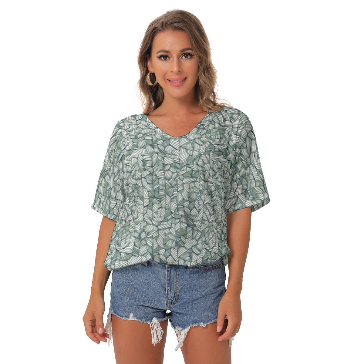 Water Lily -- Women's Bat Sleeves V-Neck Blouse