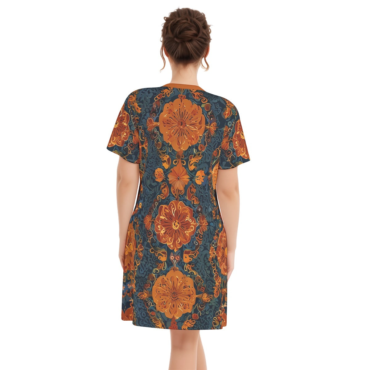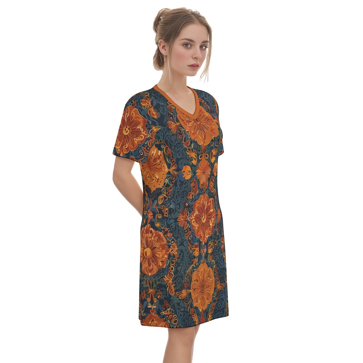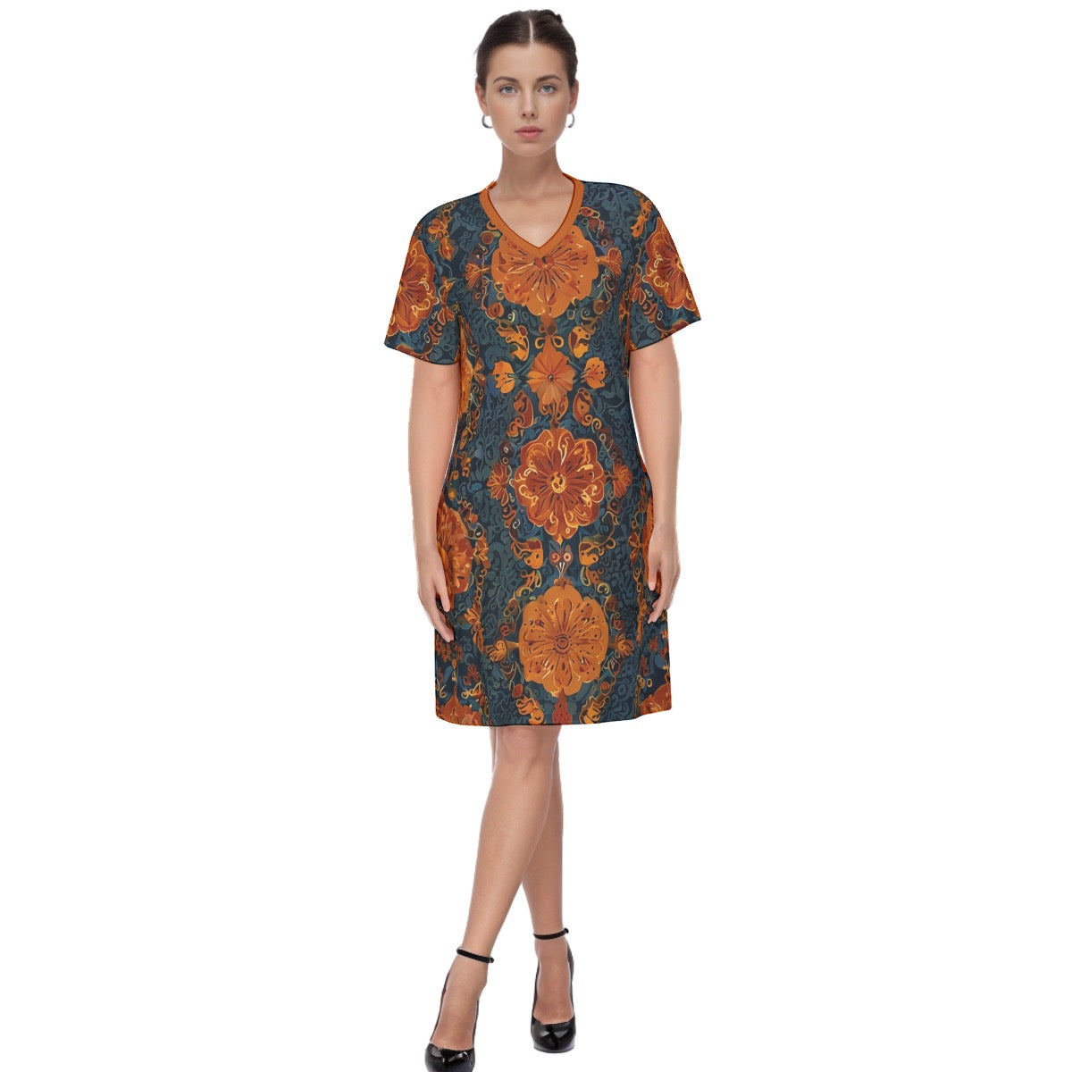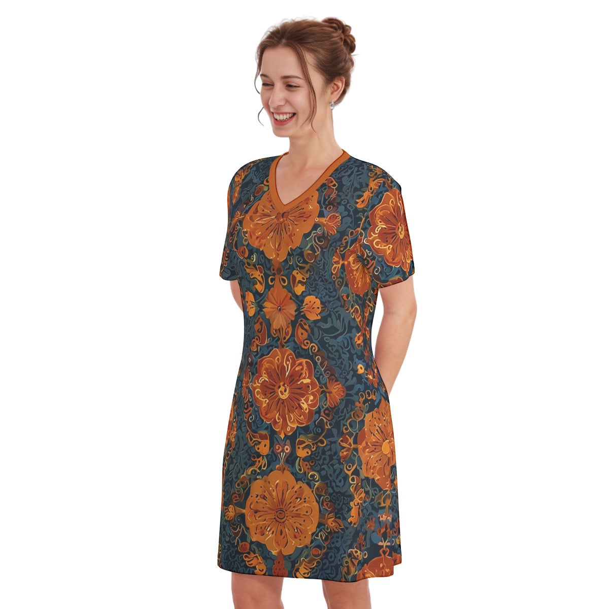 This V-necked short-sleeved dress features a breathable design, providing an unparalleled level of comfort.
