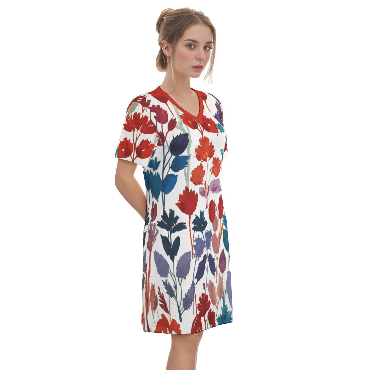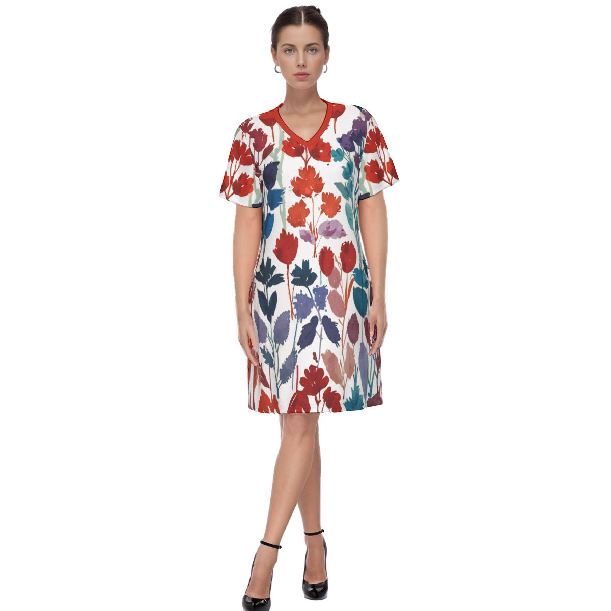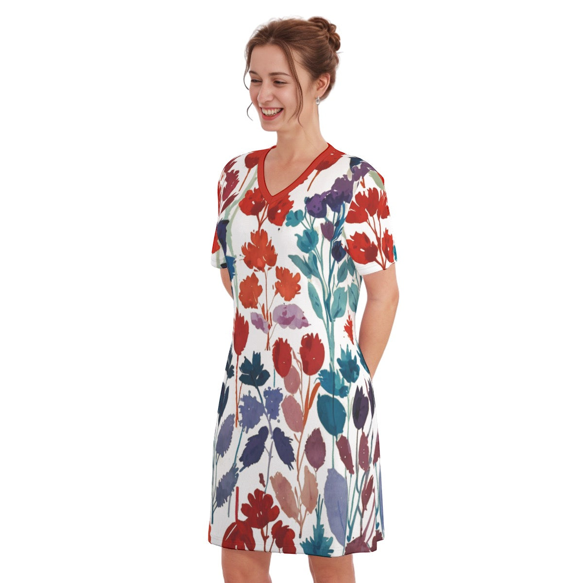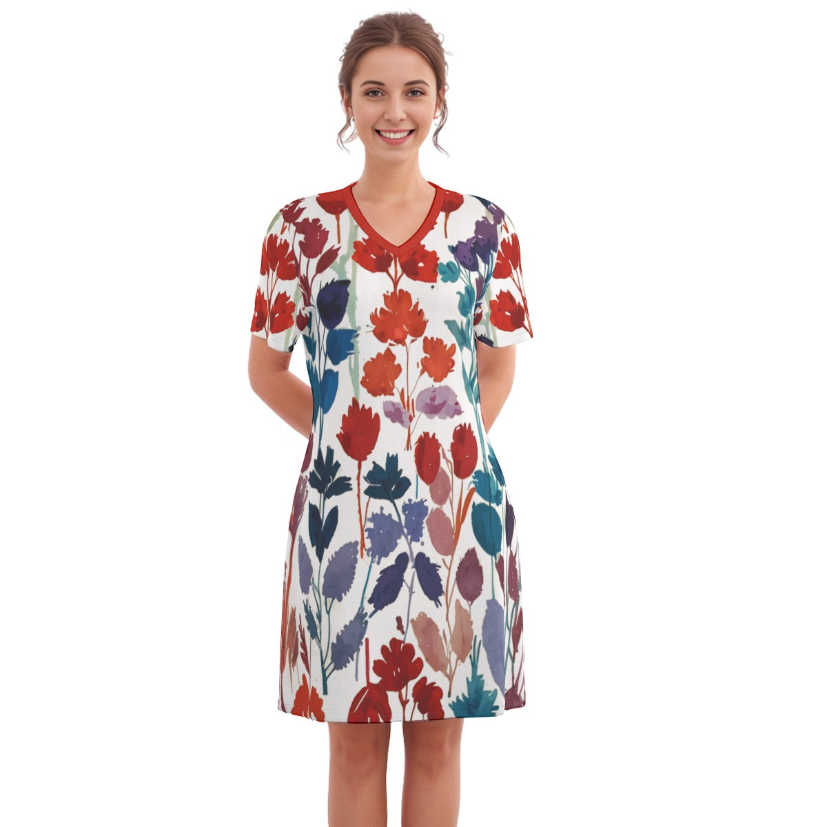 This V-necked short-sleeved dress features a breathable design, providing an unparalleled level of comfort.