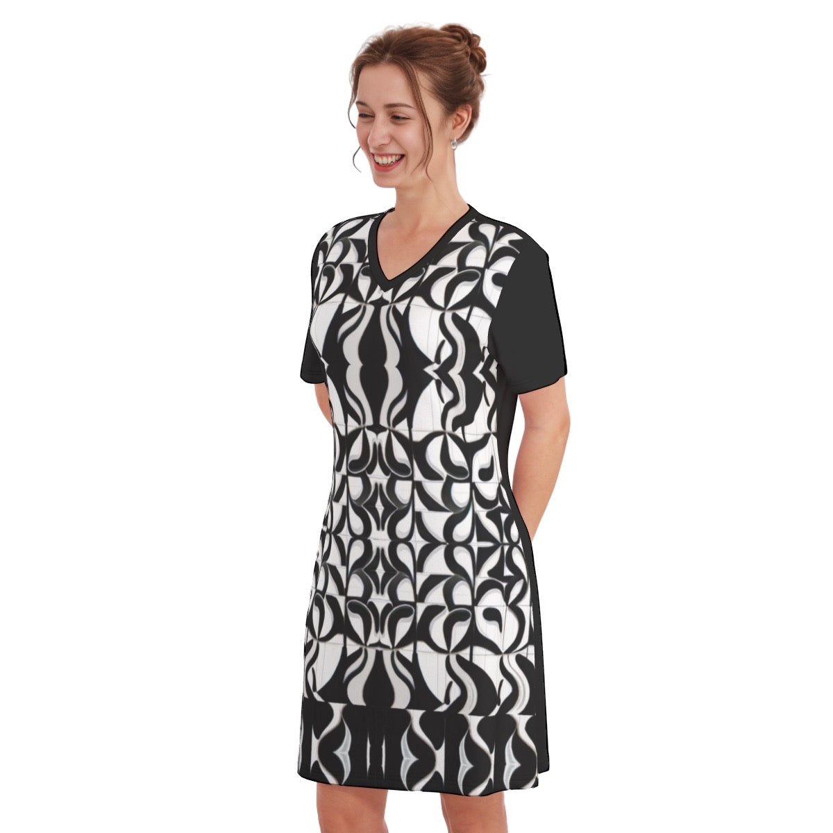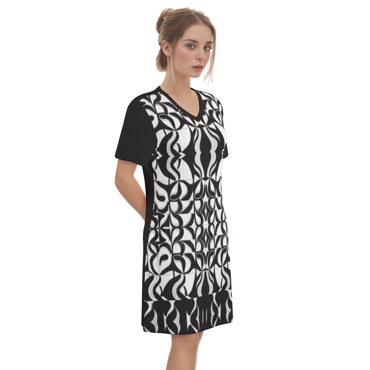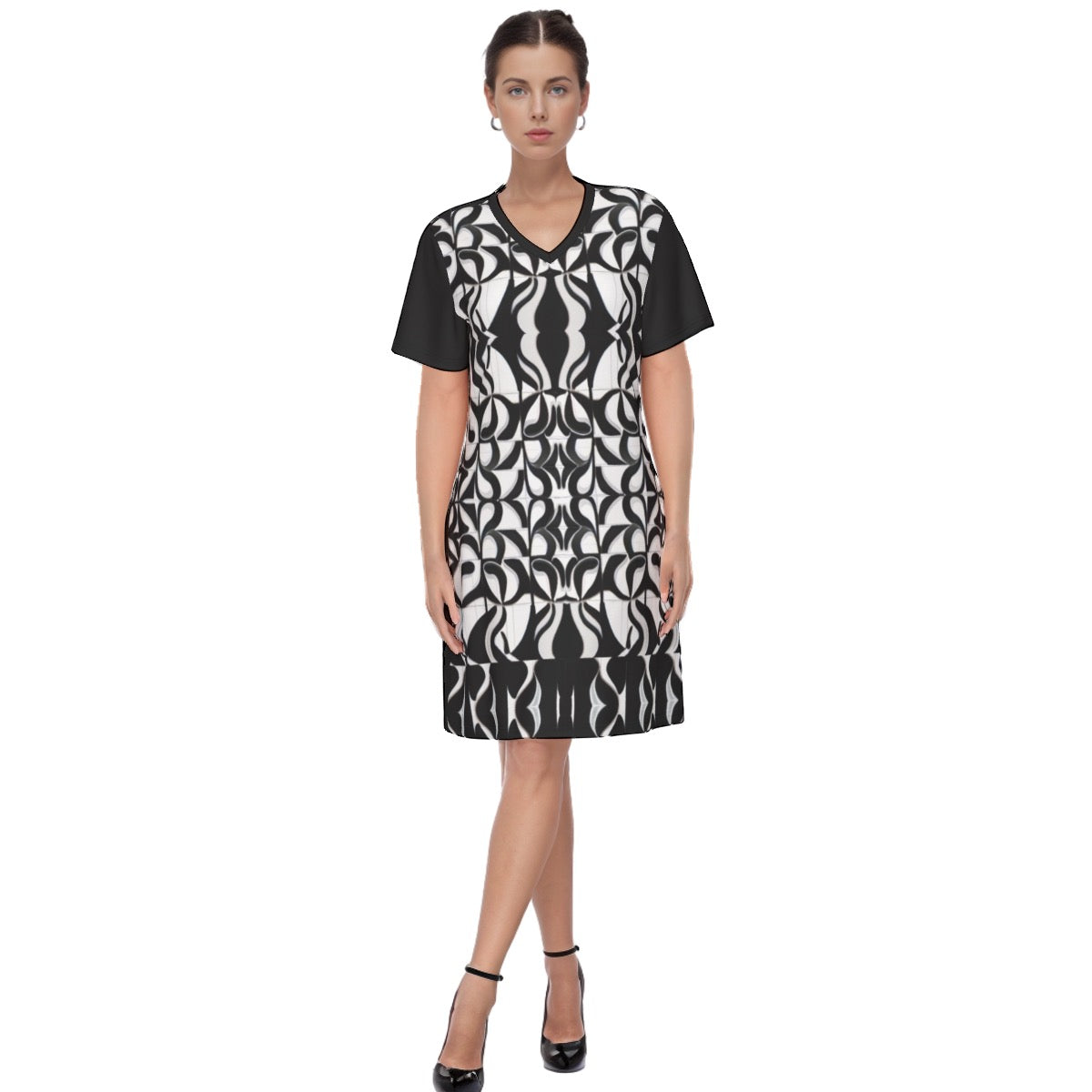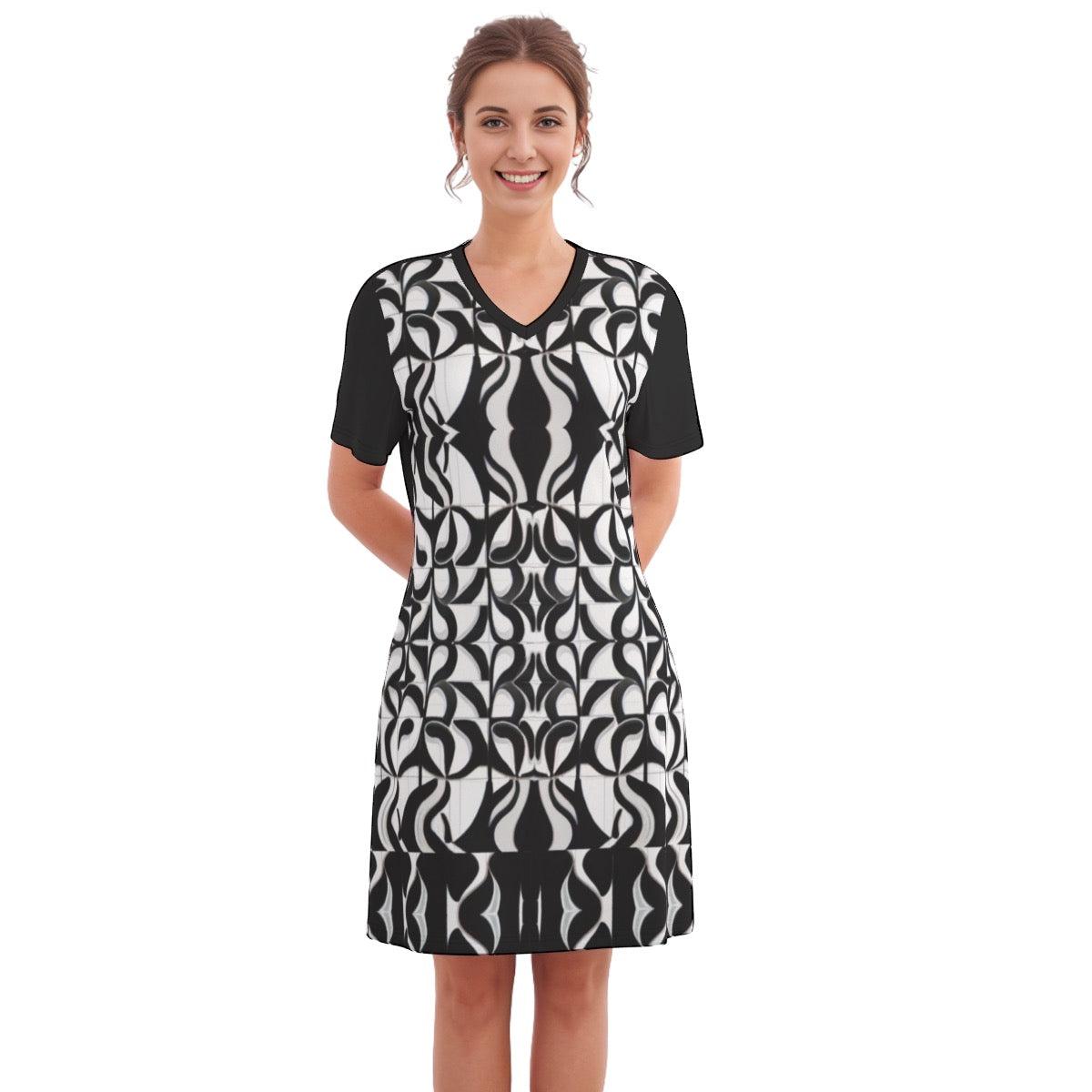 This V-necked short-sleeved dress features a breathable design, providing an unparalleled level of comfort.