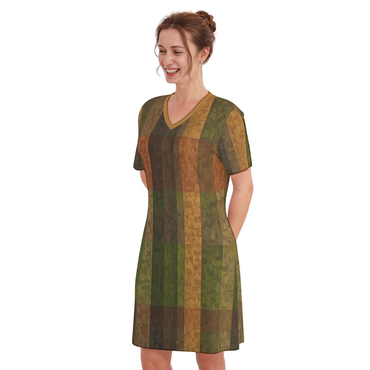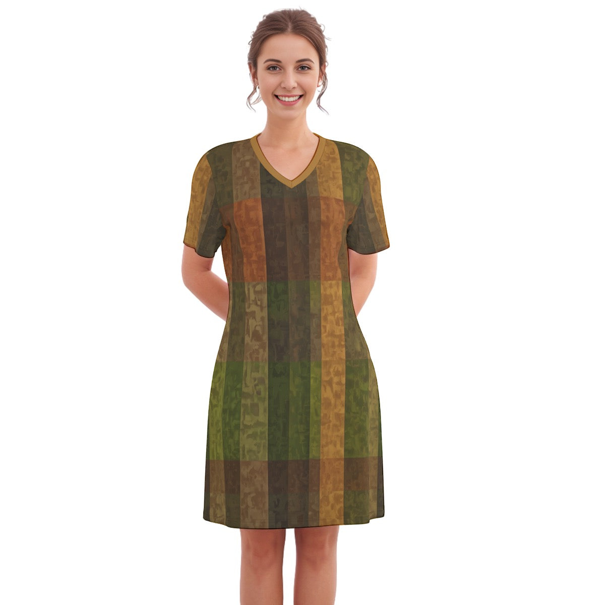 This V-necked short-sleeved dress features a breathable design, providing an unparalleled level of comfort.
