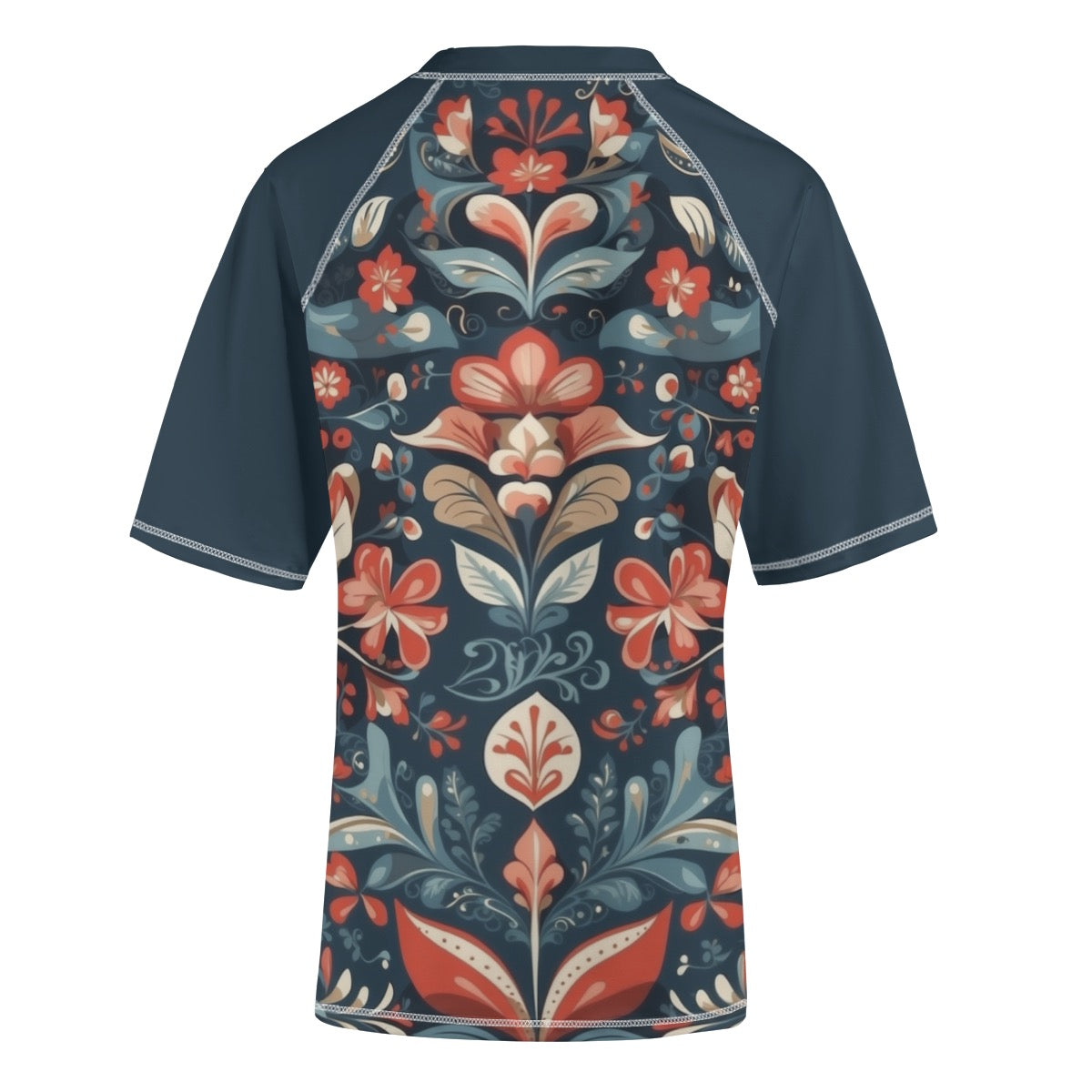 This short-sleeved yoga garment is made of high-quality fabric, has excellent elasticity and comfort, and can meet the needs of various yoga movements. The surface printing is smooth and the color reproduction is high, making your yoga clothes more fashionable and personalized. The unique four-needle and six-thread craftsmanship gives this yoga wear high quality and durability. Additionally, this yoga clothing has excellent breathability and moisture absorption to keep you dry and comfortable while practicing yoga. All in all, this yoga wear is an ideal choice if you are looking for high quality, comfort and personalization.