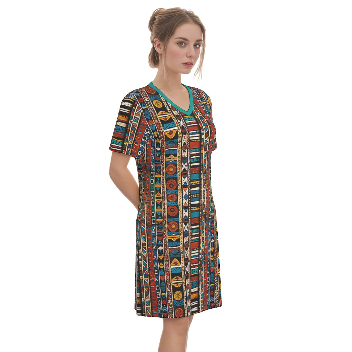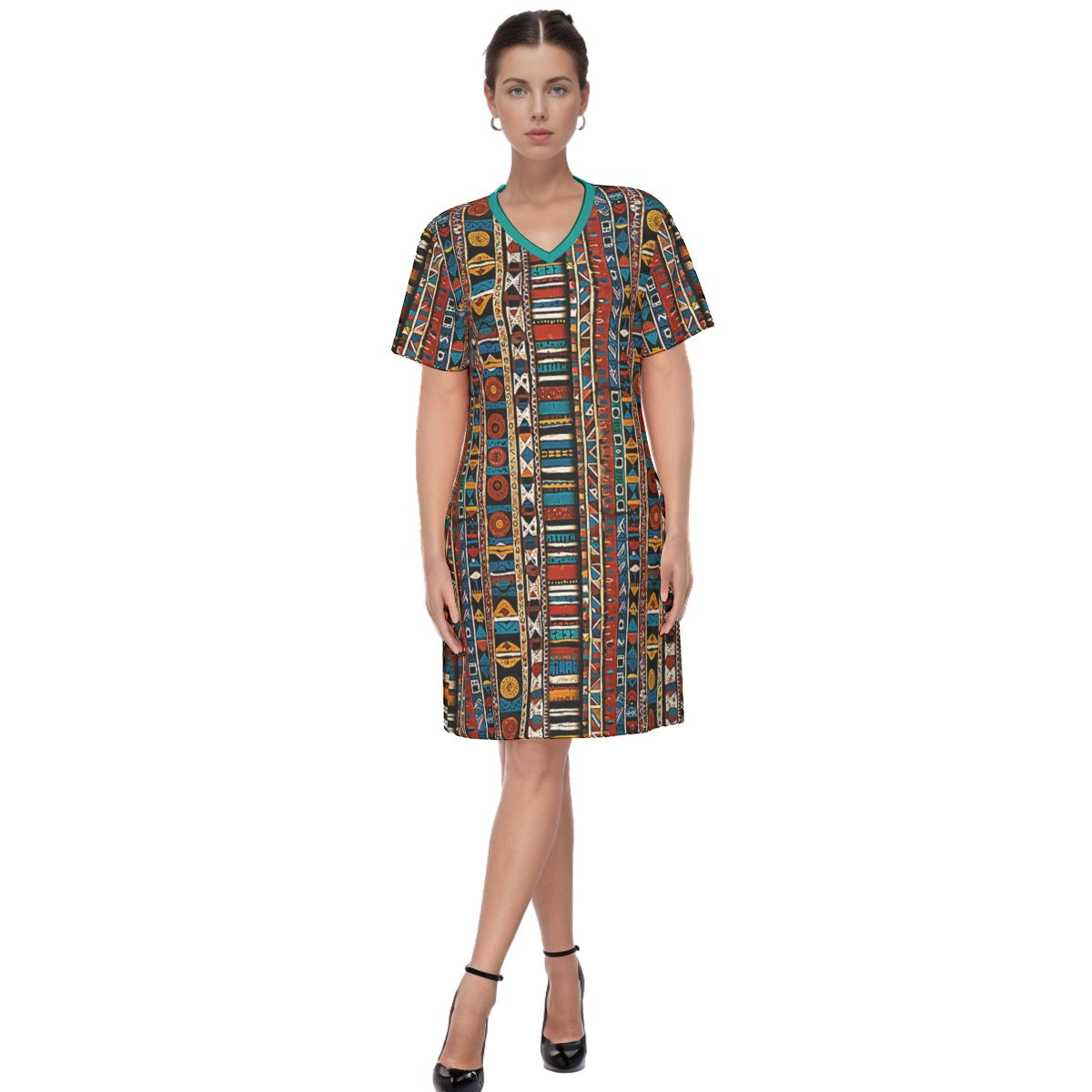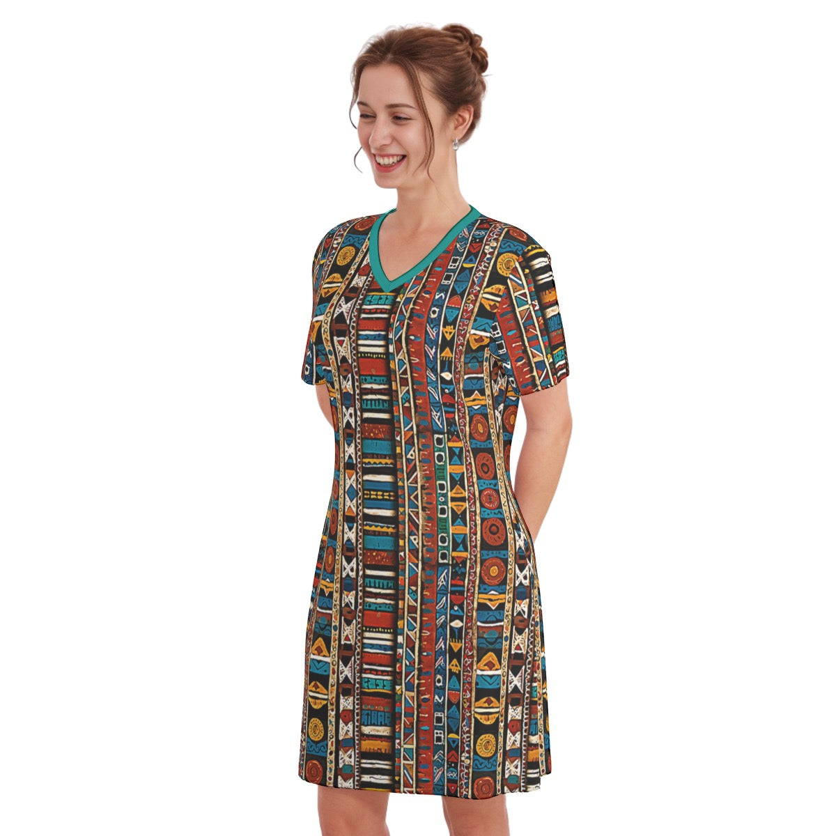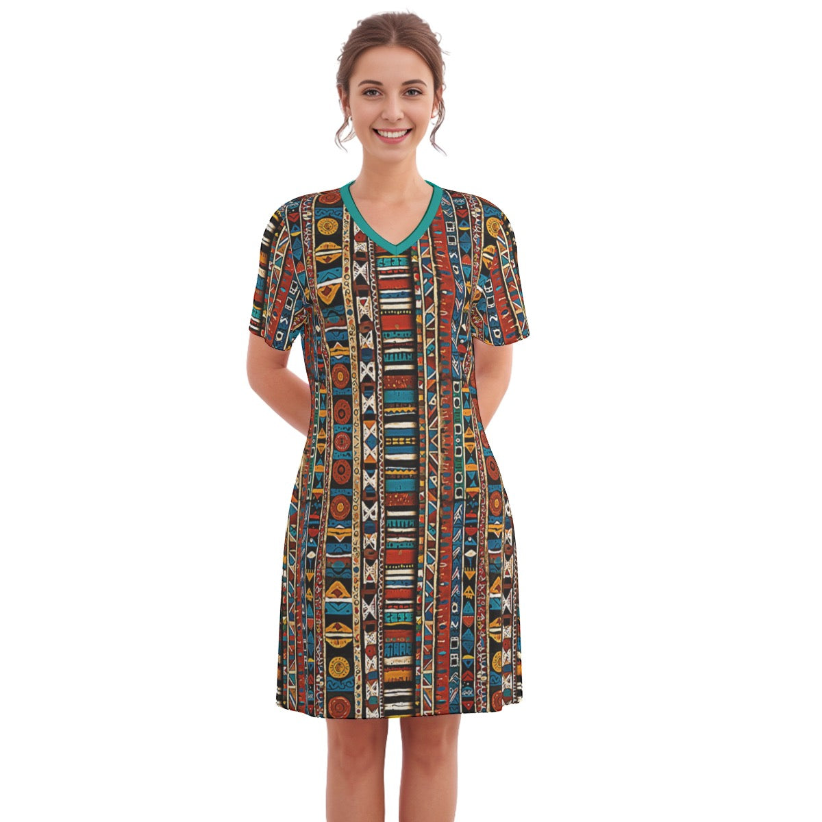 Bogolan -- Women's V Neck Dress 100% Cotton