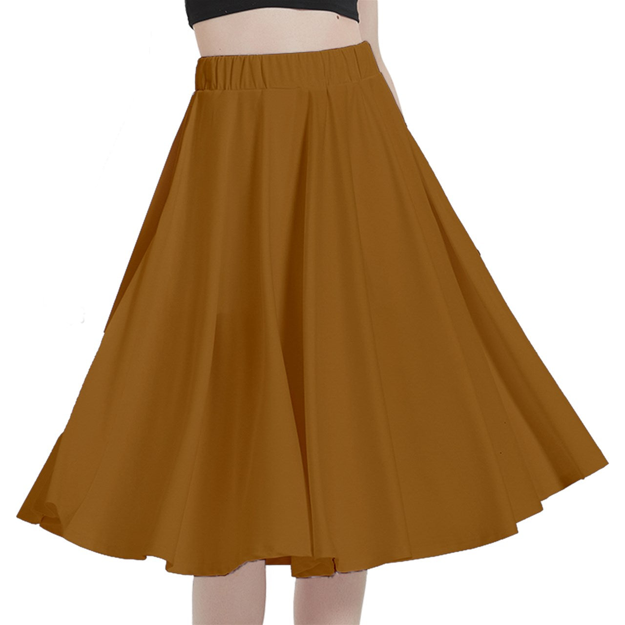 Brown A-Line Full Circle Midi Skirt w/ Pocket has full circle flare and is a staple for every wardrobe and full enough for a petticoat, if you'd like. Slip on your new skirt, relax, and have some fun.