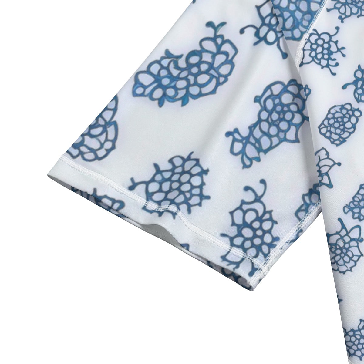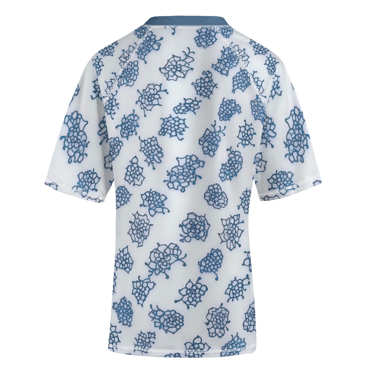 This short-sleeved yoga garment is made of high-quality fabric, has excellent elasticity and comfort, and can meet the needs of various yoga movements. The surface printing is smooth and the color reproduction is high, making your yoga clothes more fashionable and personalized. The unique four-needle and six-thread craftsmanship gives this yoga wear high quality and durability. Additionally, this yoga clothing has excellent breathability and moisture absorption to keep you dry and comfortable while practicing yoga. All in all, this yoga wear is an ideal choice if you are looking for high quality, comfort and personalization.