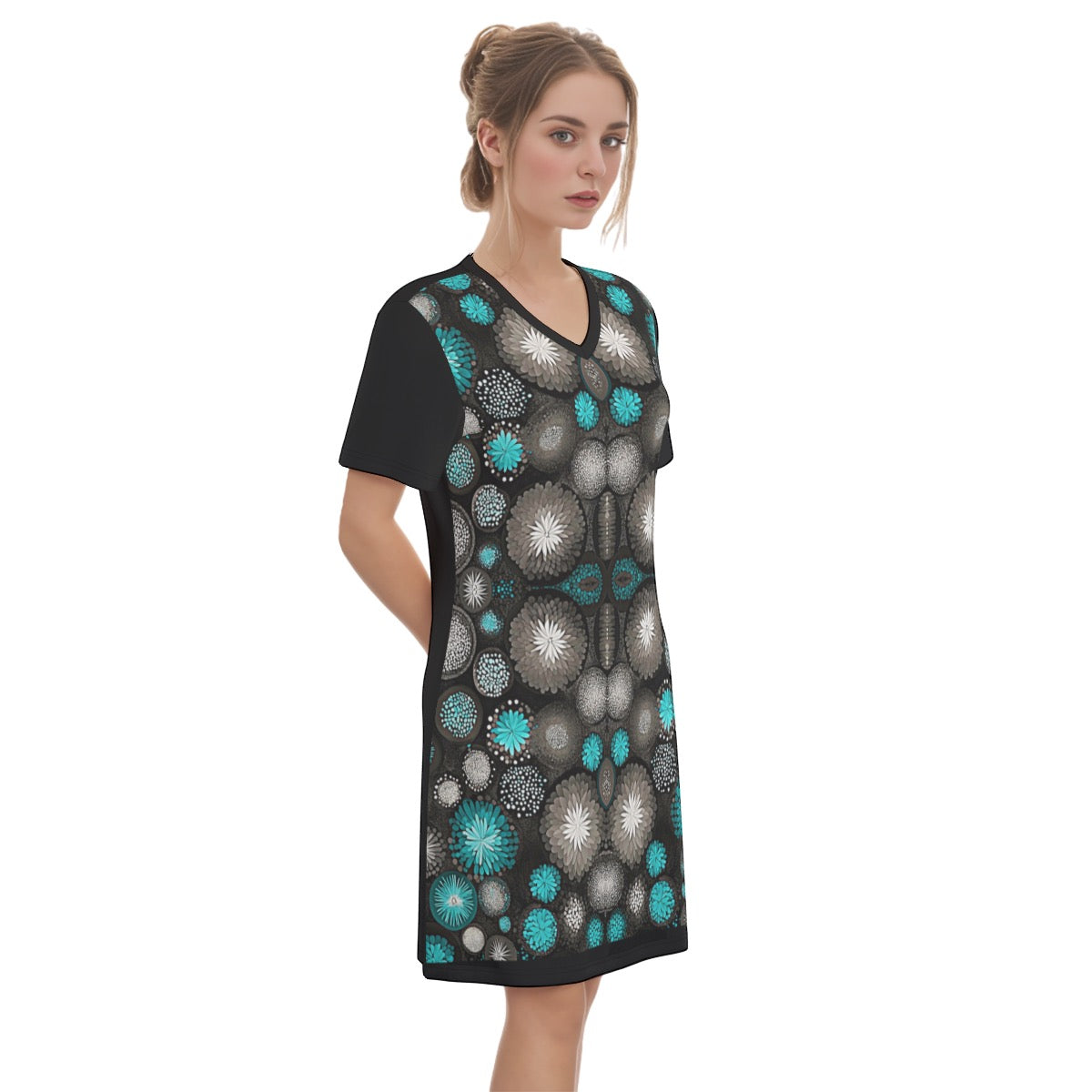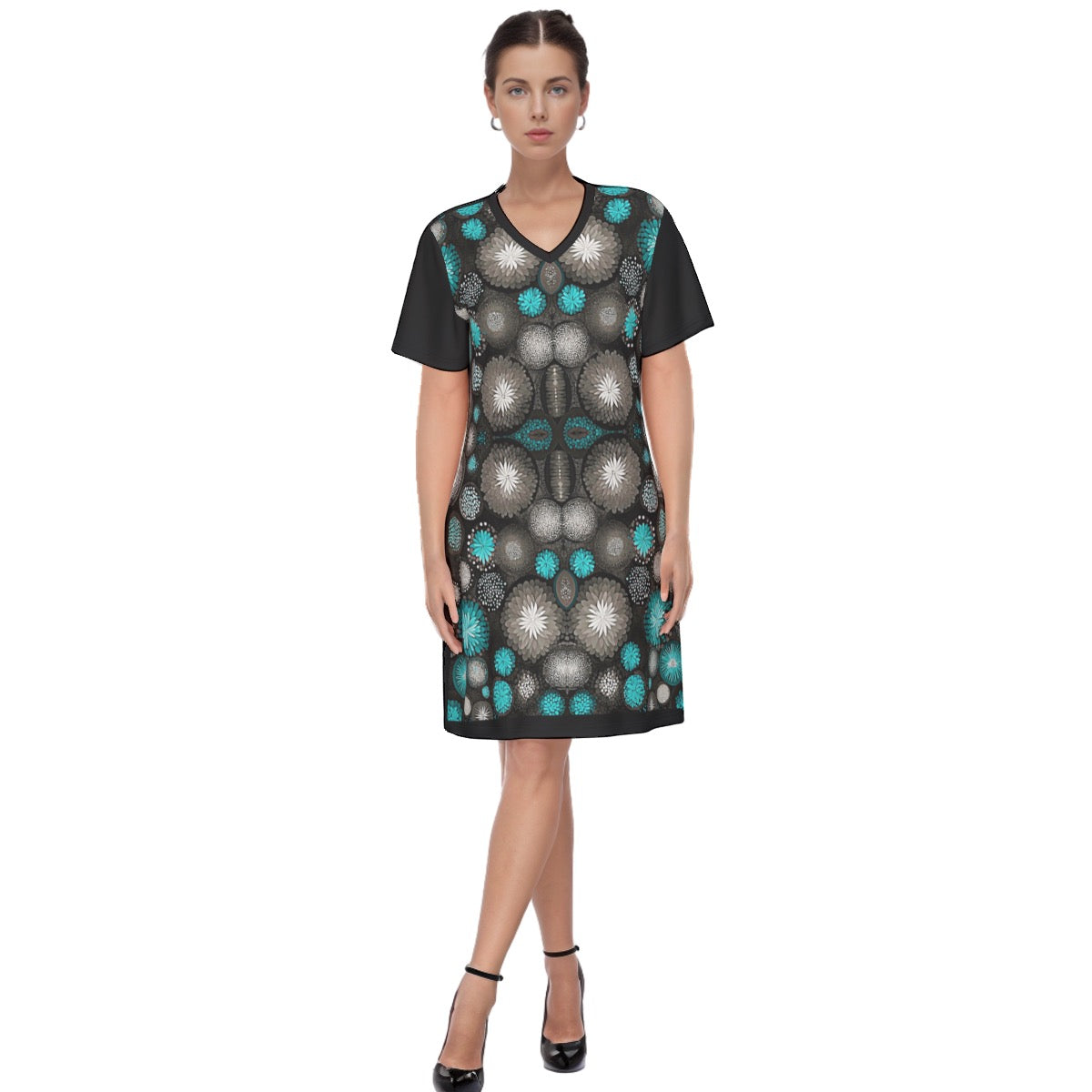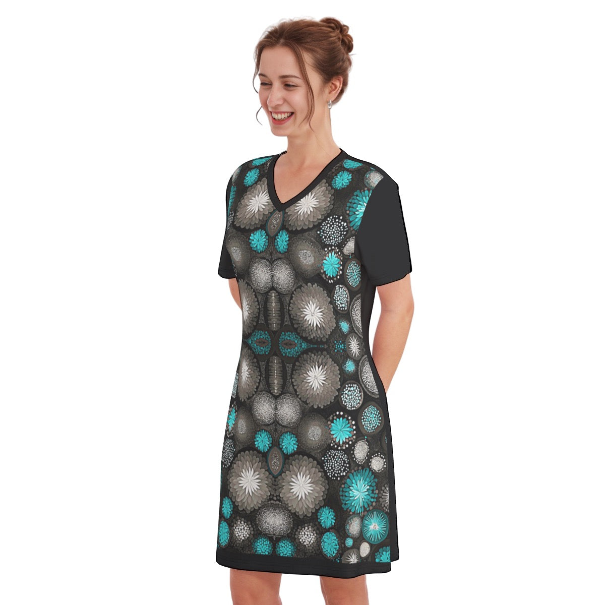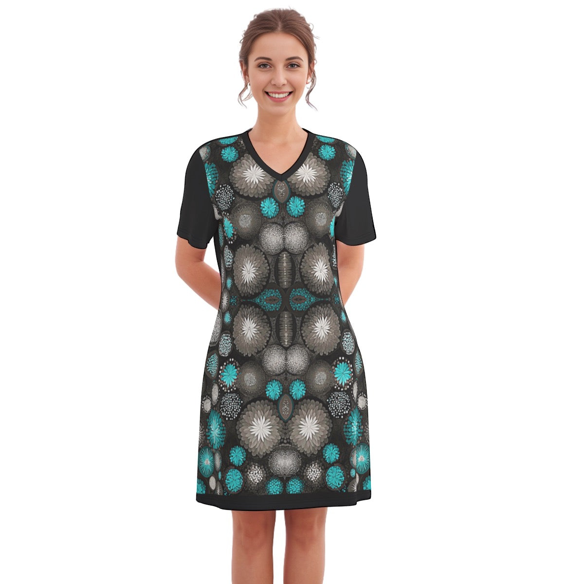 This V-necked short-sleeved dress features a breathable design, providing an unparalleled level of comfort.