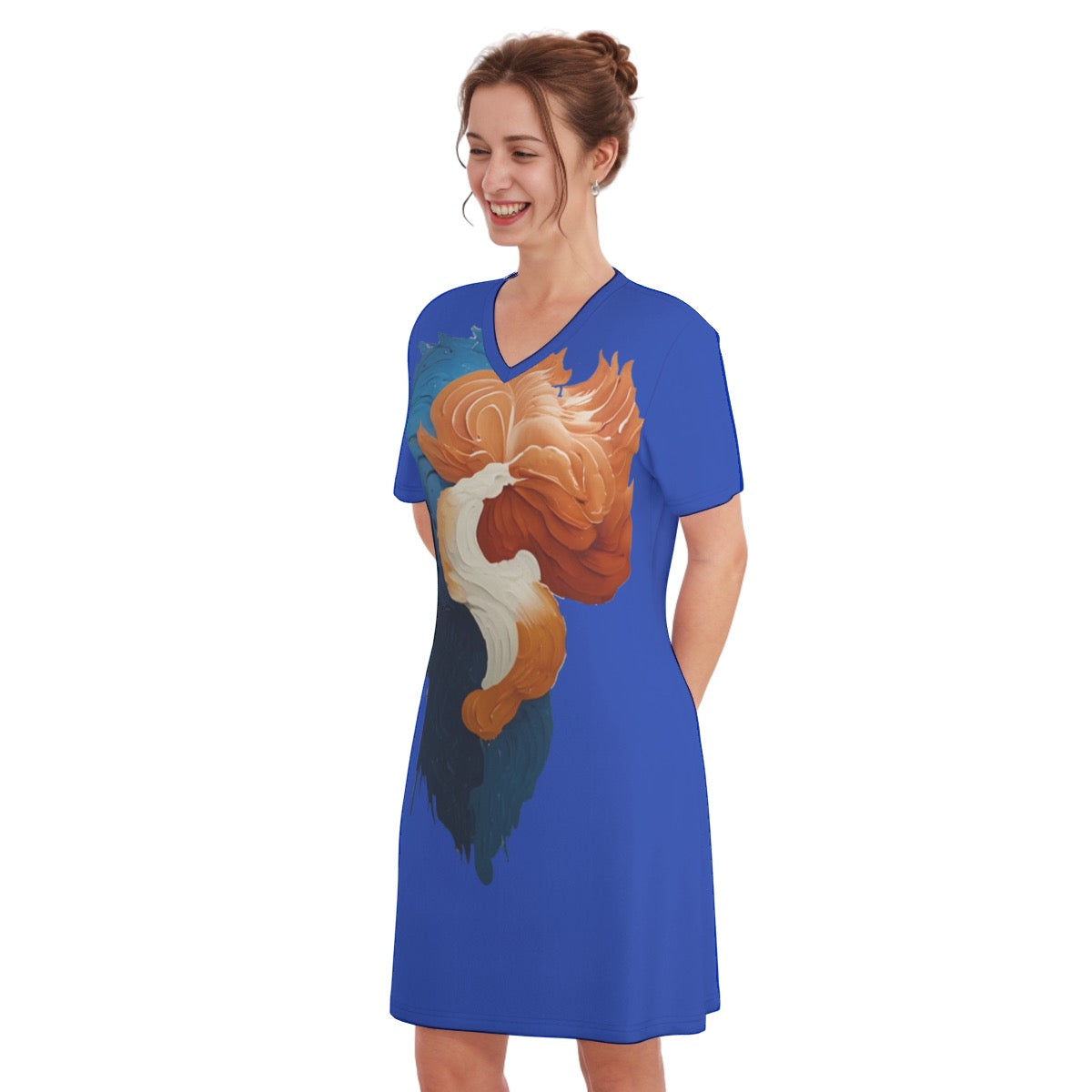 Chanticleer -- Women's V Neck Dress 100% Cotton