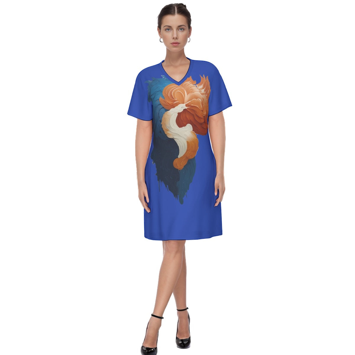 This V-necked short-sleeved dress features a breathable design, providing an unparalleled level of comfort.