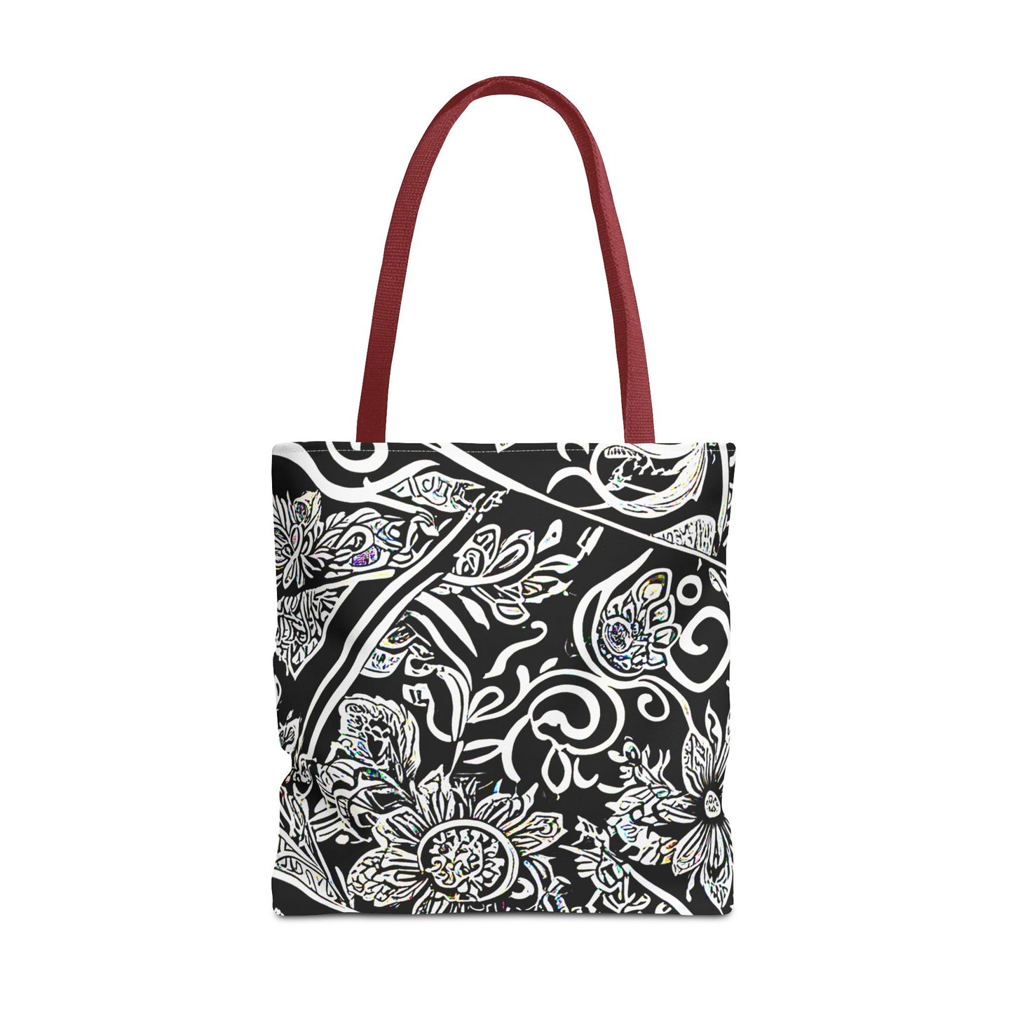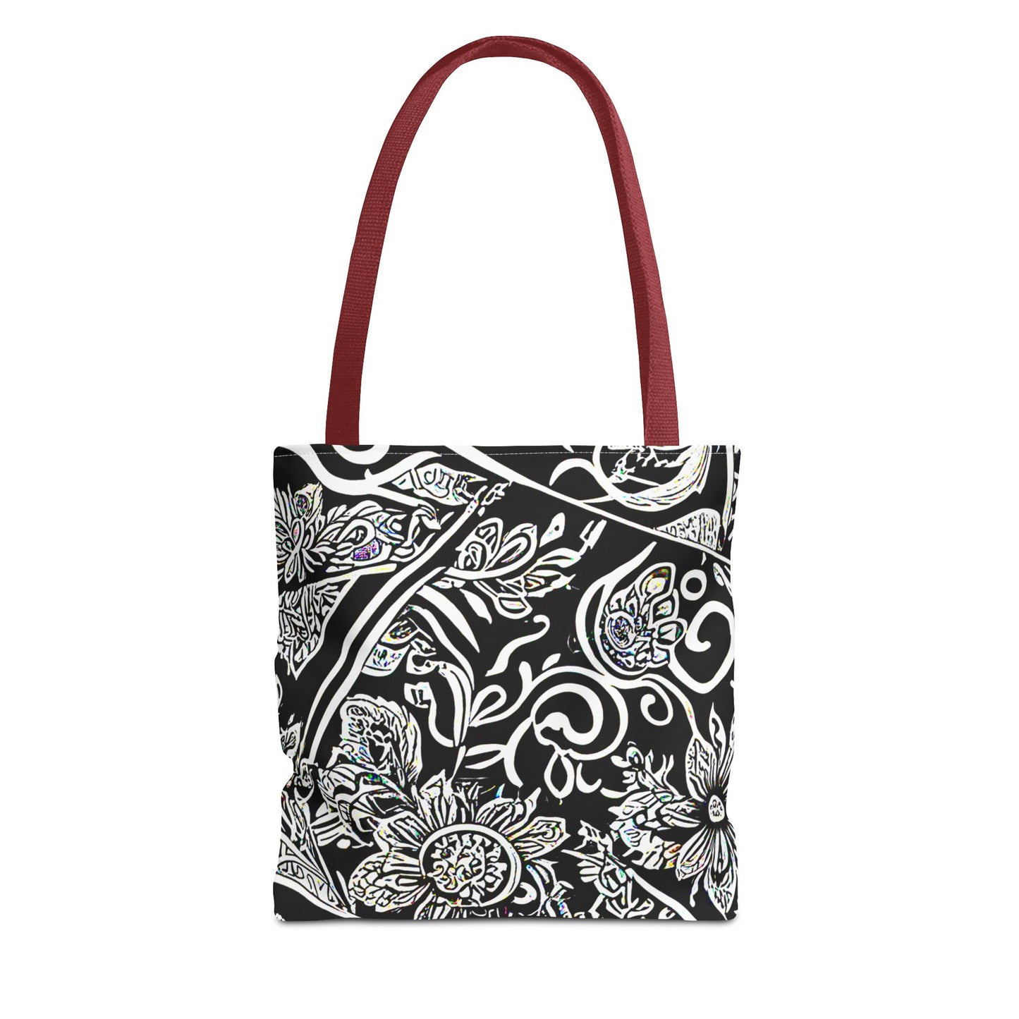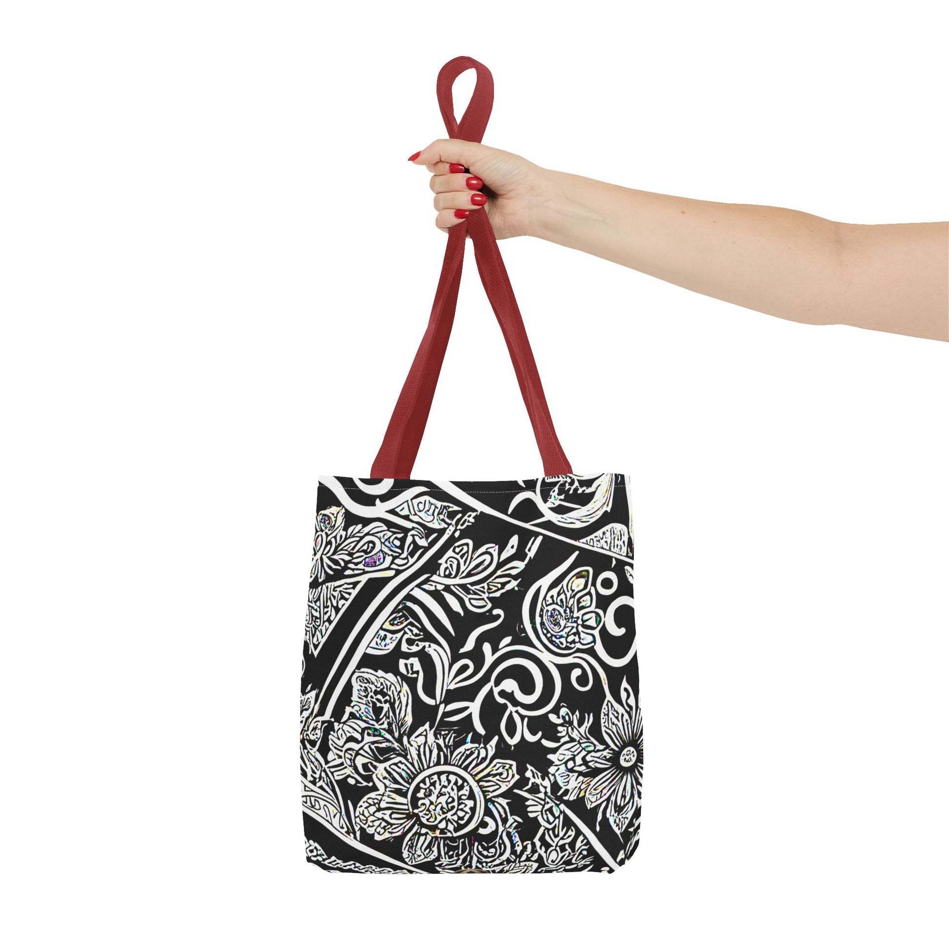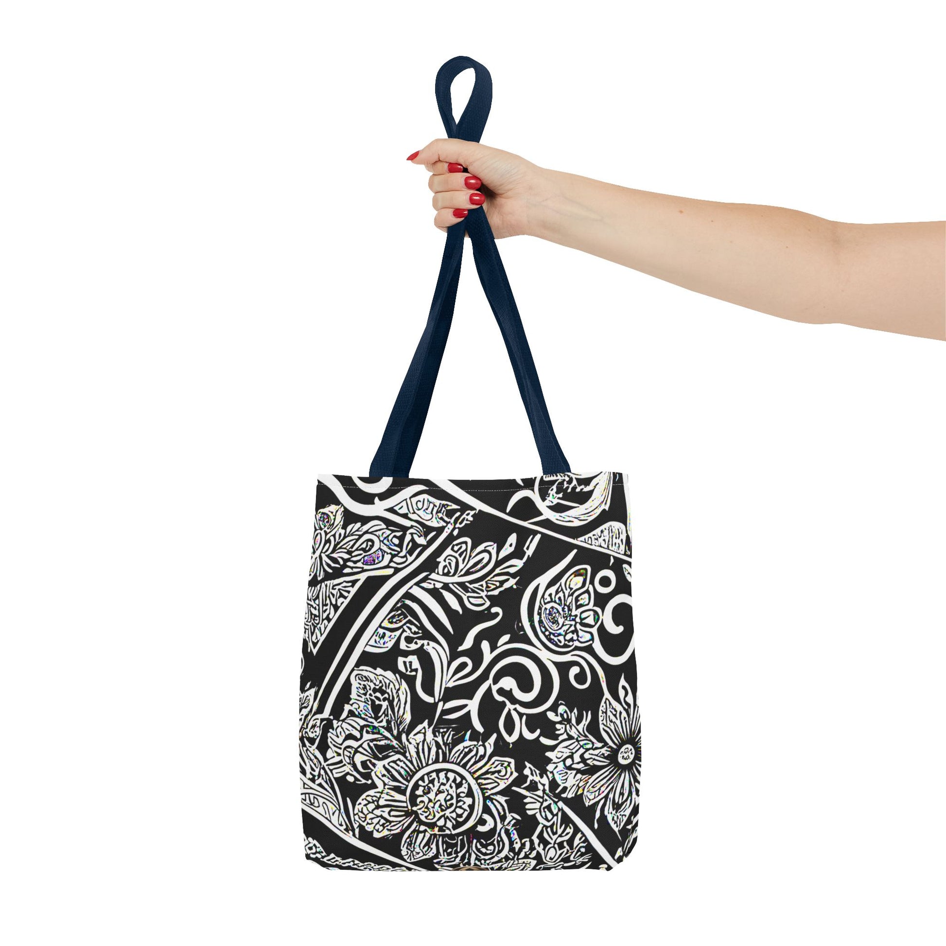 Perfect for a day out at the museum or small shops, this tote bag comes in three sizes to suit your needs. Made of 100% polyester, it is durable and practical for everyday use. With reinforced stitching on the handles and boxed corners, this tote bag is built to last. Available in 5 handle color options.