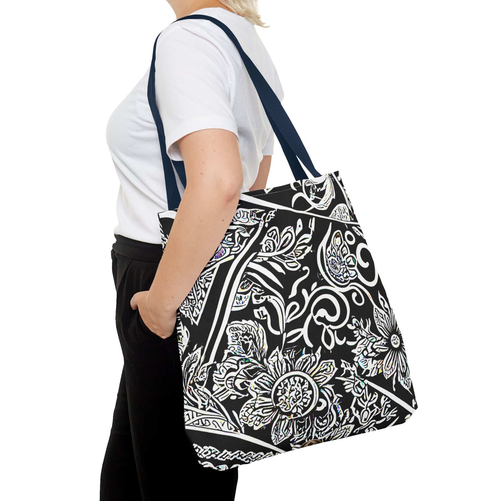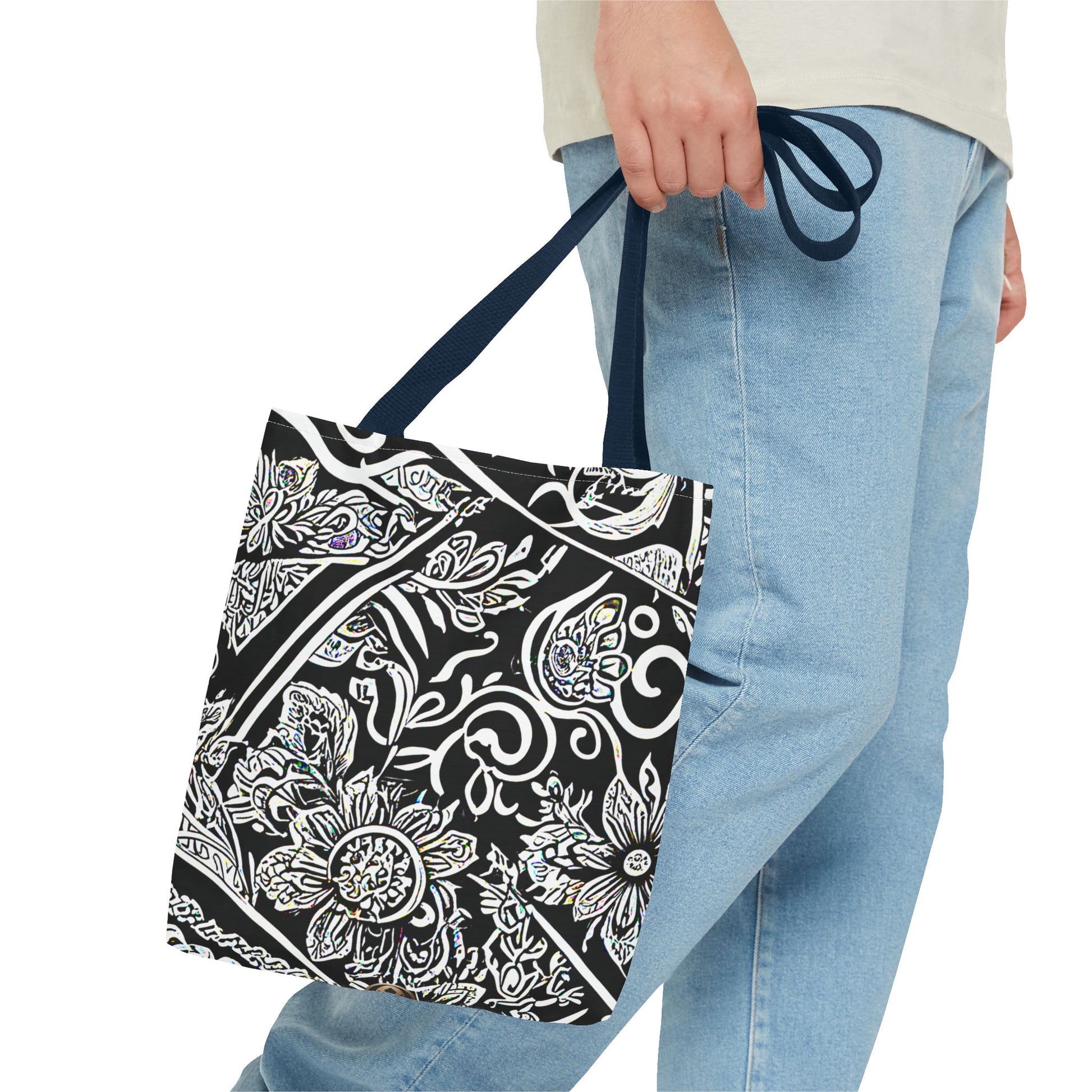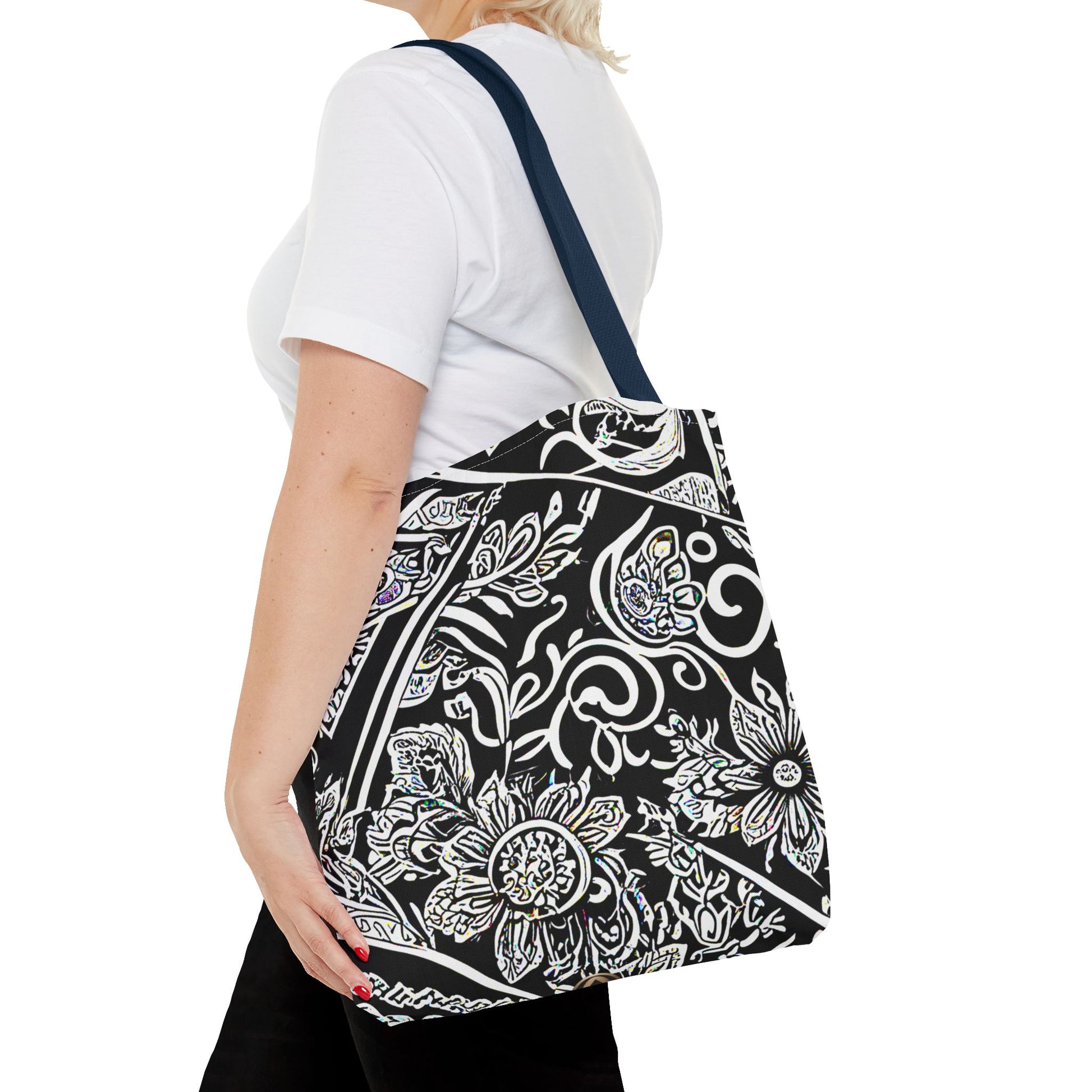 Perfect for a day out at the museum or small shops, this tote bag comes in three sizes to suit your needs. Made of 100% polyester, it is durable and practical for everyday use. With reinforced stitching on the handles and boxed corners, this tote bag is built to last. Available in 5 handle color options.