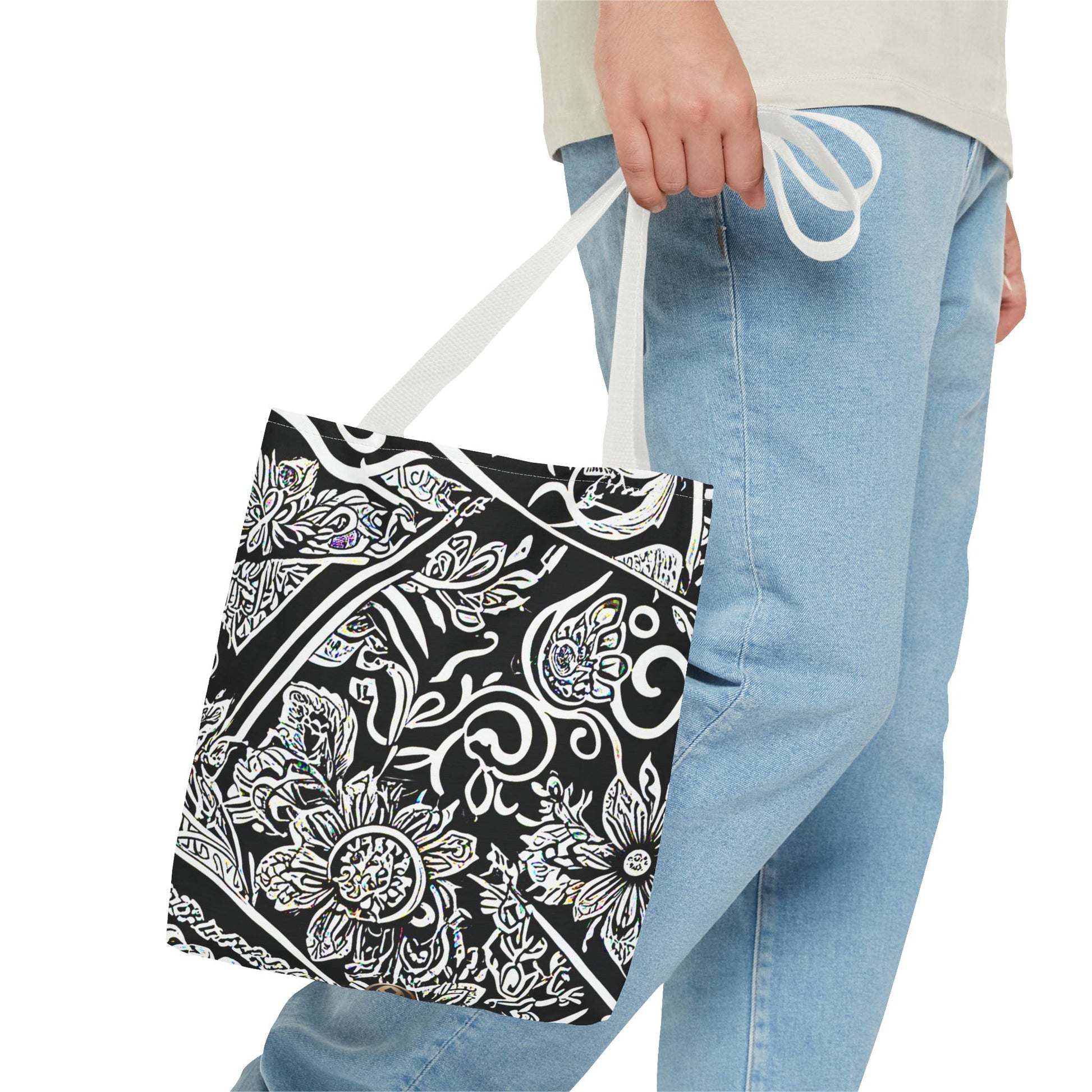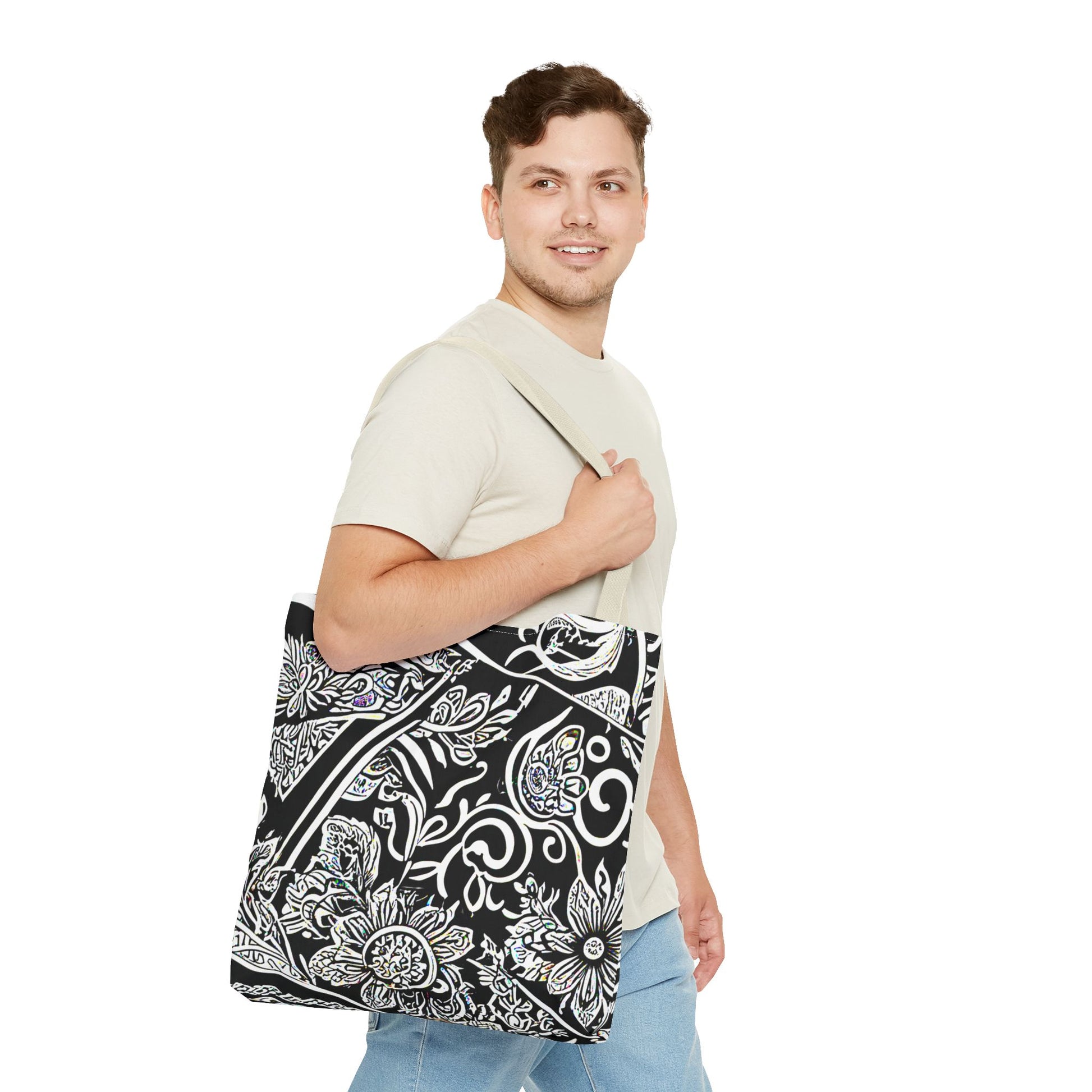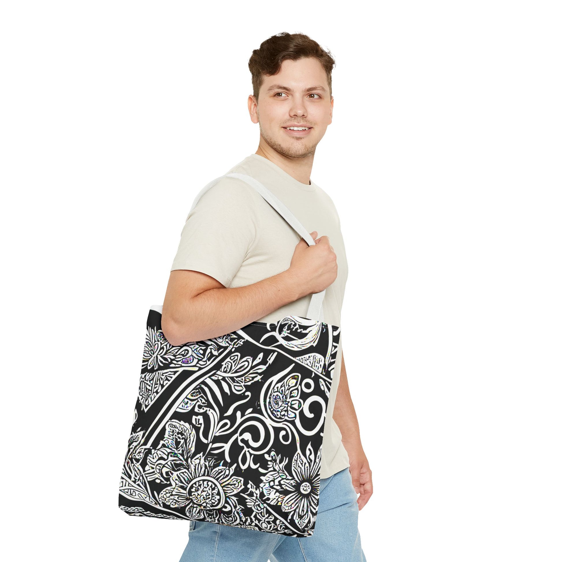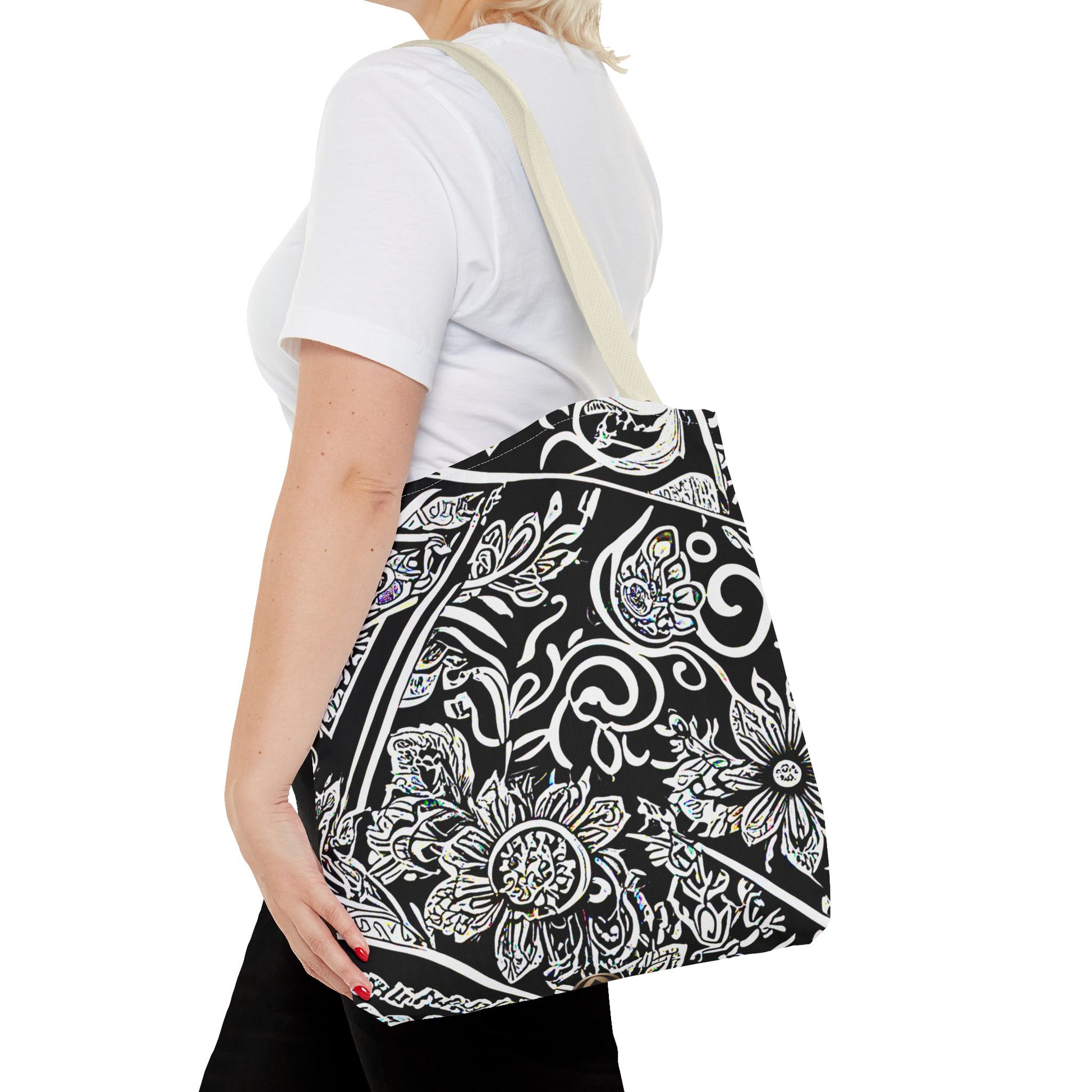 Perfect for a day out at the museum or small shops, this tote bag comes in three sizes to suit your needs. Made of 100% polyester, it is durable and practical for everyday use. With reinforced stitching on the handles and boxed corners, this tote bag is built to last. Available in 5 handle color options.