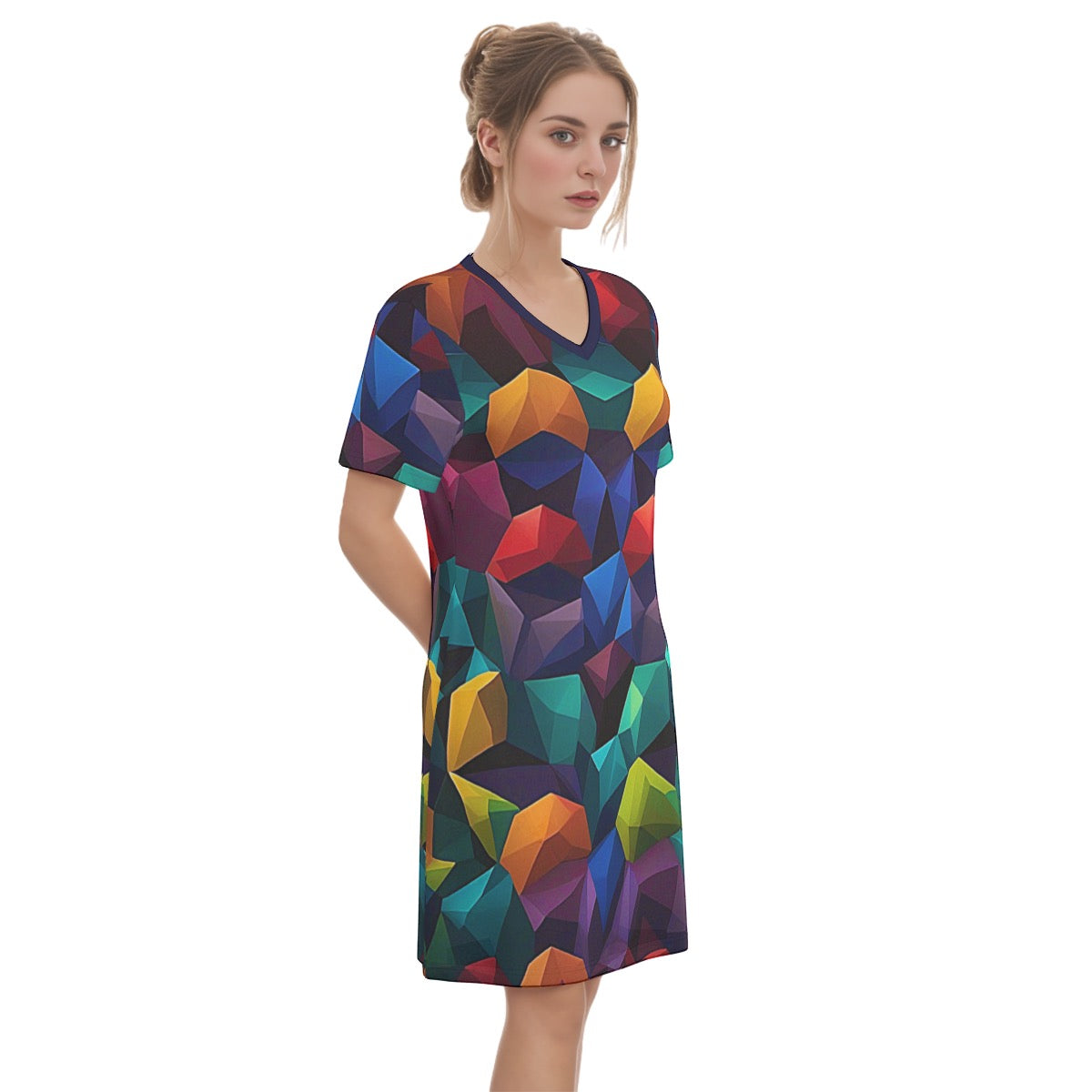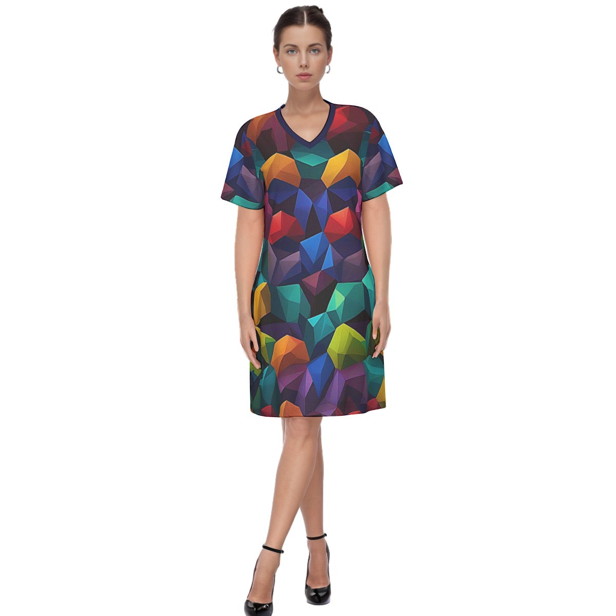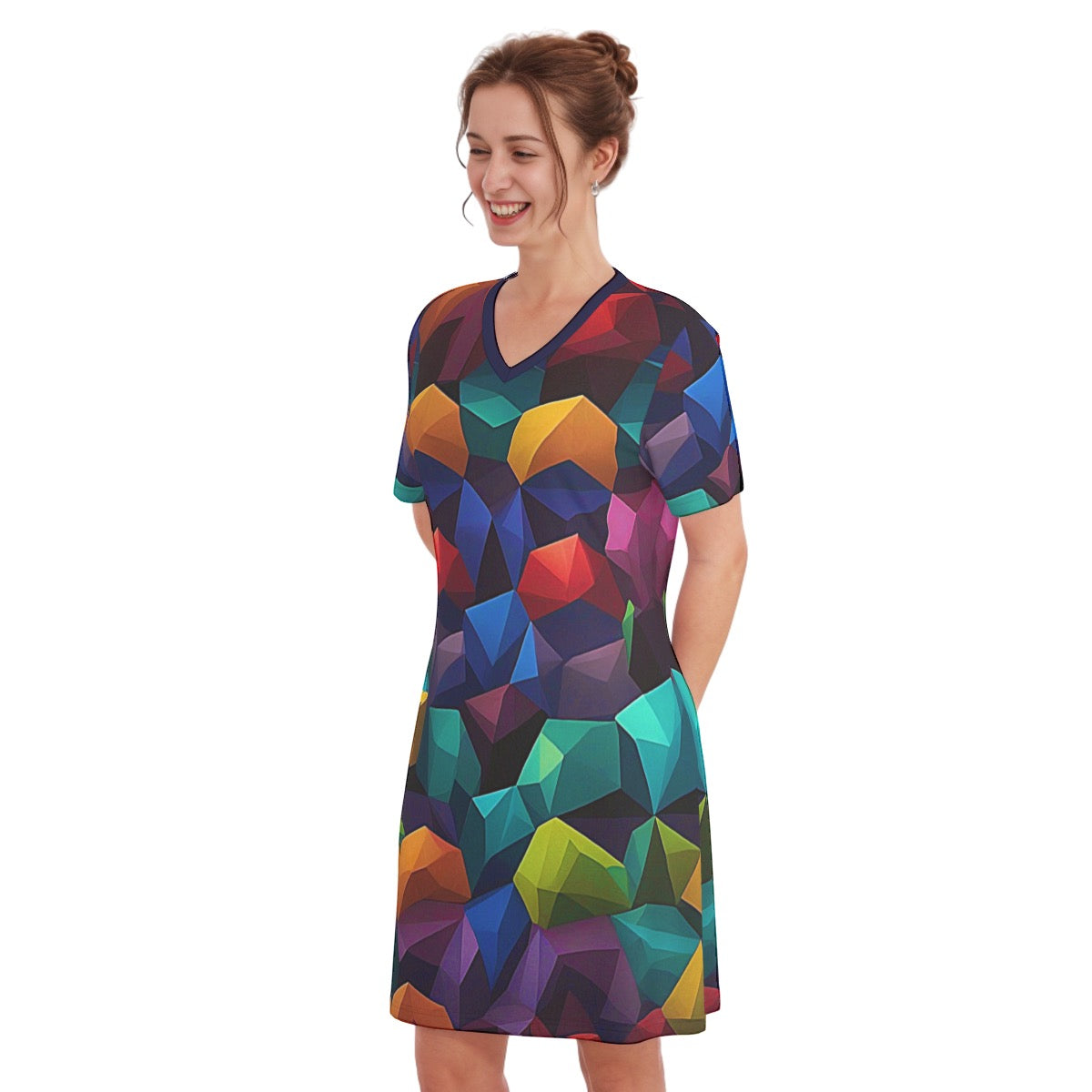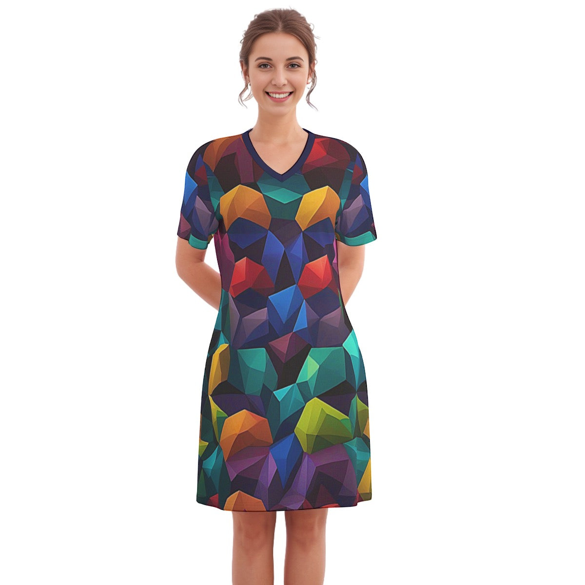 This V-necked short-sleeved dress features a breathable design, providing an unparalleled level of comfort.