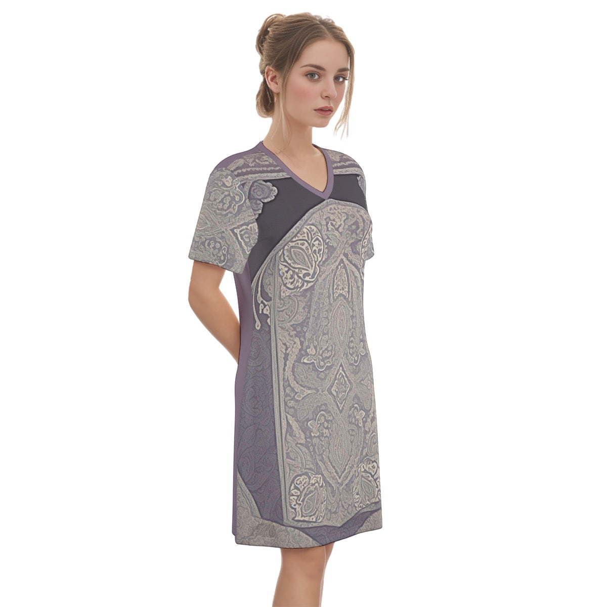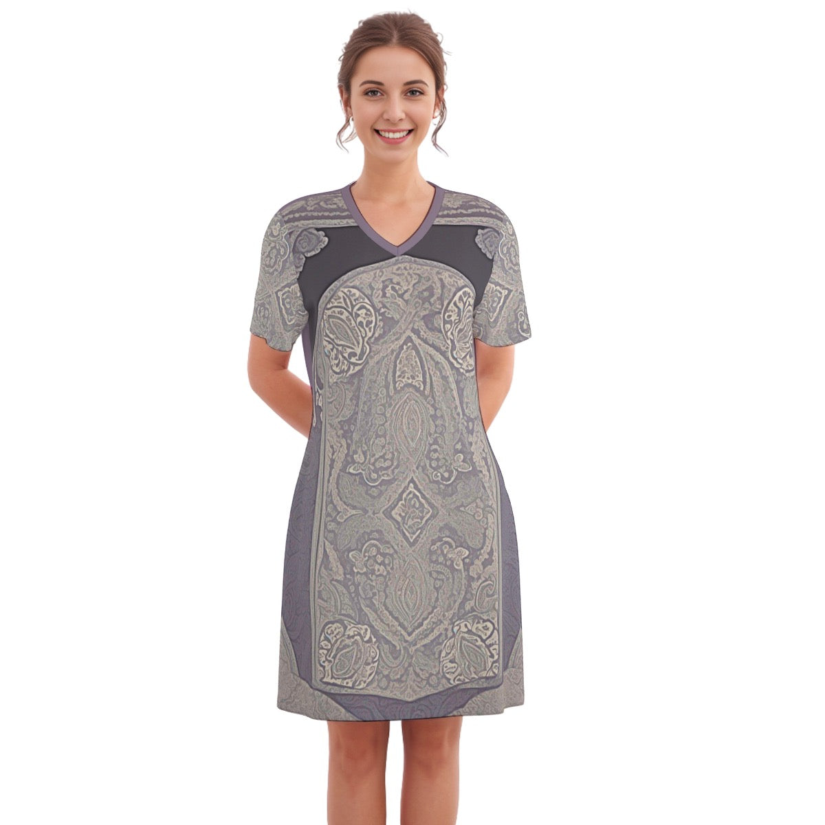 This V-necked short-sleeved dress features a breathable design, providing an unparalleled level of comfort.