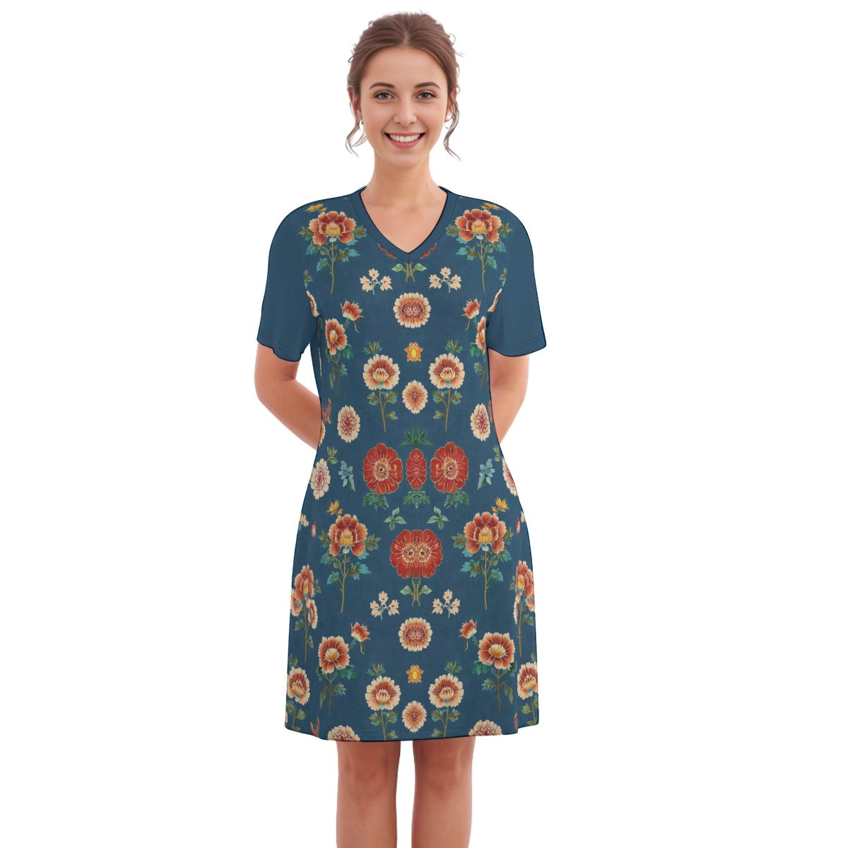 This V-necked short-sleeved dress features a breathable design, providing an unparalleled level of comfort.