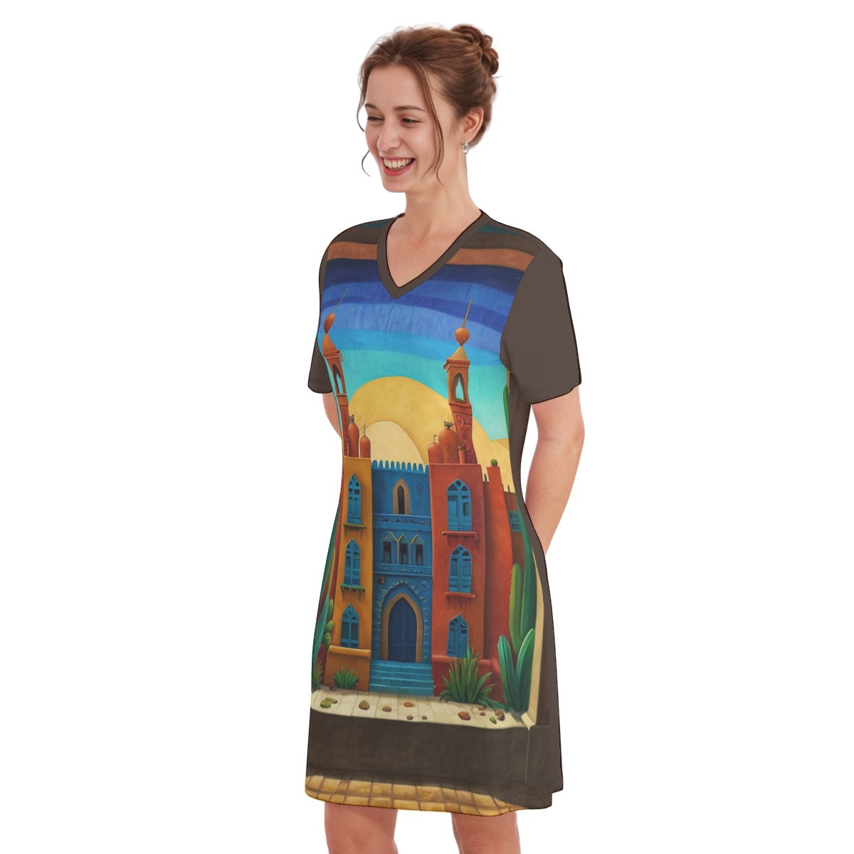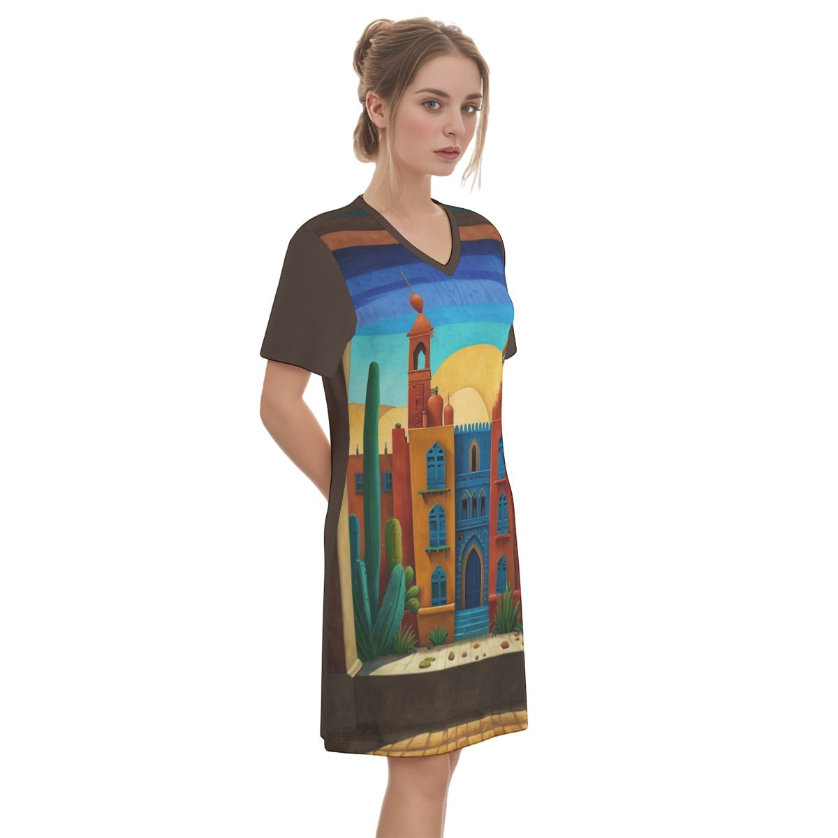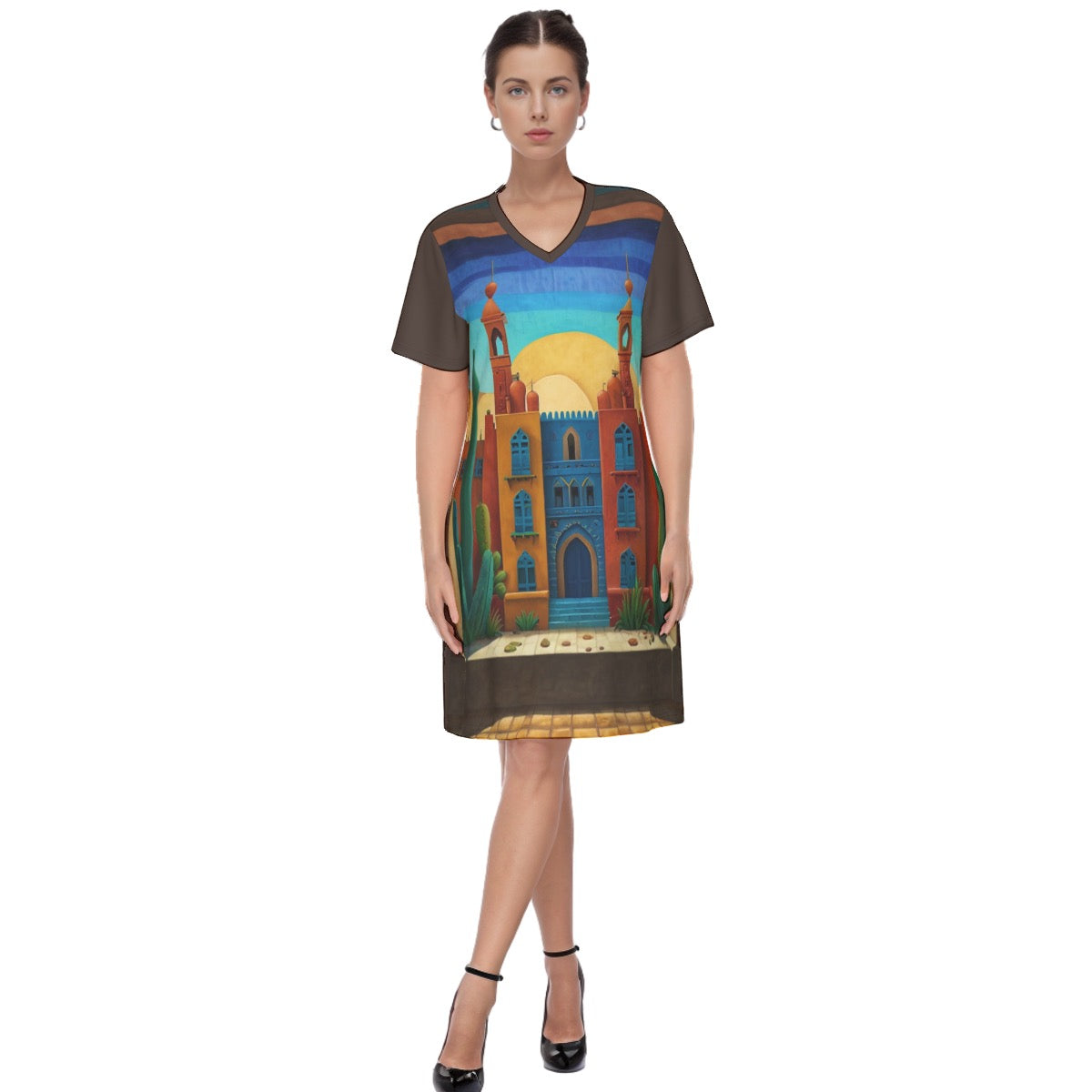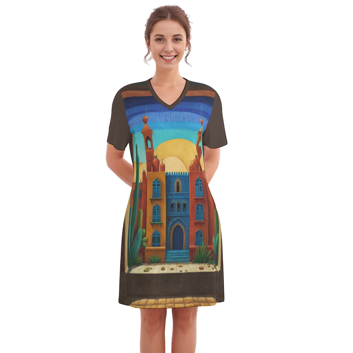 Desert Haven -- Women's V Neck Dress 100% Cotton
