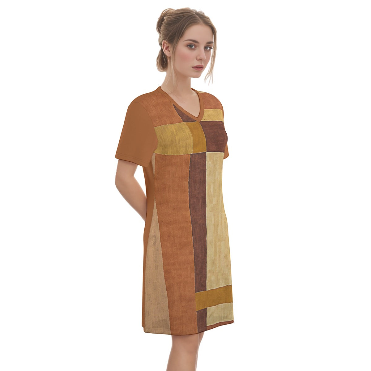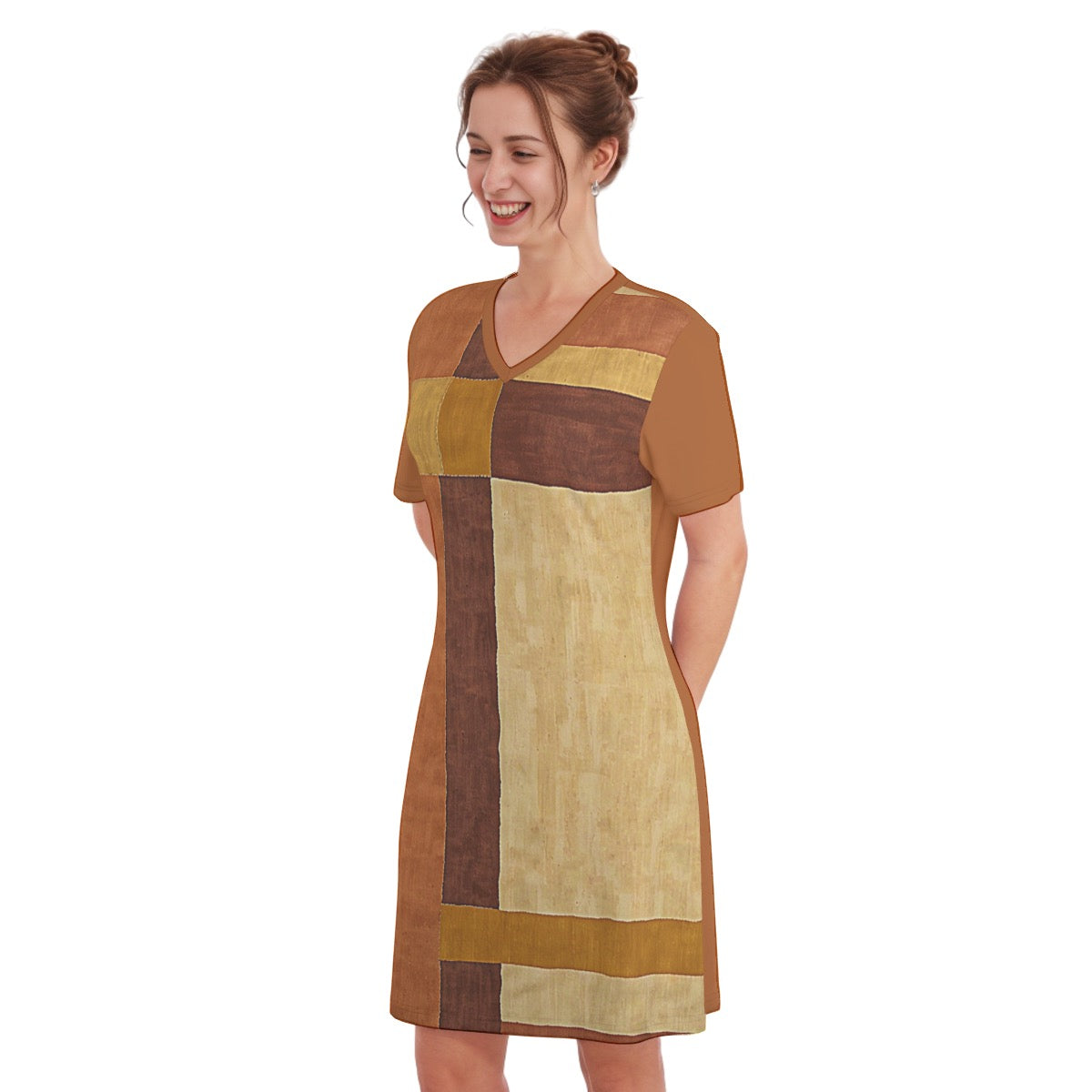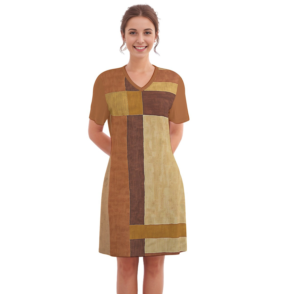 This V-necked short-sleeved dress features a breathable design, providing an unparalleled level of comfort.