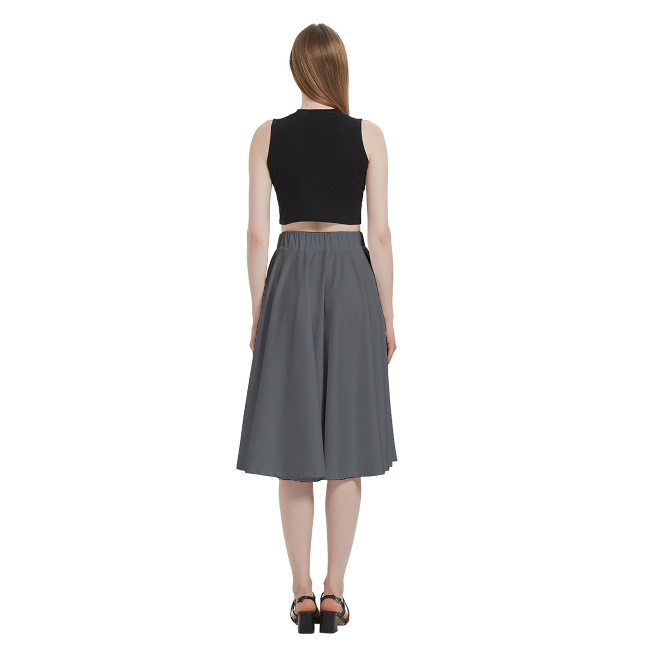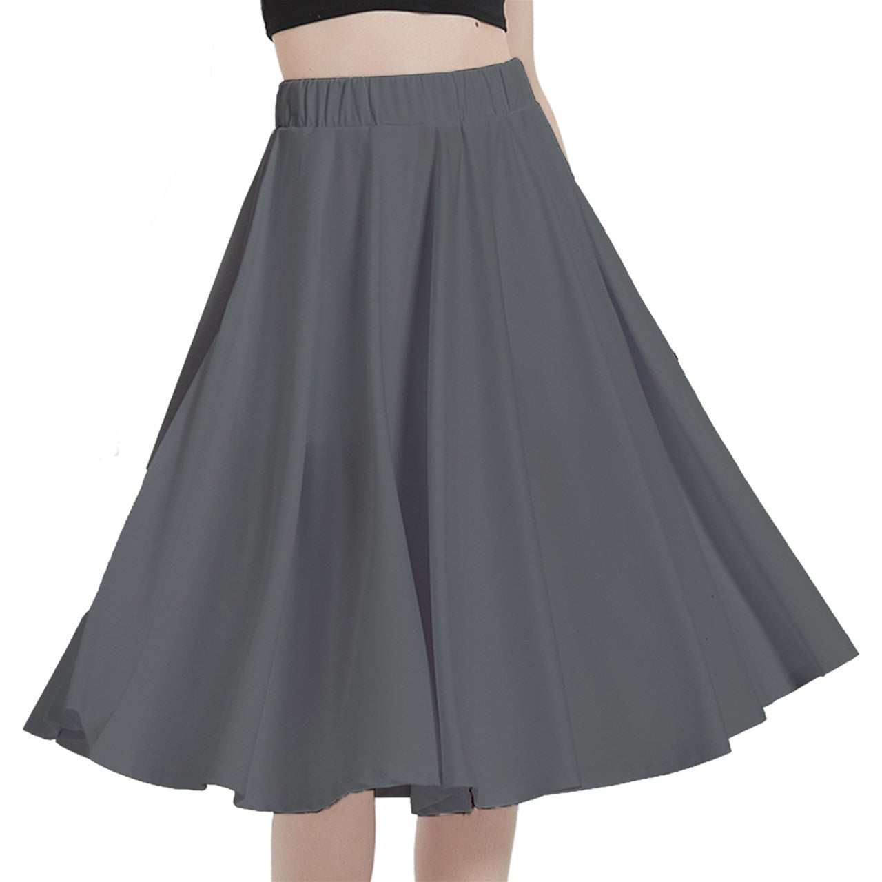 Dk Grey A-Line Full Circle Midi Skirt w/ Pocket has full circle flare and is a staple for every wardrobe and full enough for a petticoat, if you'd like. Slip on your new skirt, relax, and have some fun.