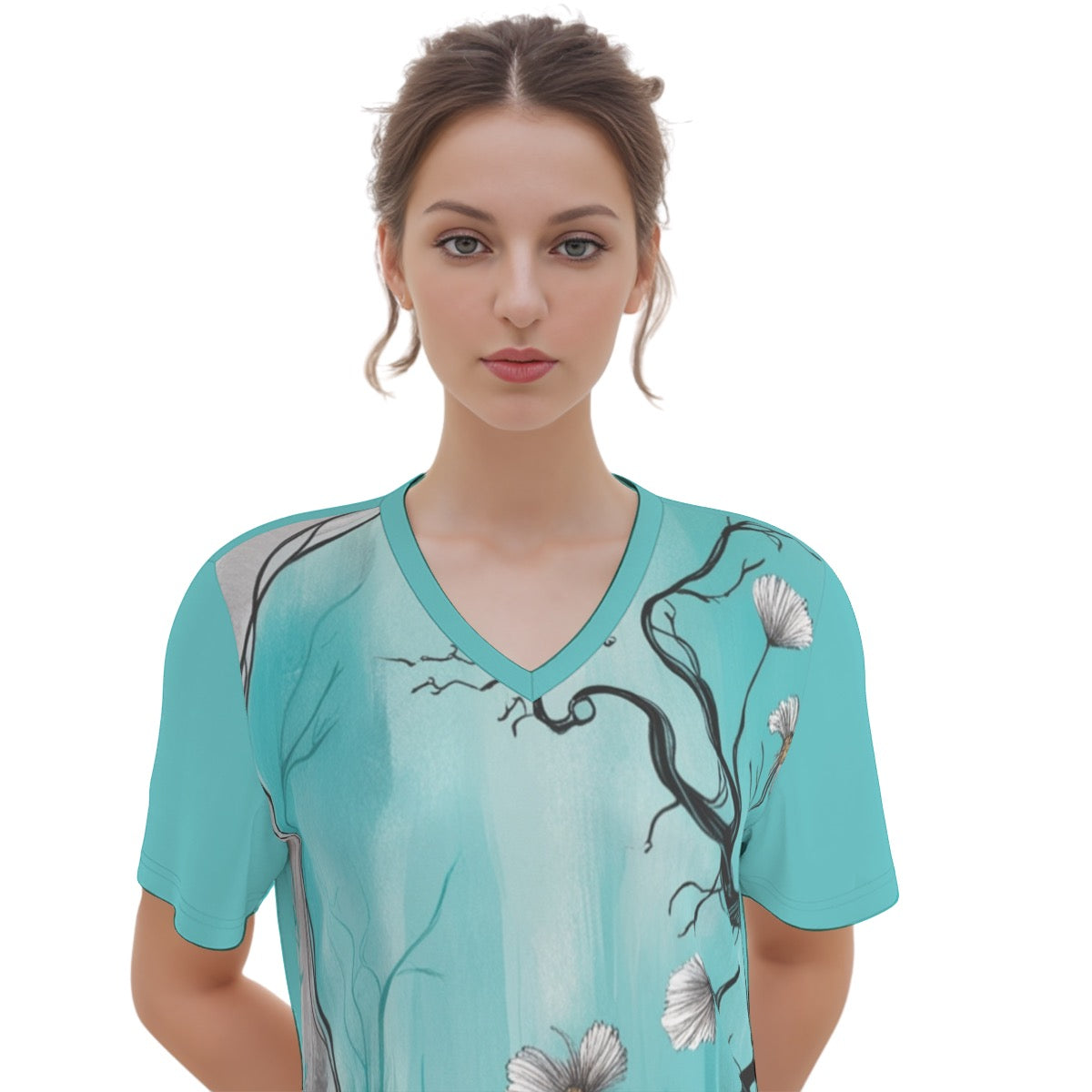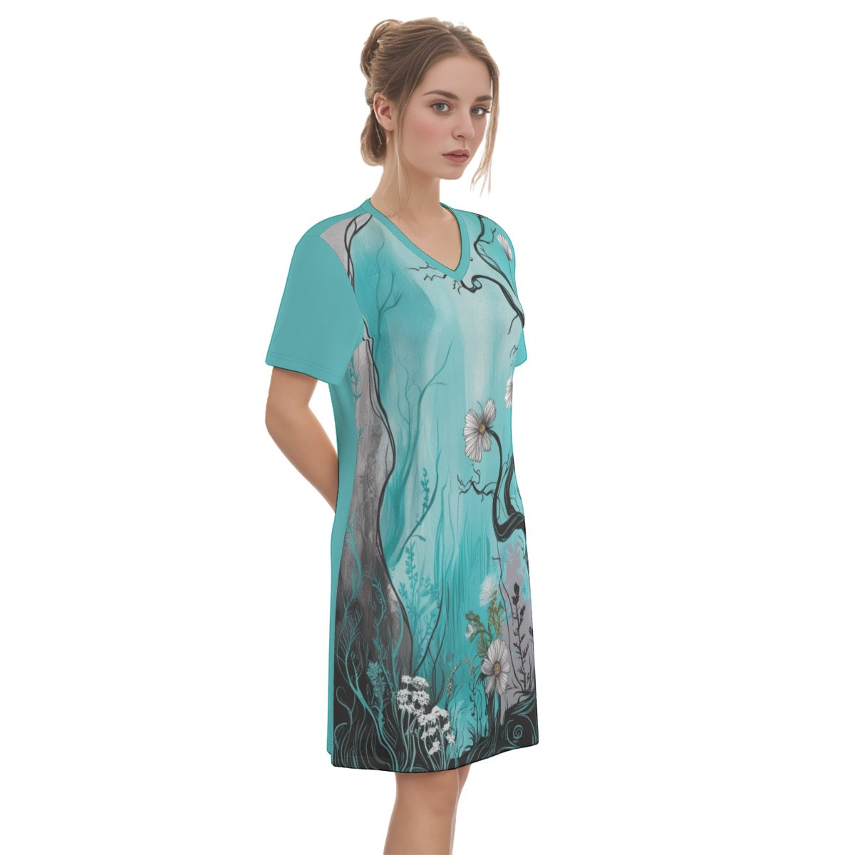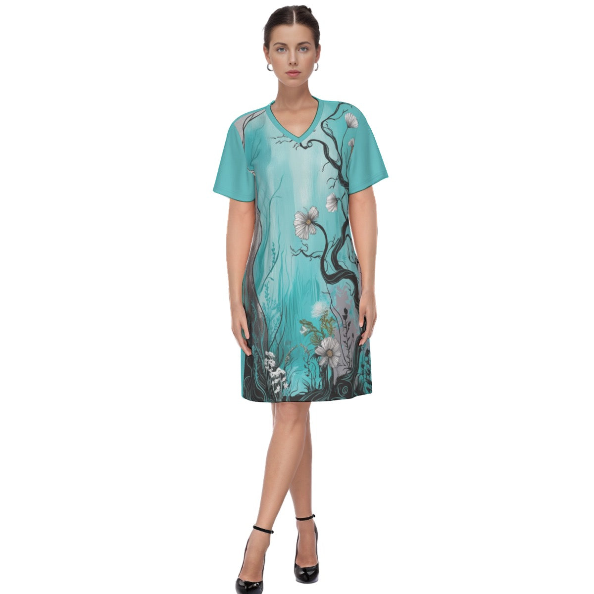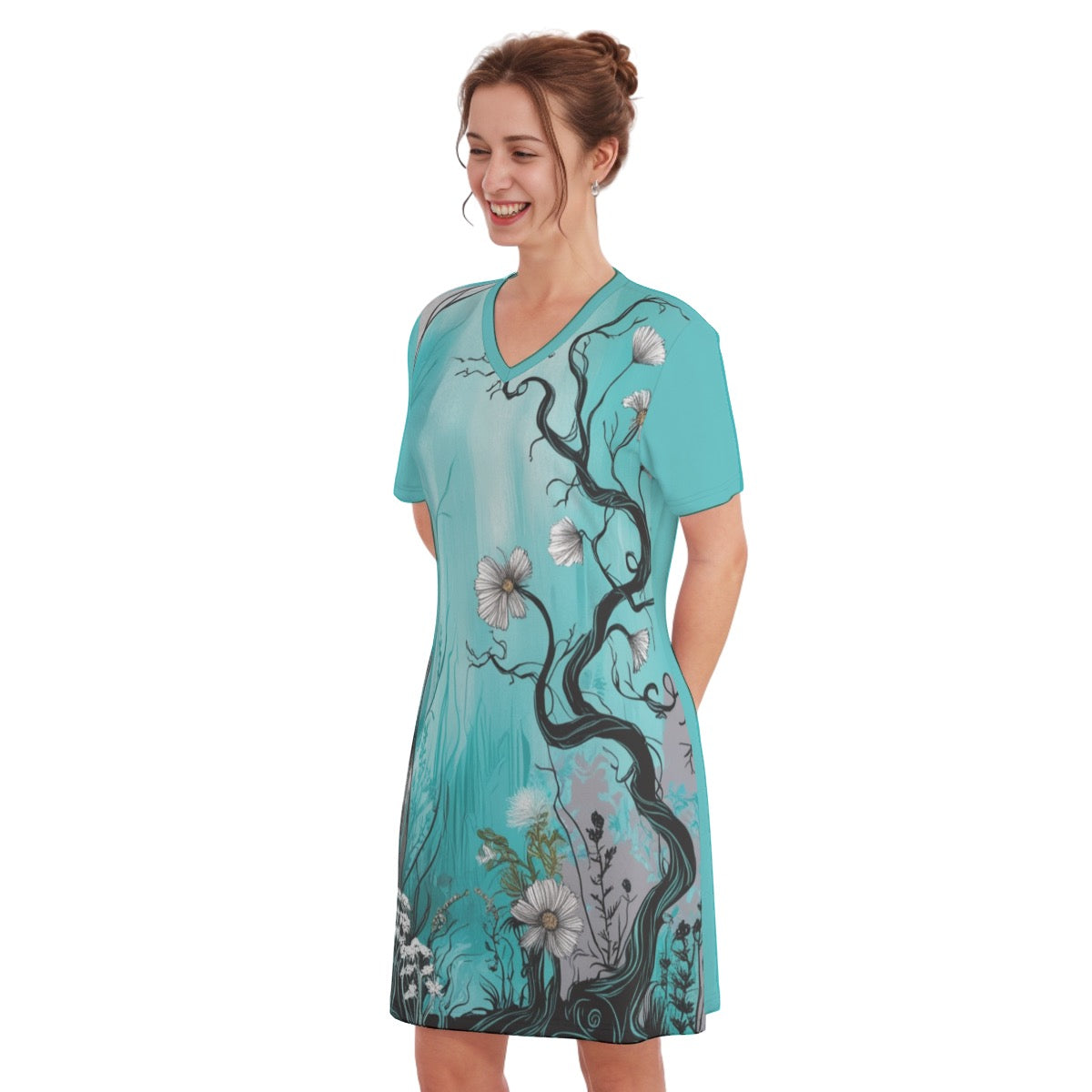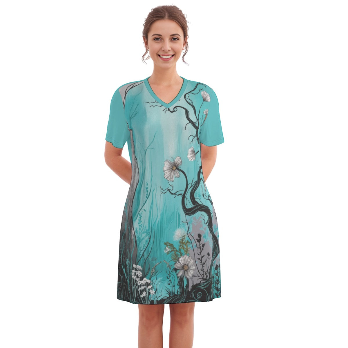 This V-necked short-sleeved dress features a breathable design, providing an unparalleled level of comfort.