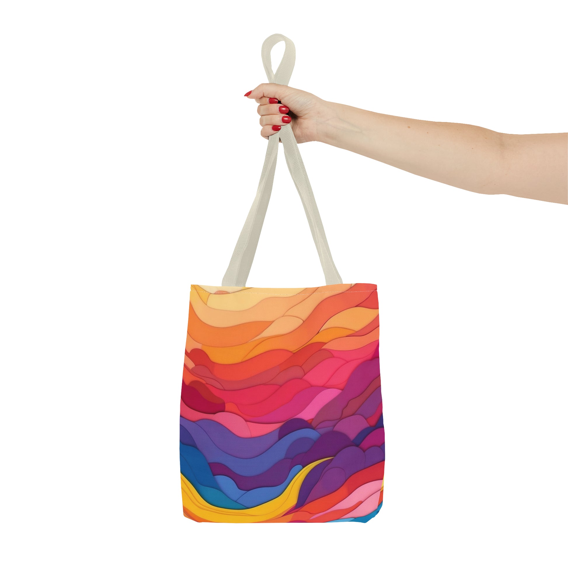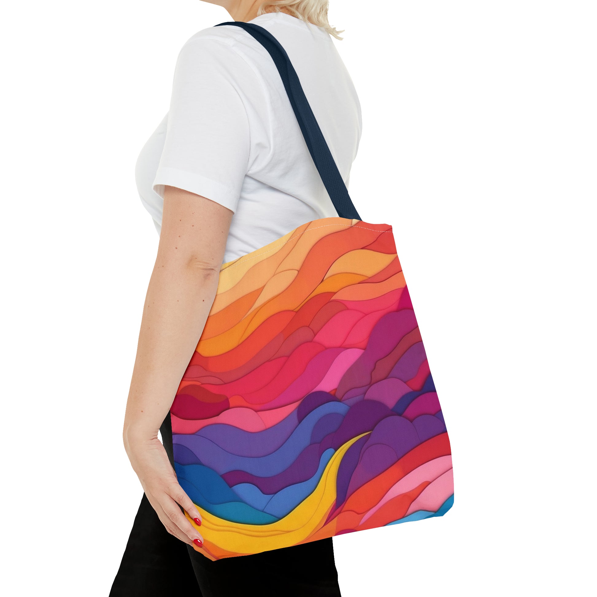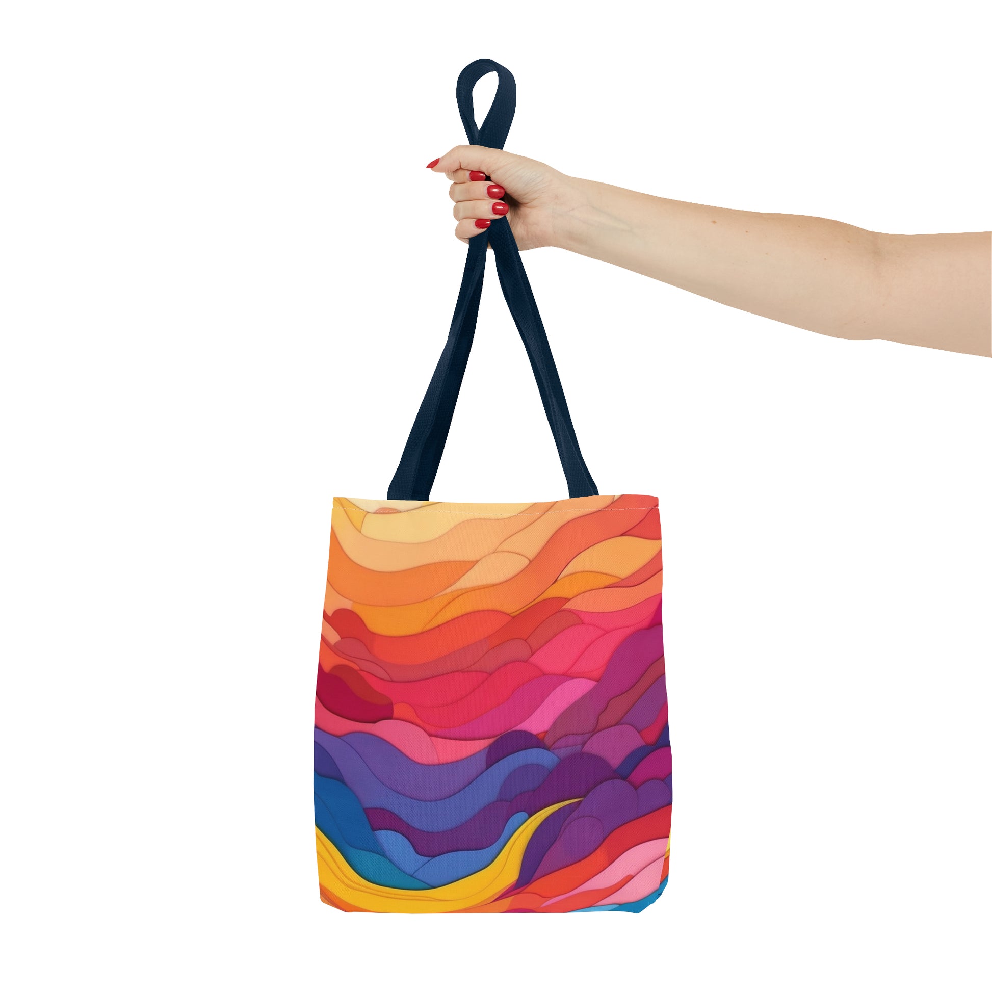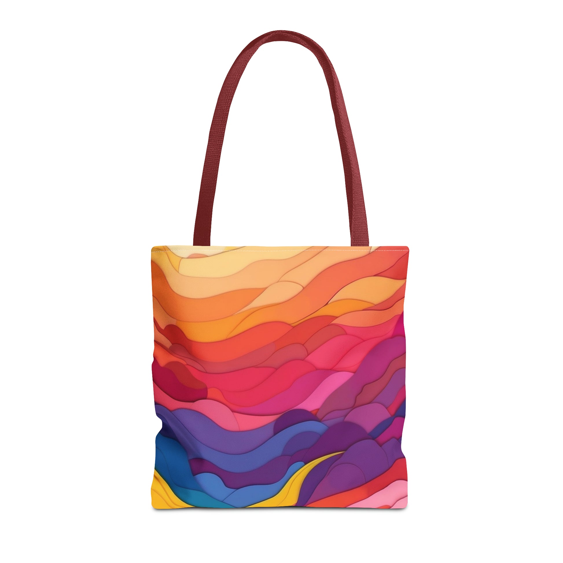 Available in 3 sizes to add both functionality and style, these custom-printed tote bags come with multiple handle colors to match your designs. Made with spun polyester, these bags feature double-stitched seams, cotton webbing straps, and nonwoven laminate lining for high-end durability. Your all-over print is created with dye sublimation for high-end visuals.