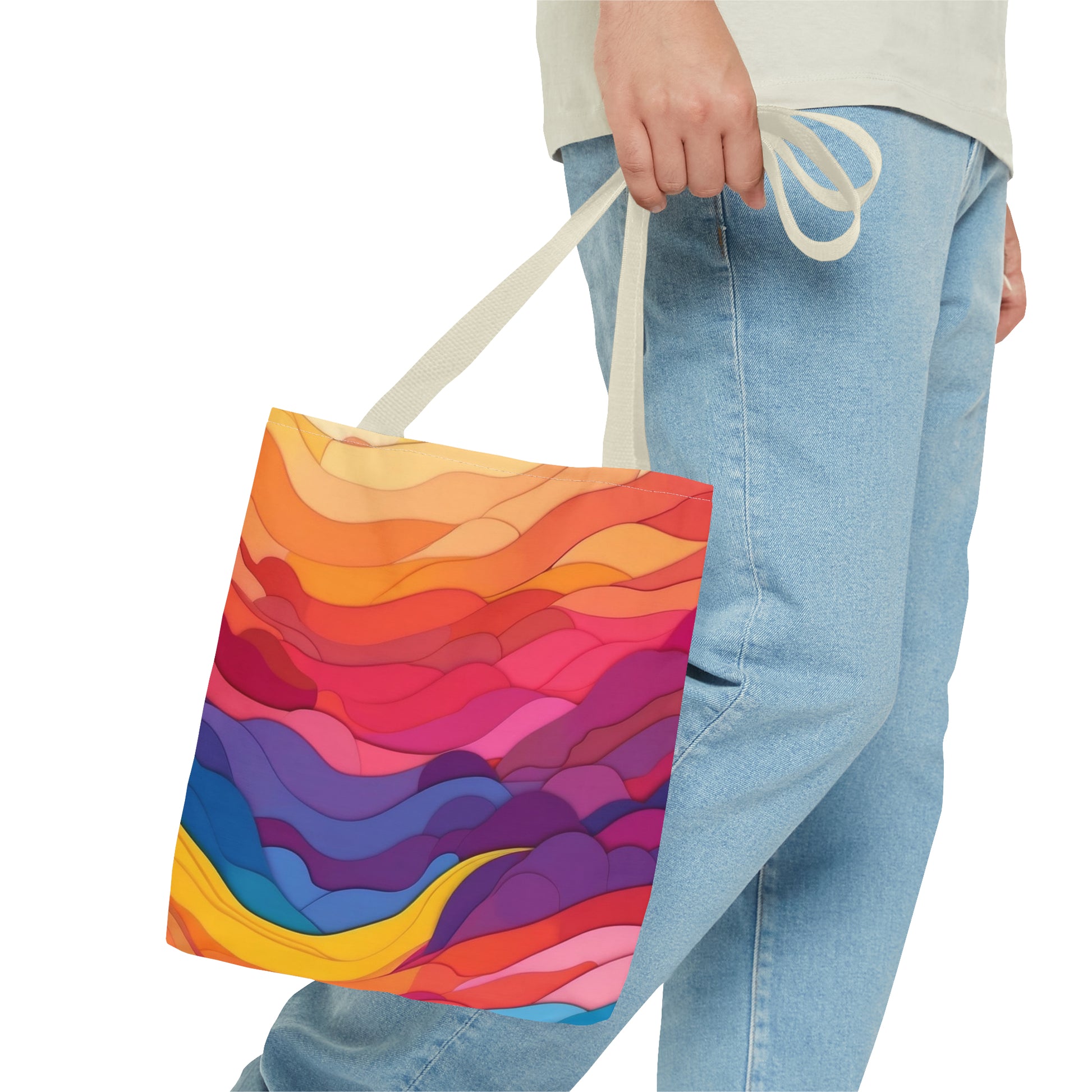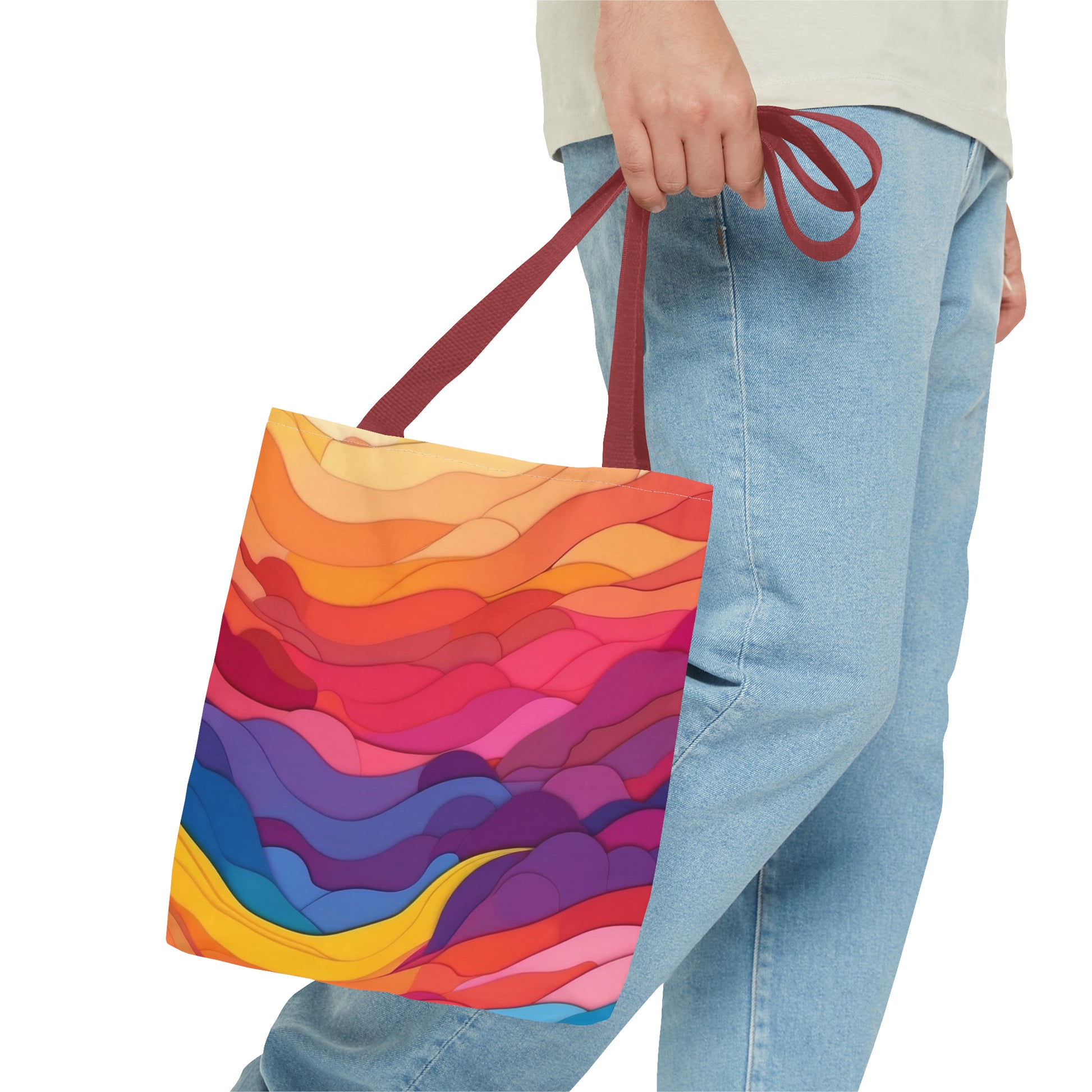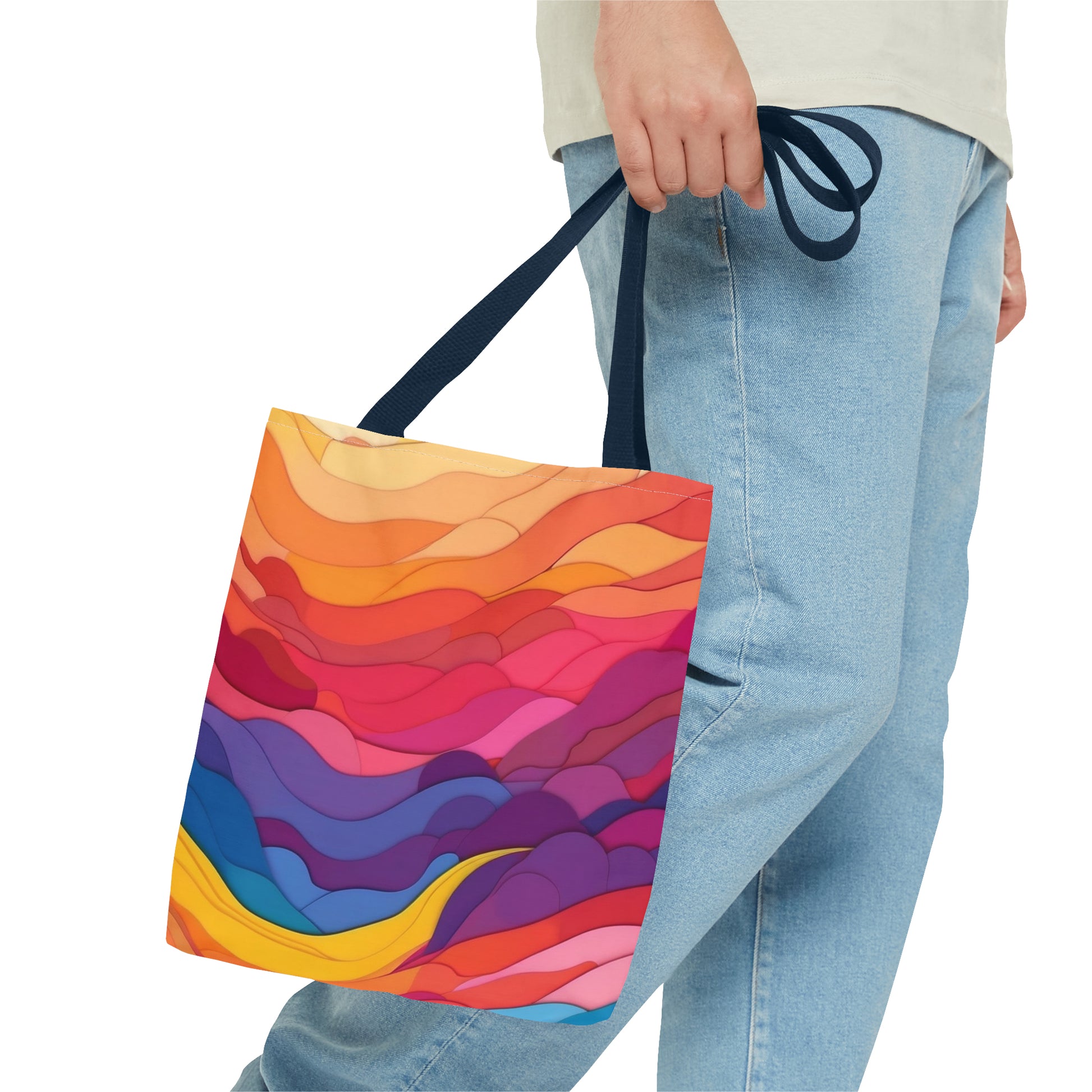 Available in 3 sizes to add both functionality and style, these custom-printed tote bags come with multiple handle colors to match your designs. Made with spun polyester, these bags feature double-stitched seams, cotton webbing straps, and nonwoven laminate lining for high-end durability. Your all-over print is created with dye sublimation for high-end visuals.