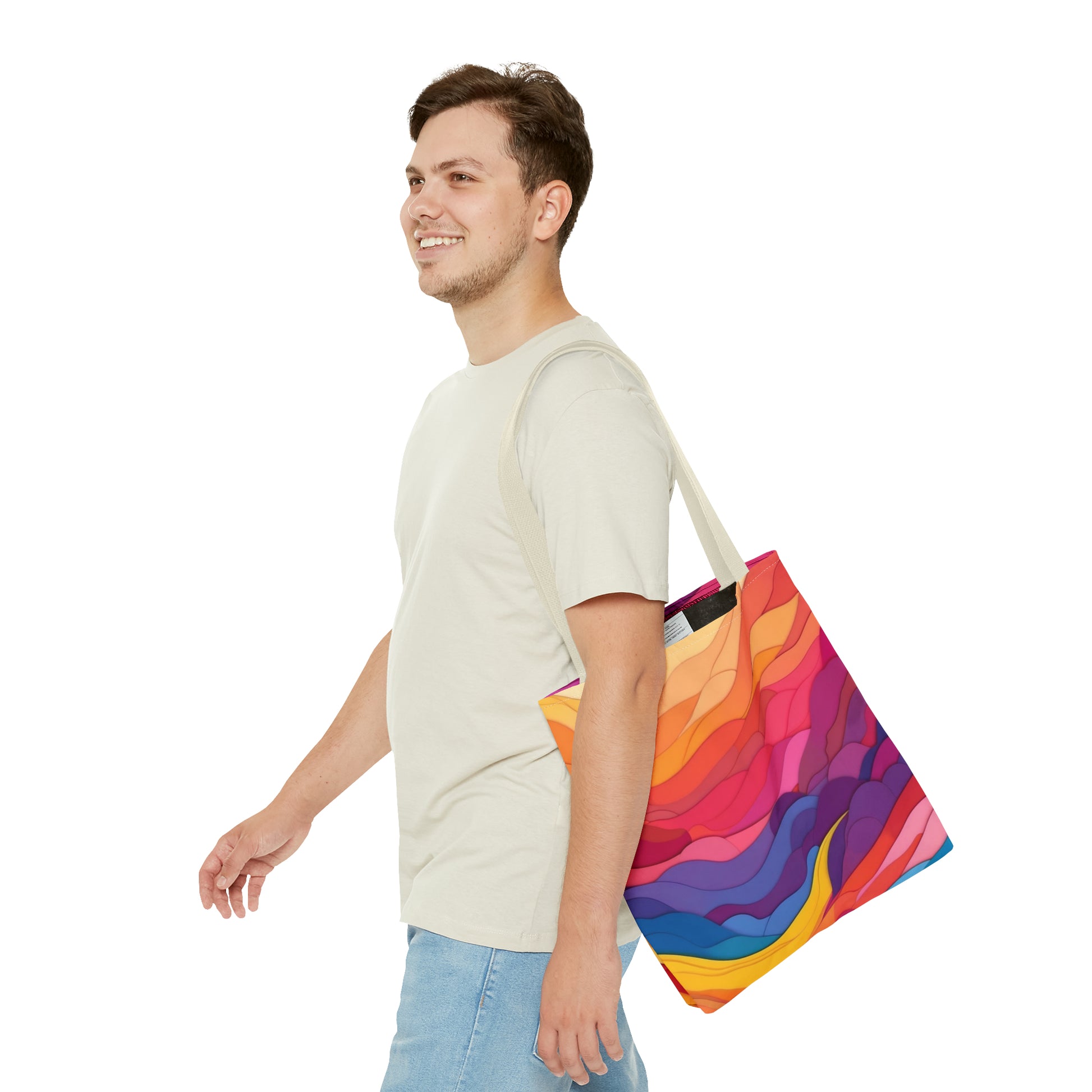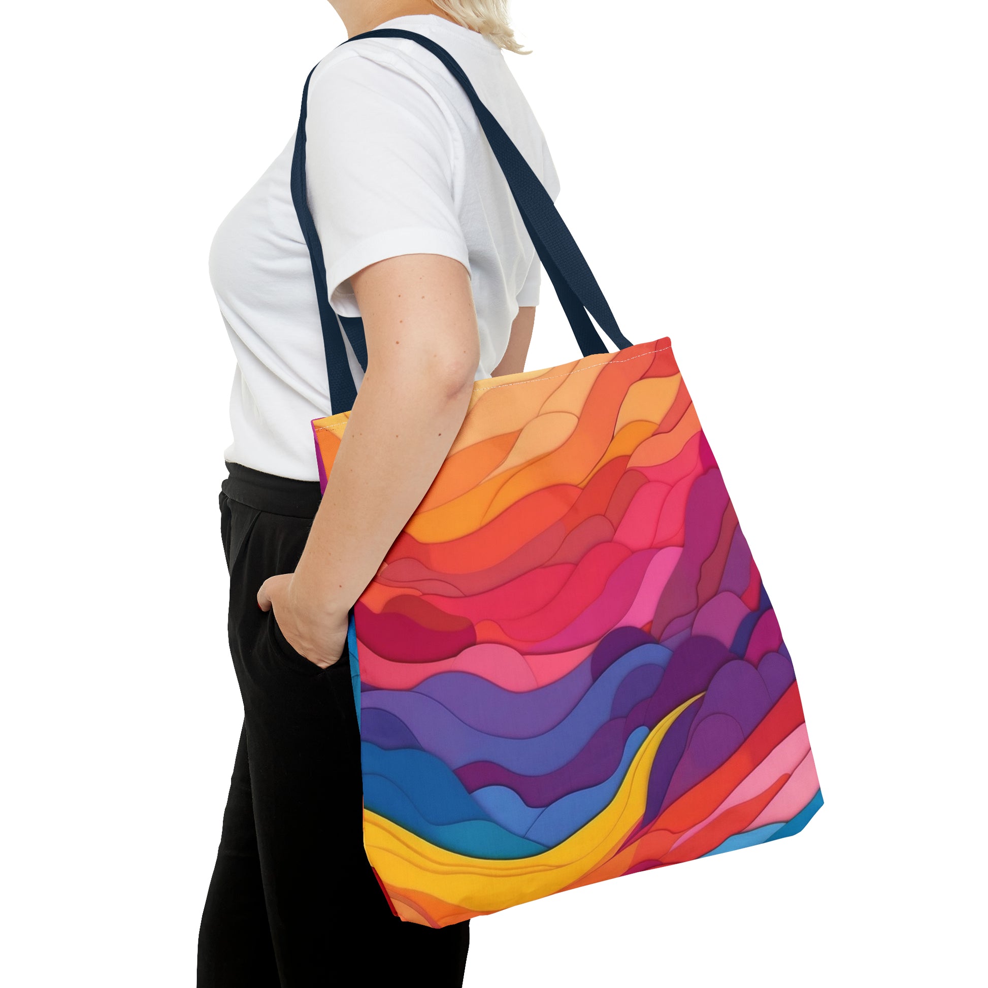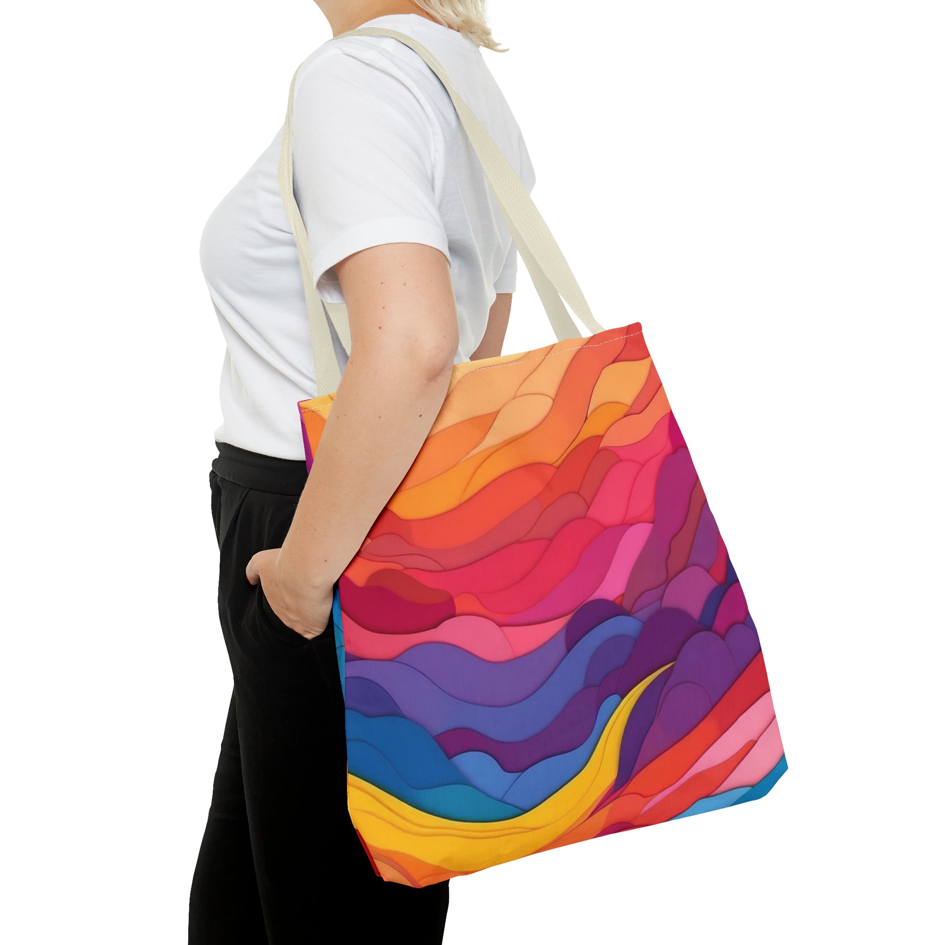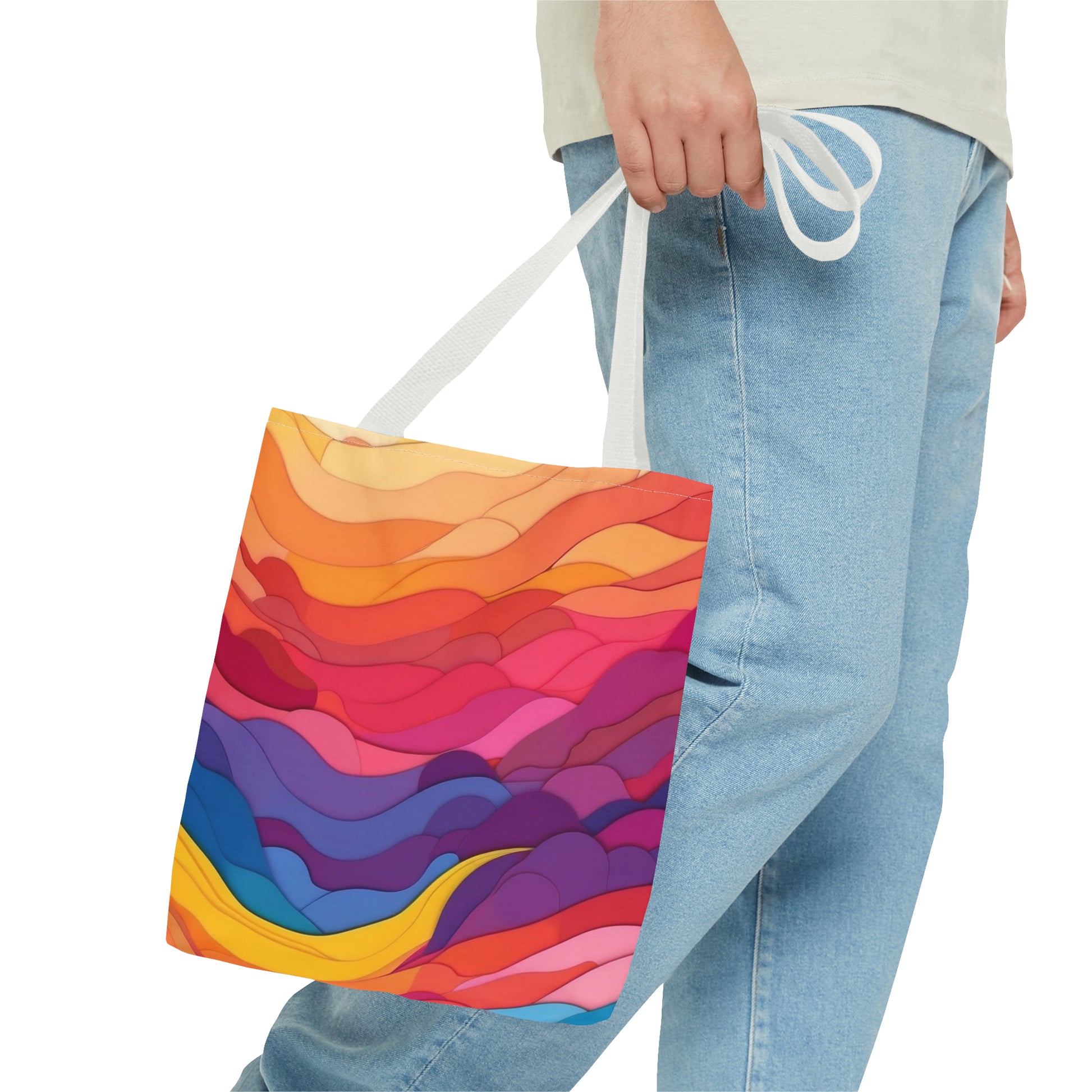 Available in 3 sizes to add both functionality and style, these custom-printed tote bags come with multiple handle colors to match your designs. Made with spun polyester, these bags feature double-stitched seams, cotton webbing straps, and nonwoven laminate lining for high-end durability. Your all-over print is created with dye sublimation for high-end visuals.