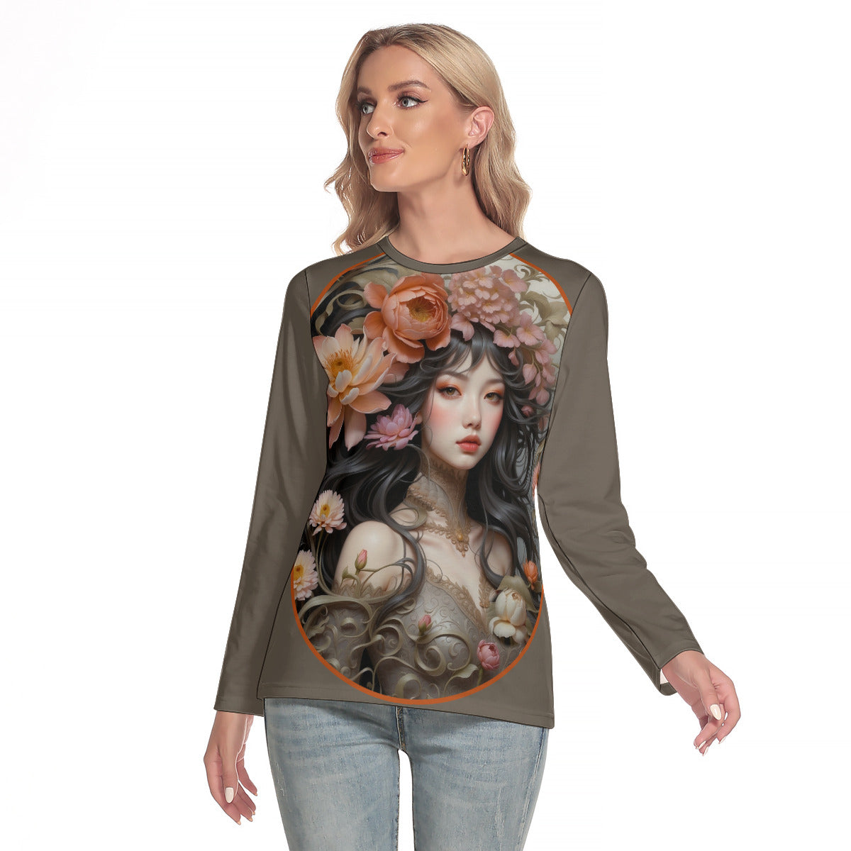 - Crew neck, long sleeve
