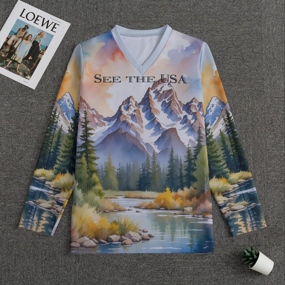 Grand Teton -- Men's V-neck Sweatshirt With Long Sleeve