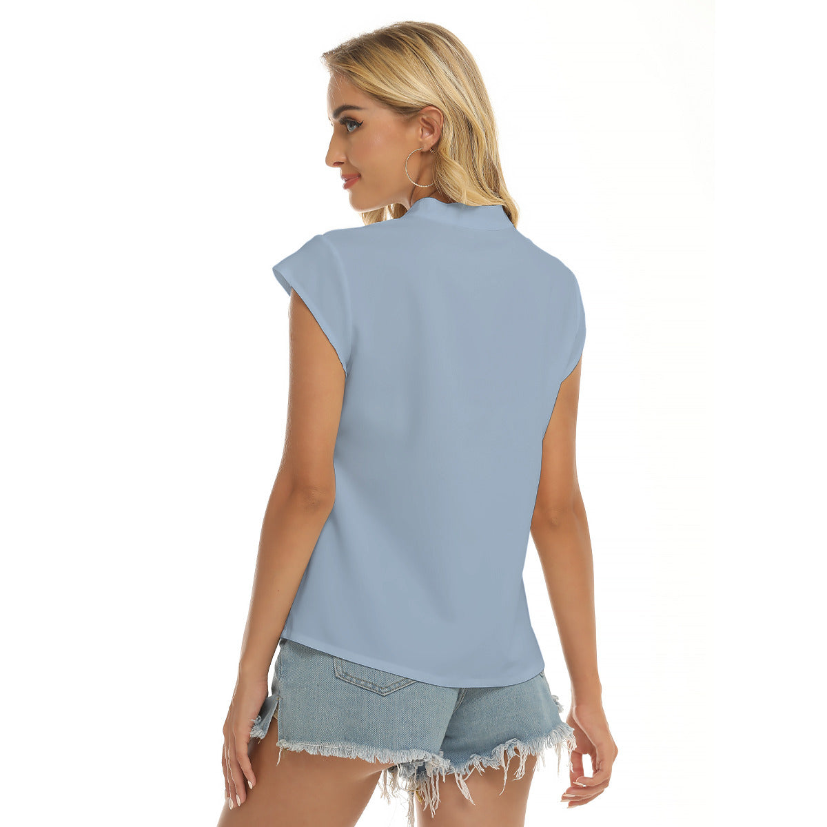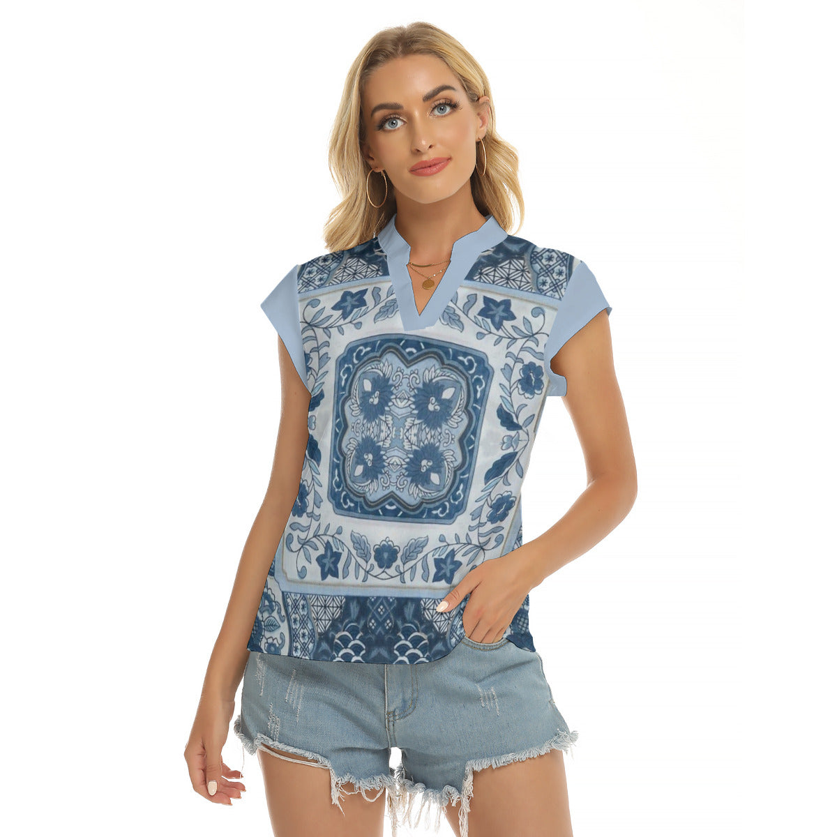 Hankerchief -- Women's Stacked V-neck Short Sleeve Blouse
