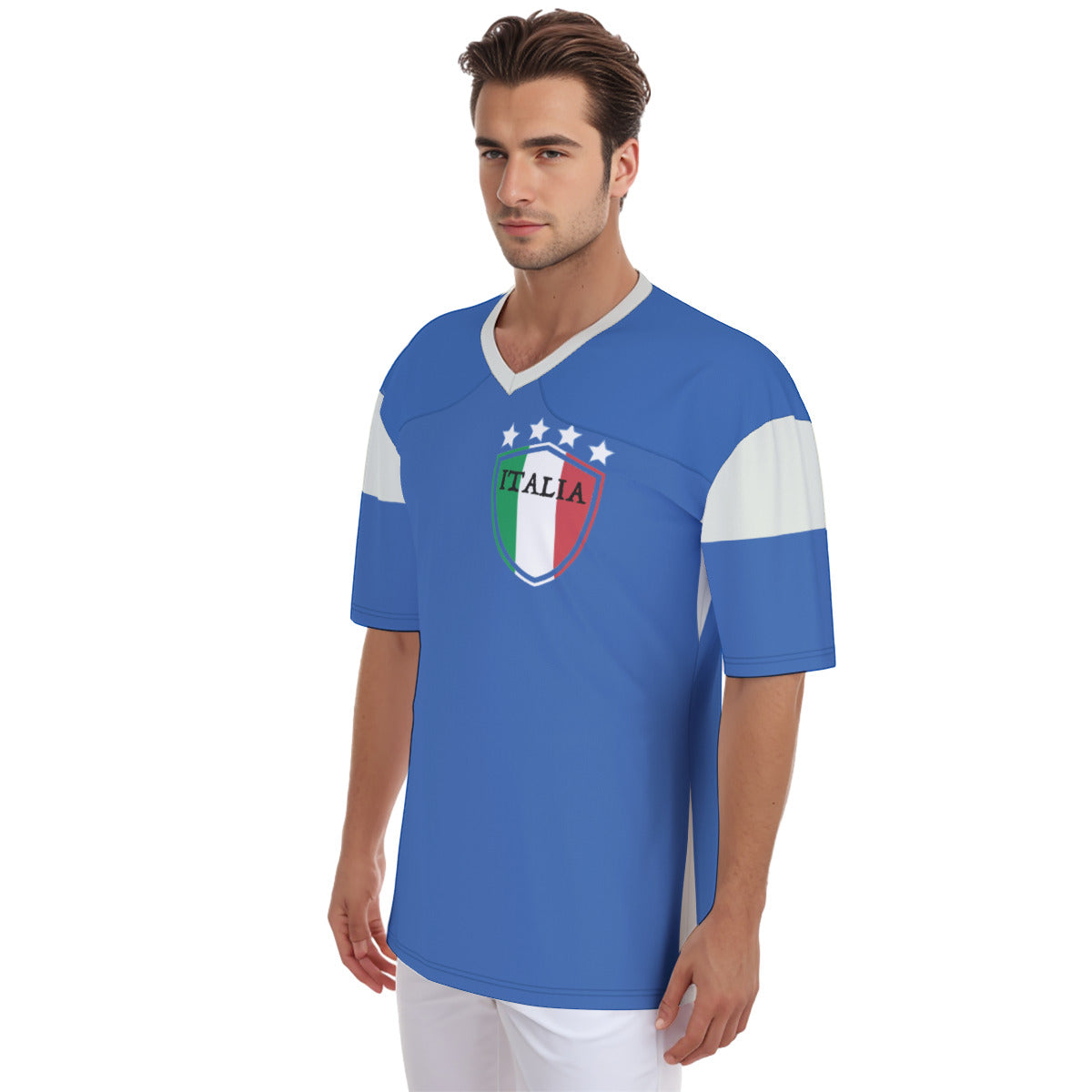 V-neck football jersey of classic jersey style, breathable and skin-friendly fabric, ensuring free excising; Elastic collar makes it versatile and more comfortable to wear.