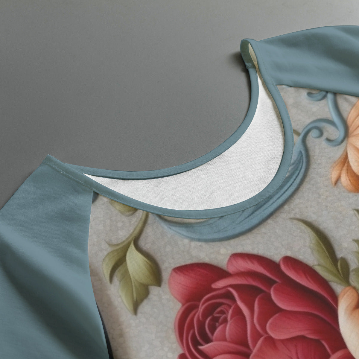 - Crew neck, raglan sleeve, short sleeve