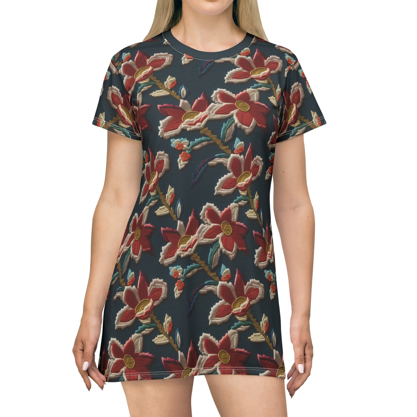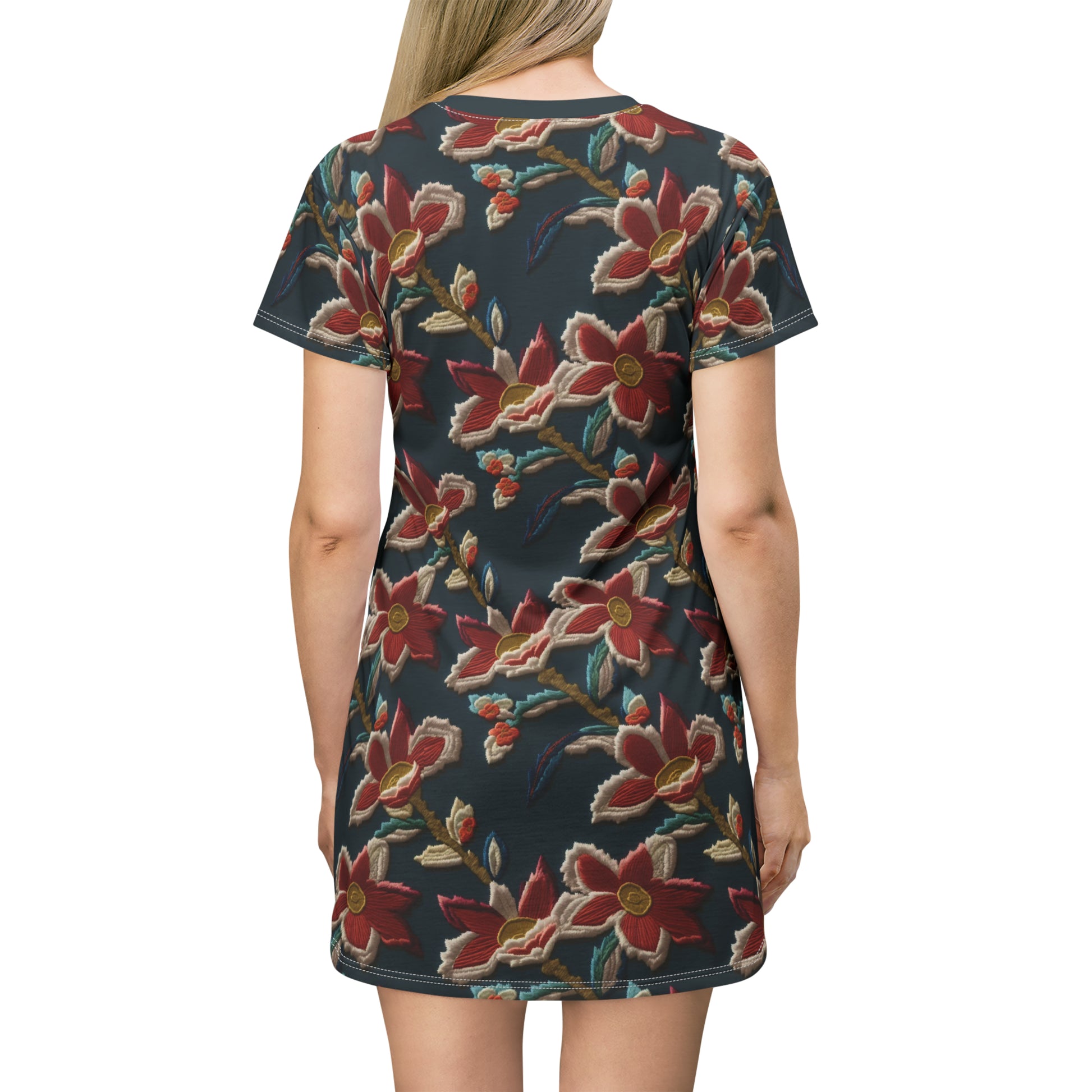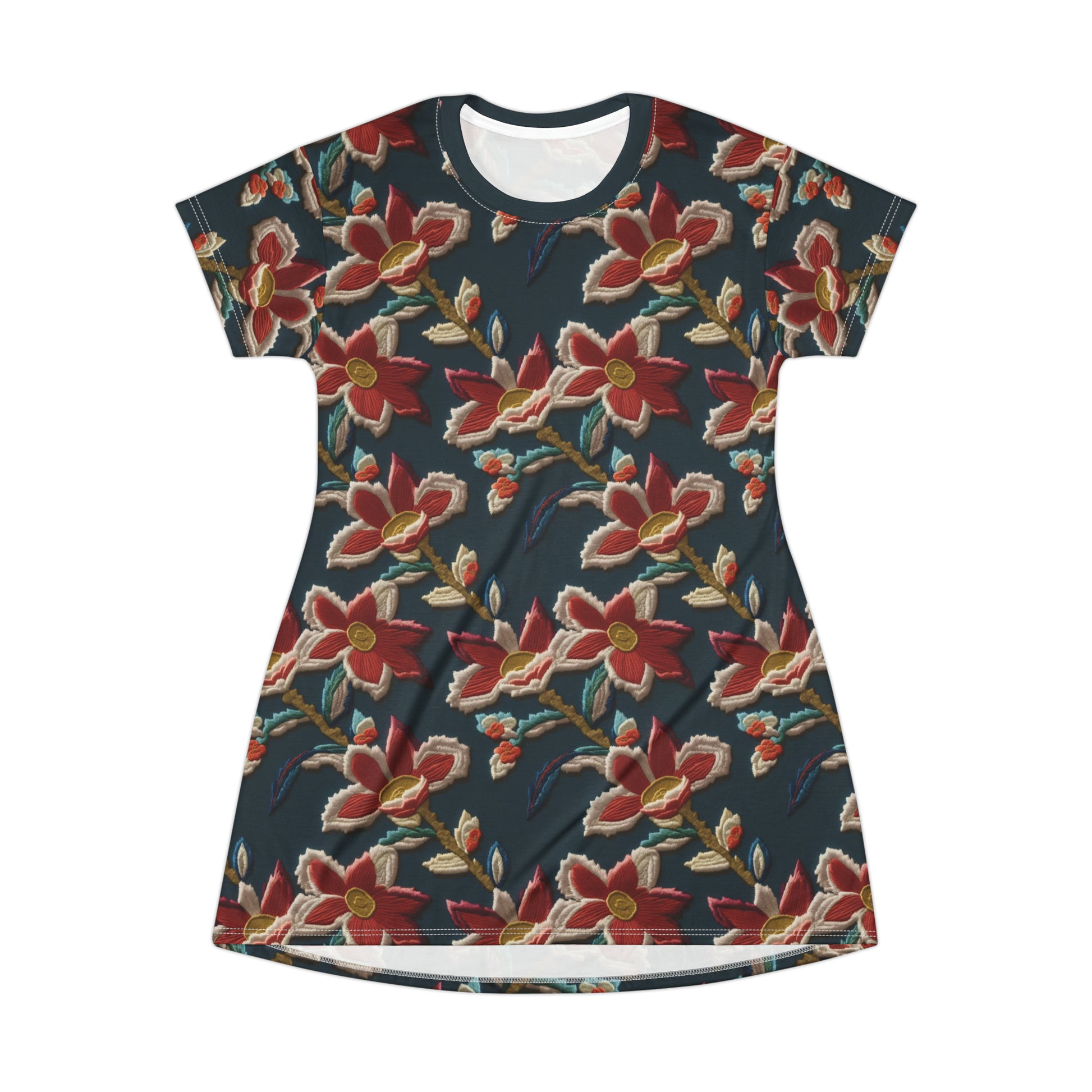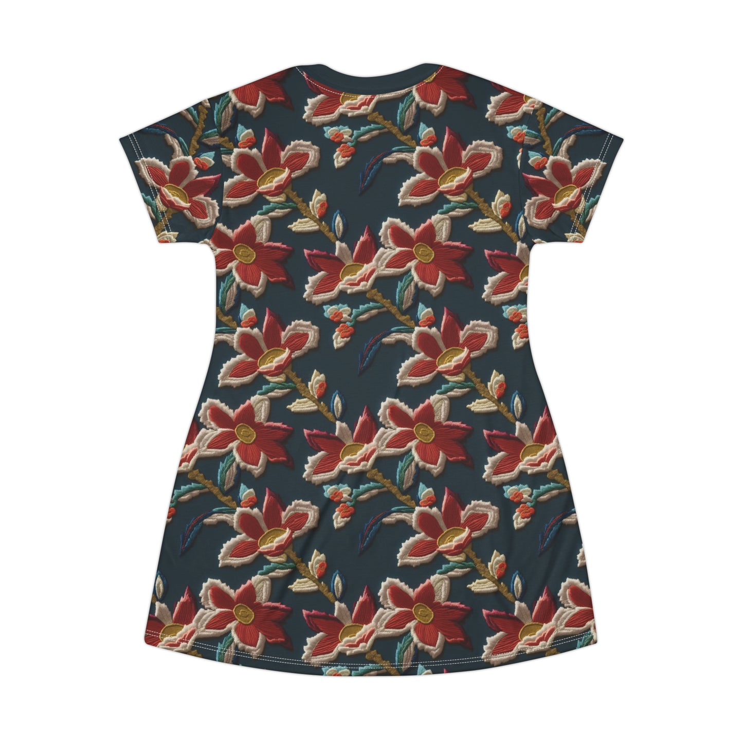 This All-Over-Print T-Shirt Dress is tagless, custom cut and sewn to match every order.