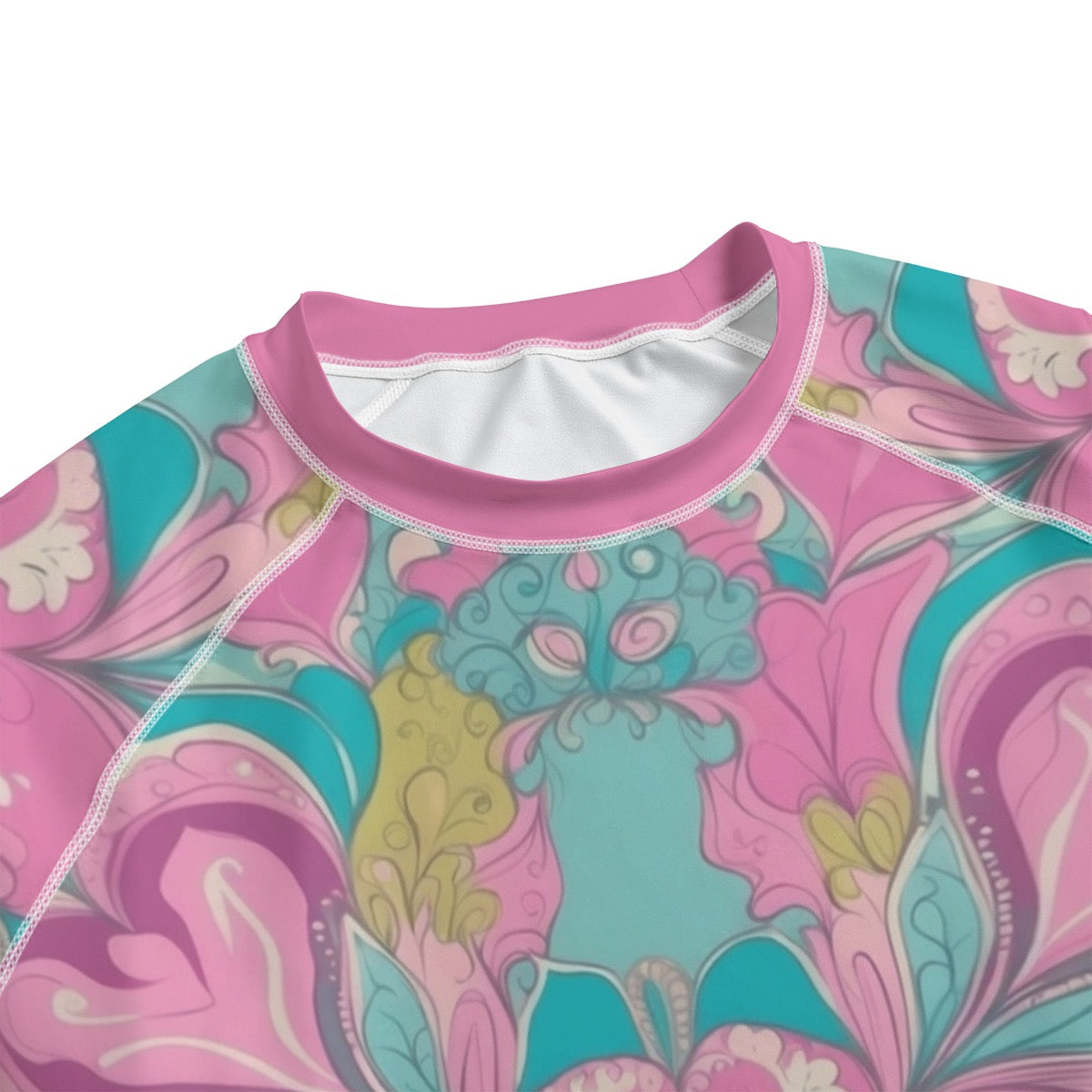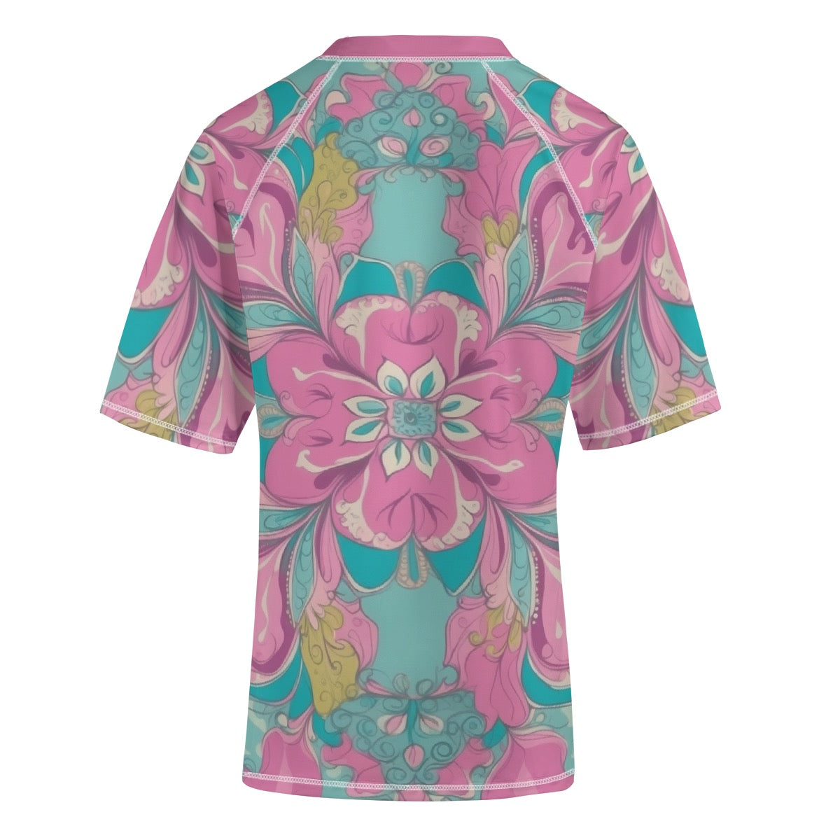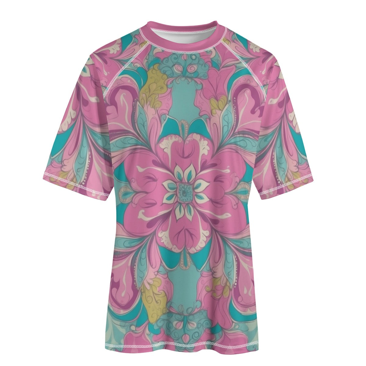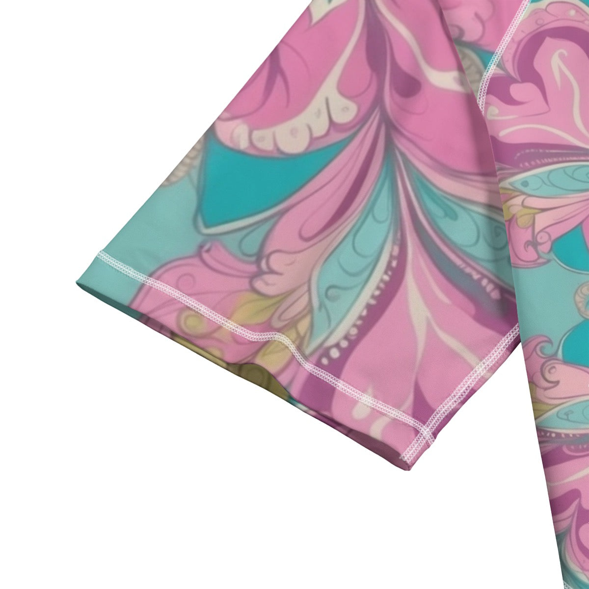 This short-sleeved yoga garment is made of high-quality fabric, has excellent elasticity and comfort, and can meet the needs of various yoga movements. The surface printing is smooth and the color reproduction is high, making your yoga clothes more fashionable and personalized. The unique four-needle and six-thread craftsmanship gives this yoga wear high quality and durability. Additionally, this yoga clothing has excellent breathability and moisture absorption to keep you dry and comfortable while practicing yoga. All in all, this yoga wear is an ideal choice if you are looking for high quality, comfort and personalization.