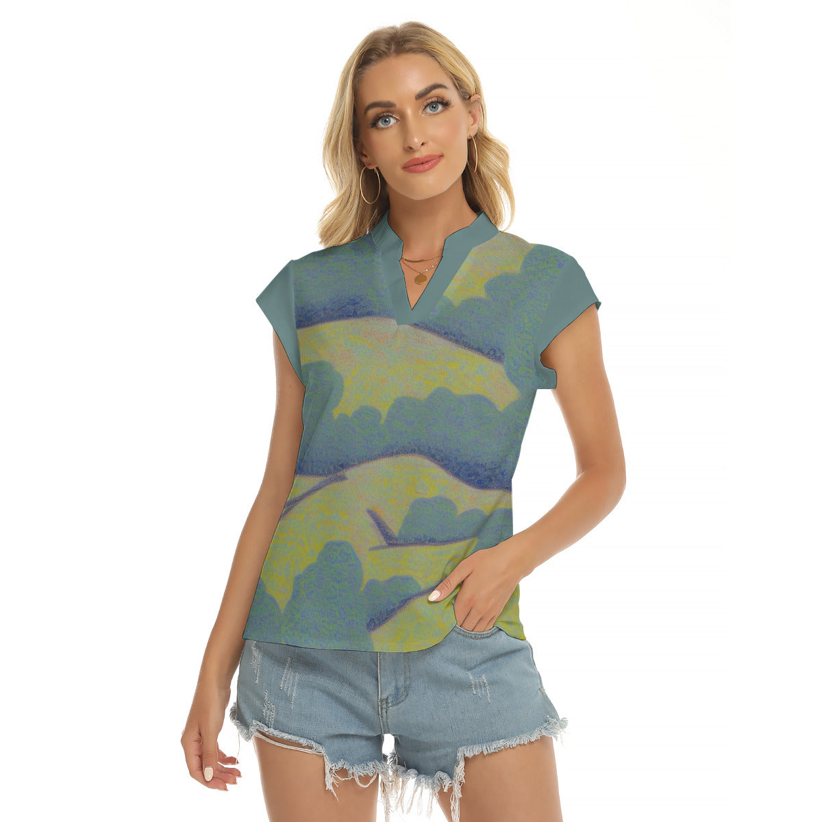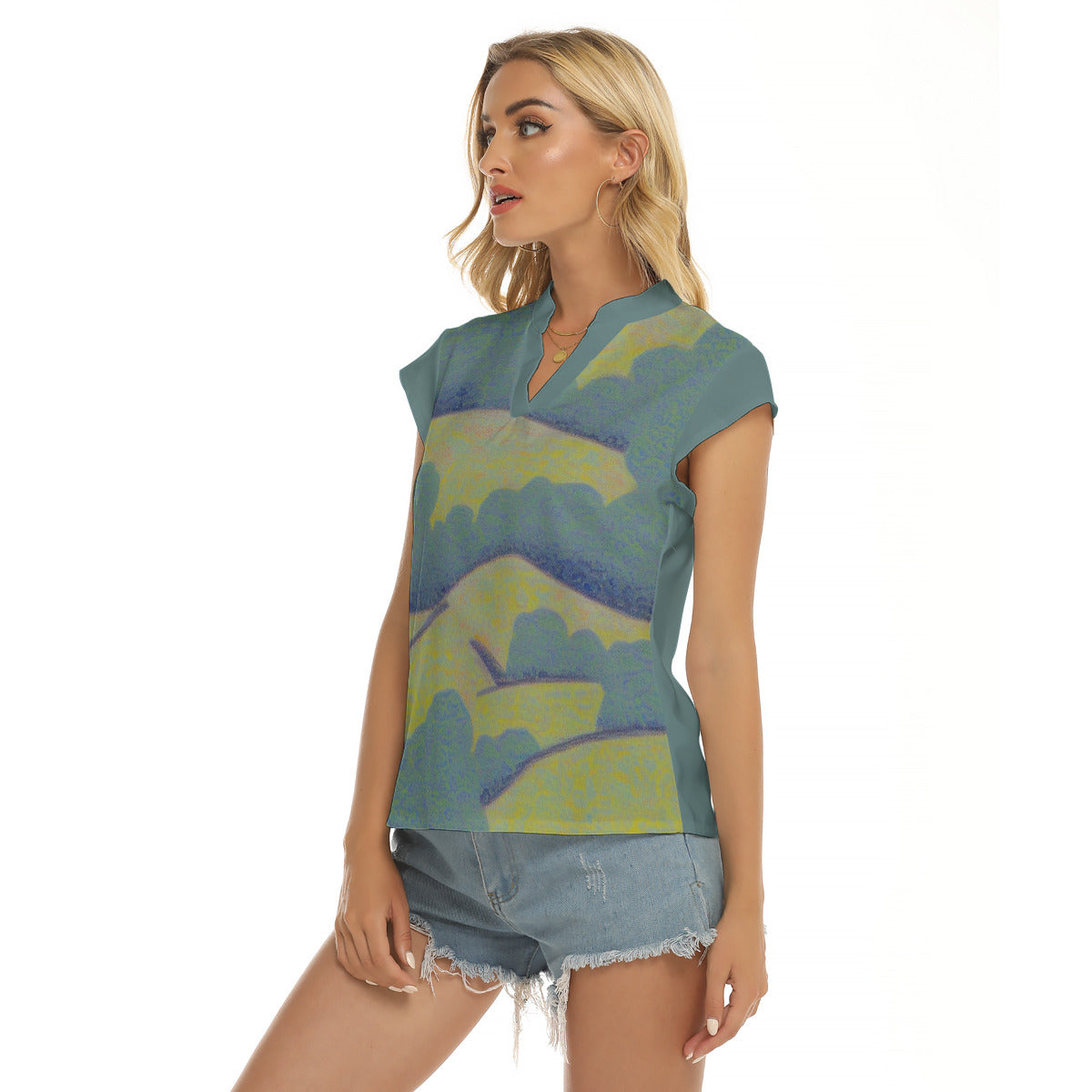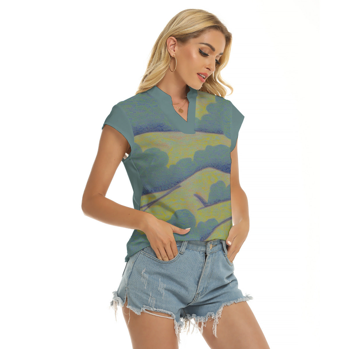 Rolling Hills -- Women's Stacked V-neck Short Sleeve Blouse