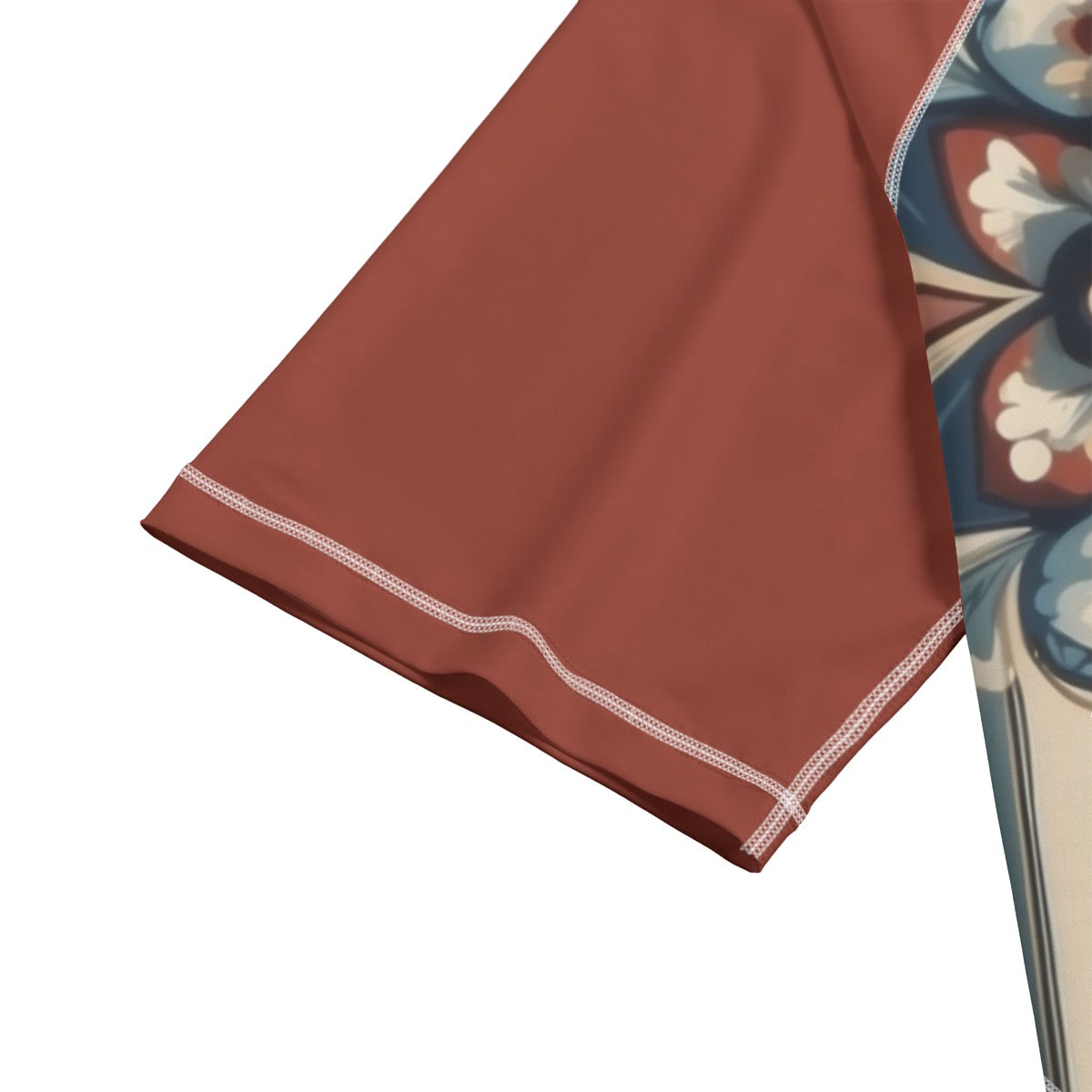 This short-sleeved yoga garment is made of high-quality fabric, has excellent elasticity and comfort, and can meet the needs of various yoga movements. The surface printing is smooth and the color reproduction is high, making your yoga clothes more fashionable and personalized. The unique four-needle and six-thread craftsmanship gives this yoga wear high quality and durability. Additionally, this yoga clothing has excellent breathability and moisture absorption to keep you dry and comfortable while practicing yoga. All in all, this yoga wear is an ideal choice if you are looking for high quality, comfort and personalization.
