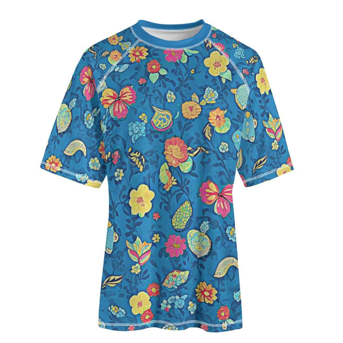 This short-sleeved yoga garment is made of high-quality fabric, has excellent elasticity and comfort, and can meet the needs of various yoga movements. The surface printing is smooth and the color reproduction is high, making your yoga clothes more fashionable and personalized. The unique four-needle and six-thread craftsmanship gives this yoga wear high quality and durability. Additionally, this yoga clothing has excellent breathability and moisture absorption to keep you dry and comfortable while practicing yoga. All in all, this yoga wear is an ideal choice if you are looking for high quality, comfort and personalization.