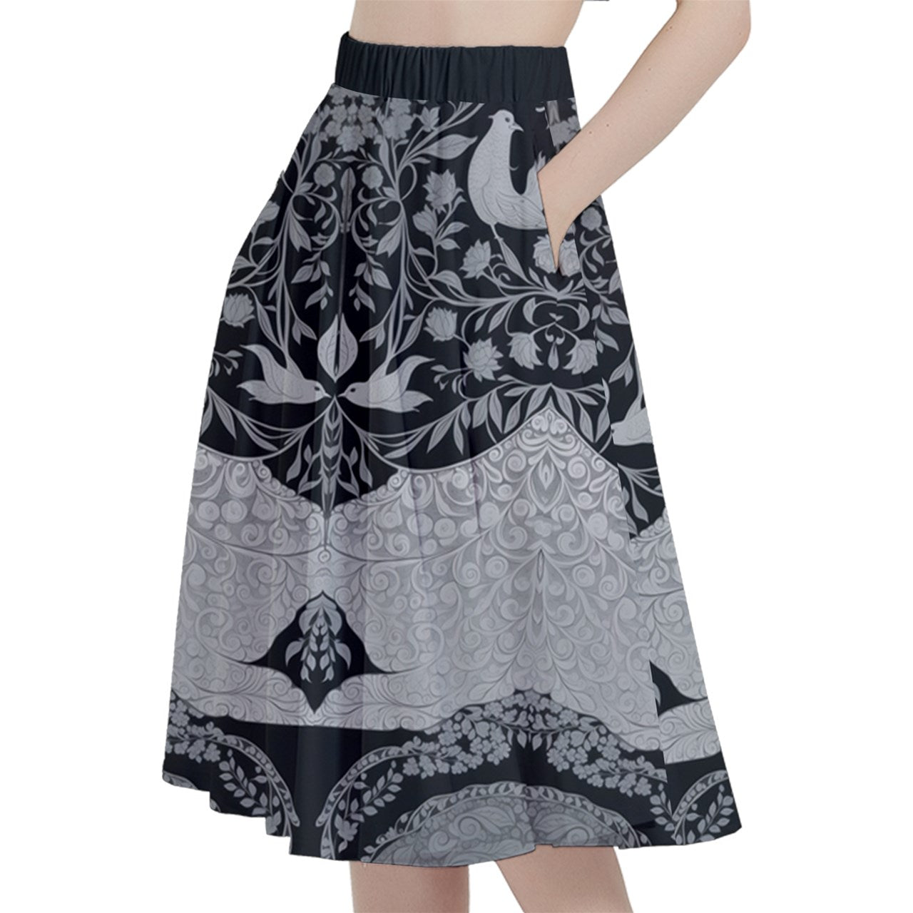 Style 171 A-Line Full Circle Midi Skirt w/ Pocket has full circle flare and is a staple for every wardrobe and full enough for a petticoat, if you'd like. Slip on your new skirt, relax, and have some fun.