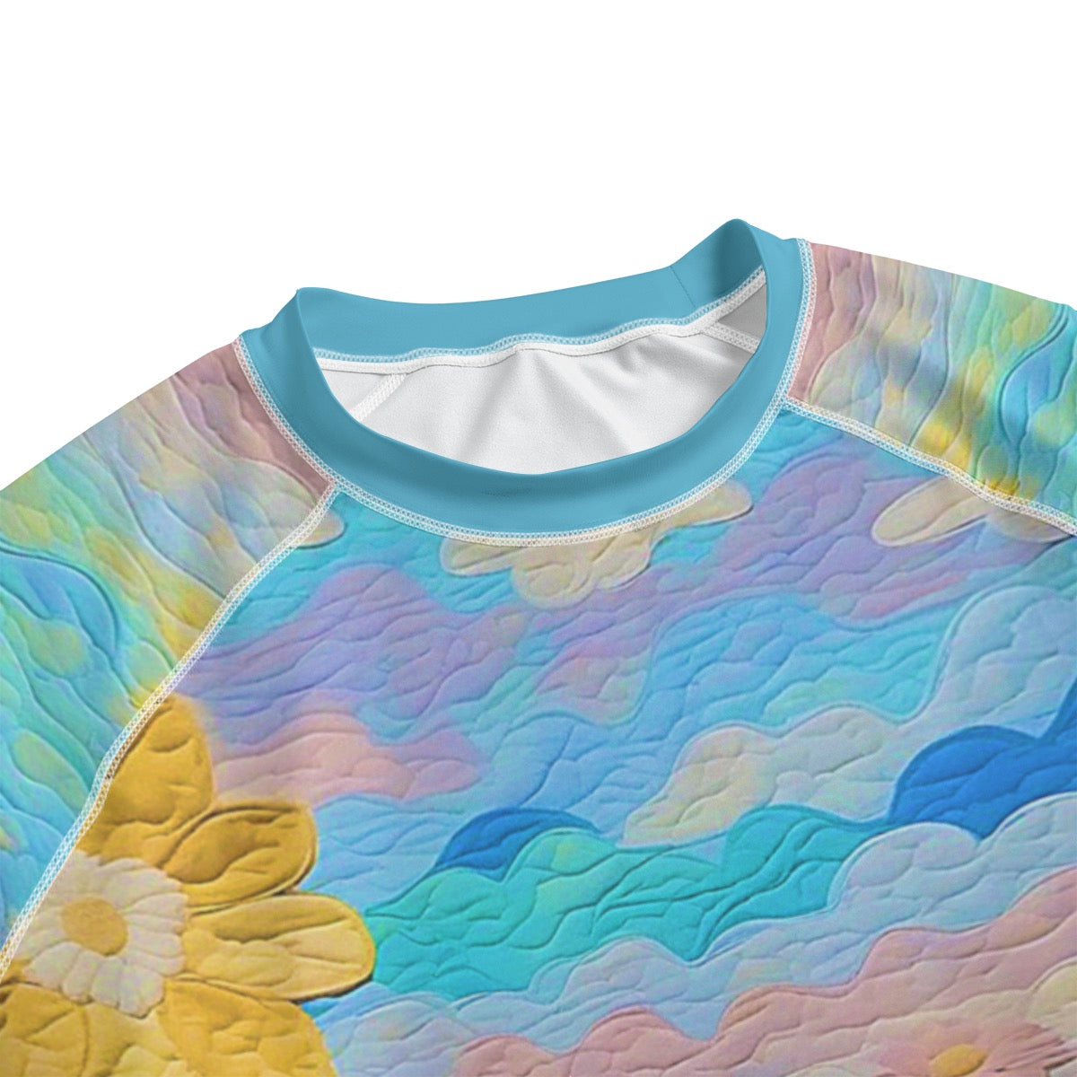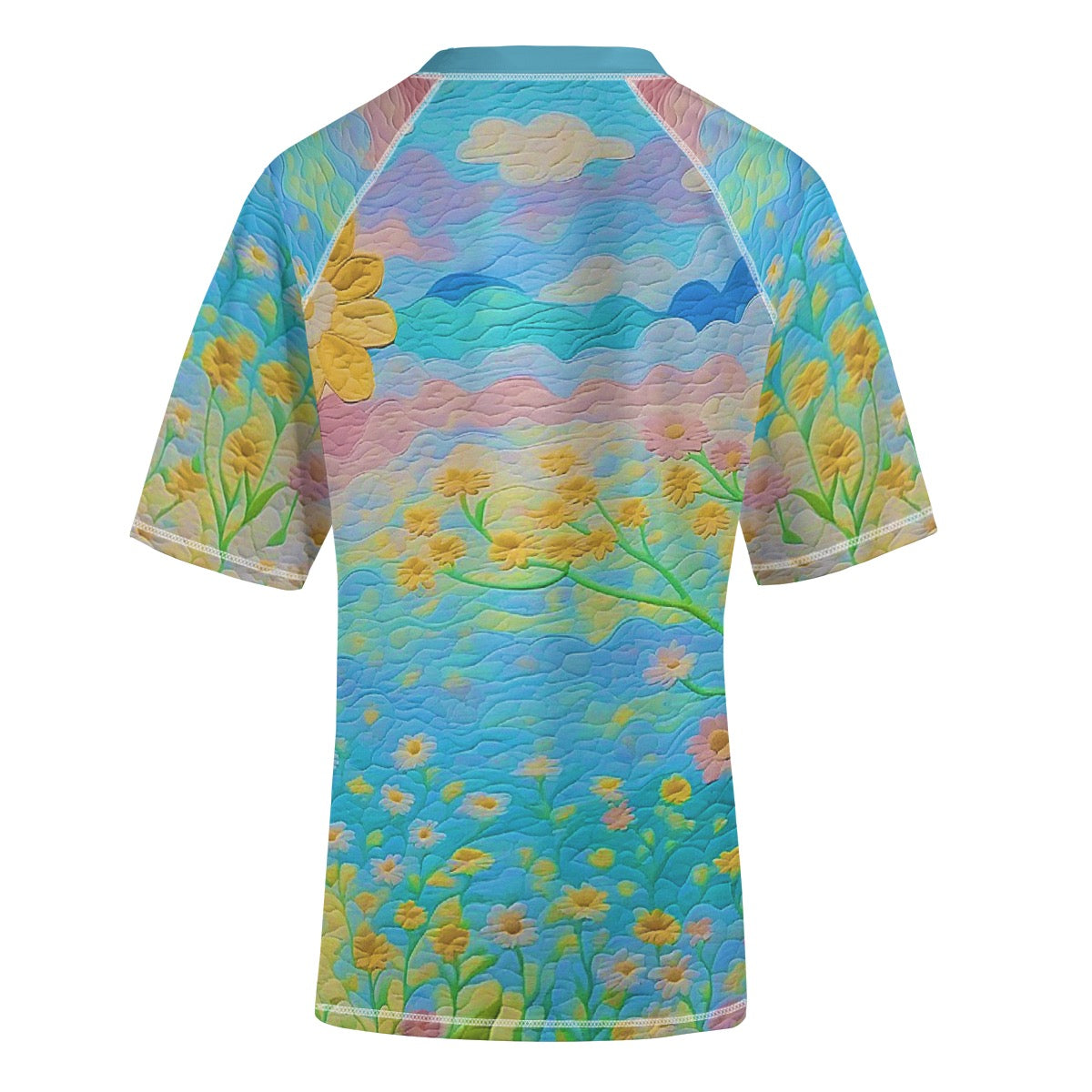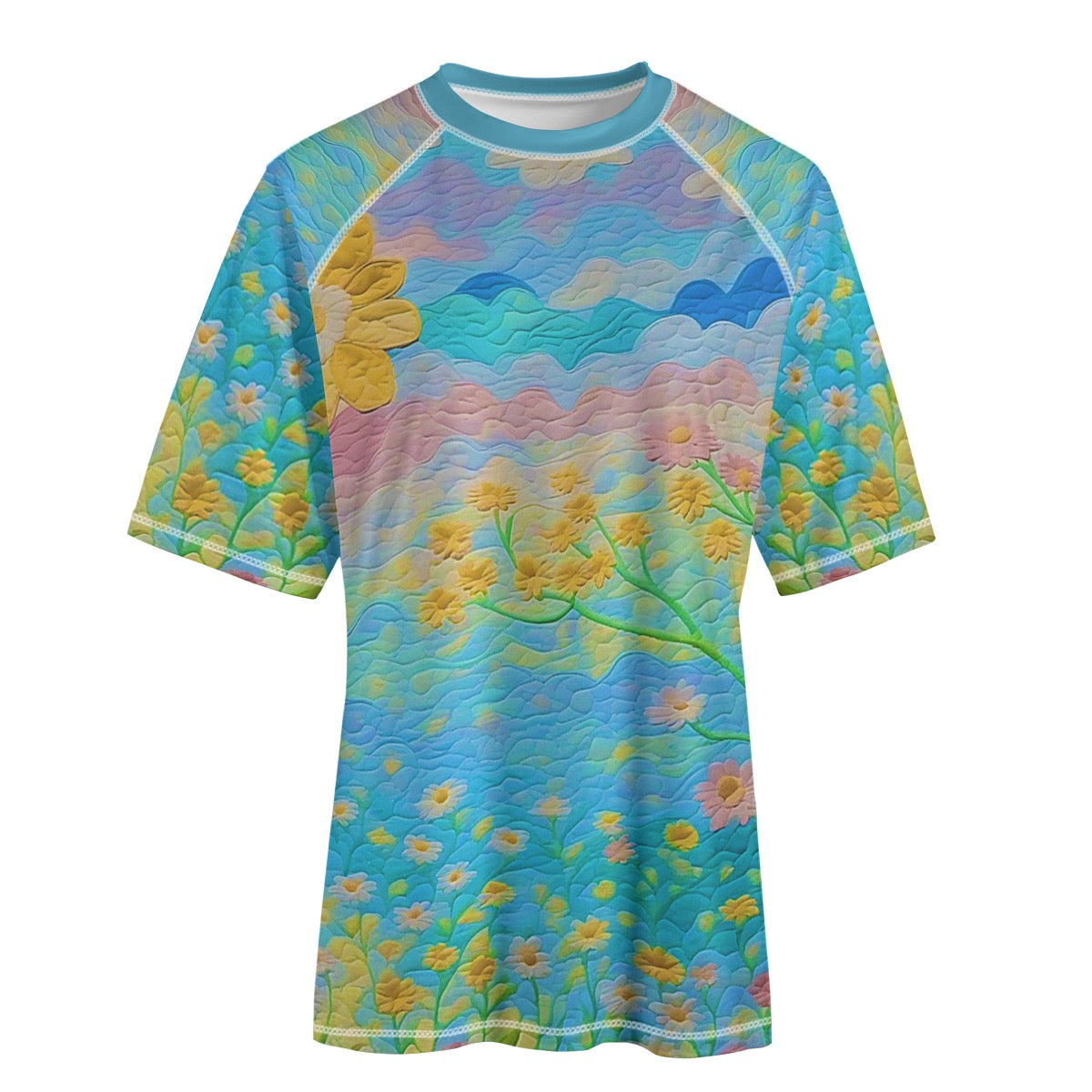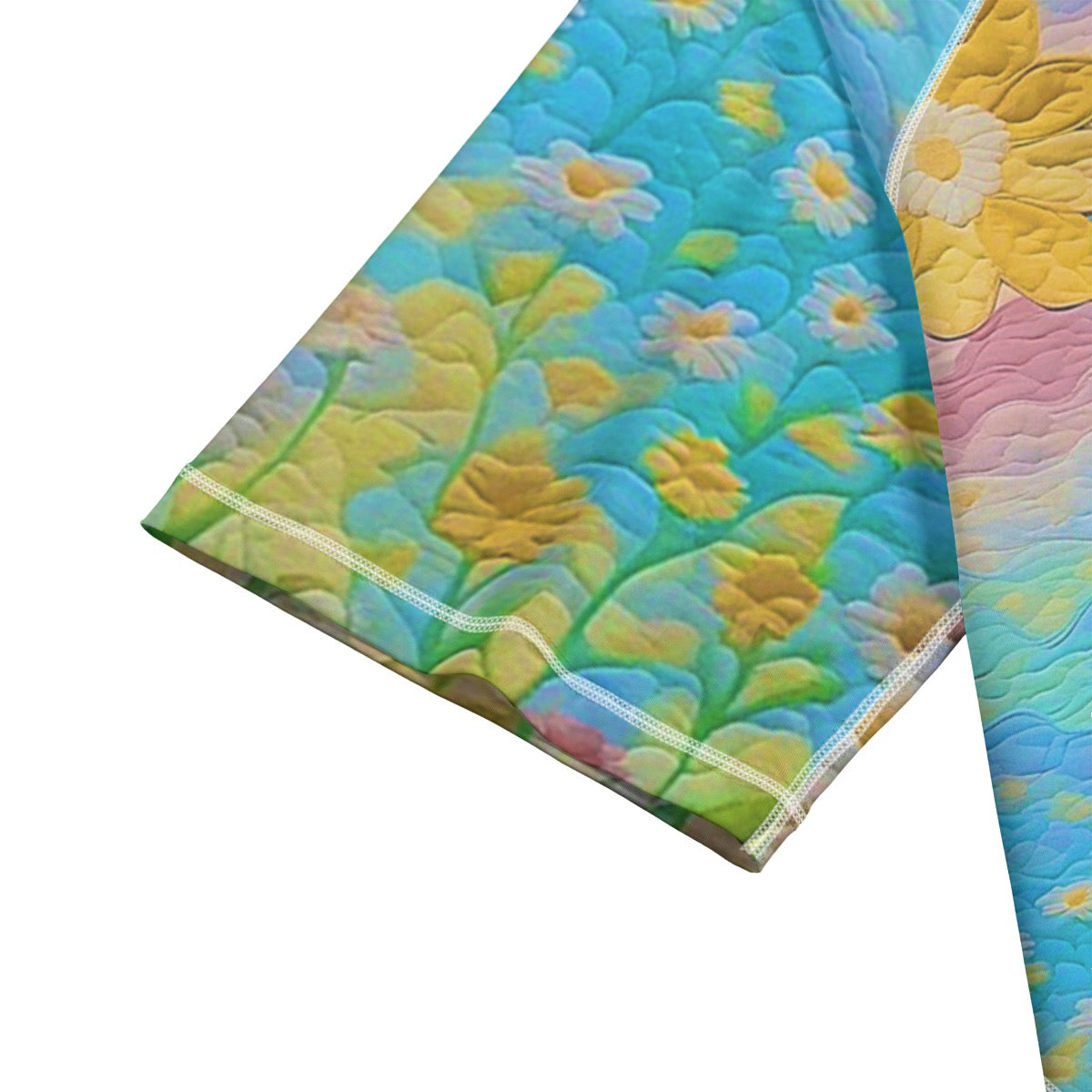 This short-sleeved yoga garment is made of high-quality fabric, has excellent elasticity and comfort, and can meet the needs of various yoga movements. The surface printing is smooth and the color reproduction is high, making your yoga clothes more fashionable and personalized. The unique four-needle and six-thread craftsmanship gives this yoga wear high quality and durability. Additionally, this yoga clothing has excellent breathability and moisture absorption to keep you dry and comfortable while practicing yoga. All in all, this yoga wear is an ideal choice if you are looking for high quality, comfort and personalization.