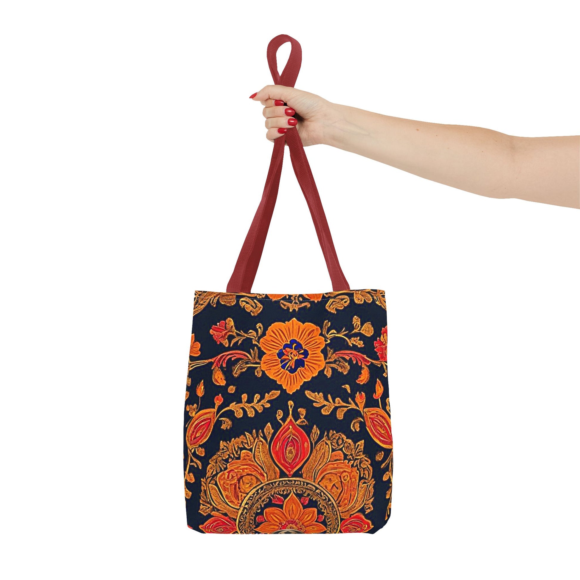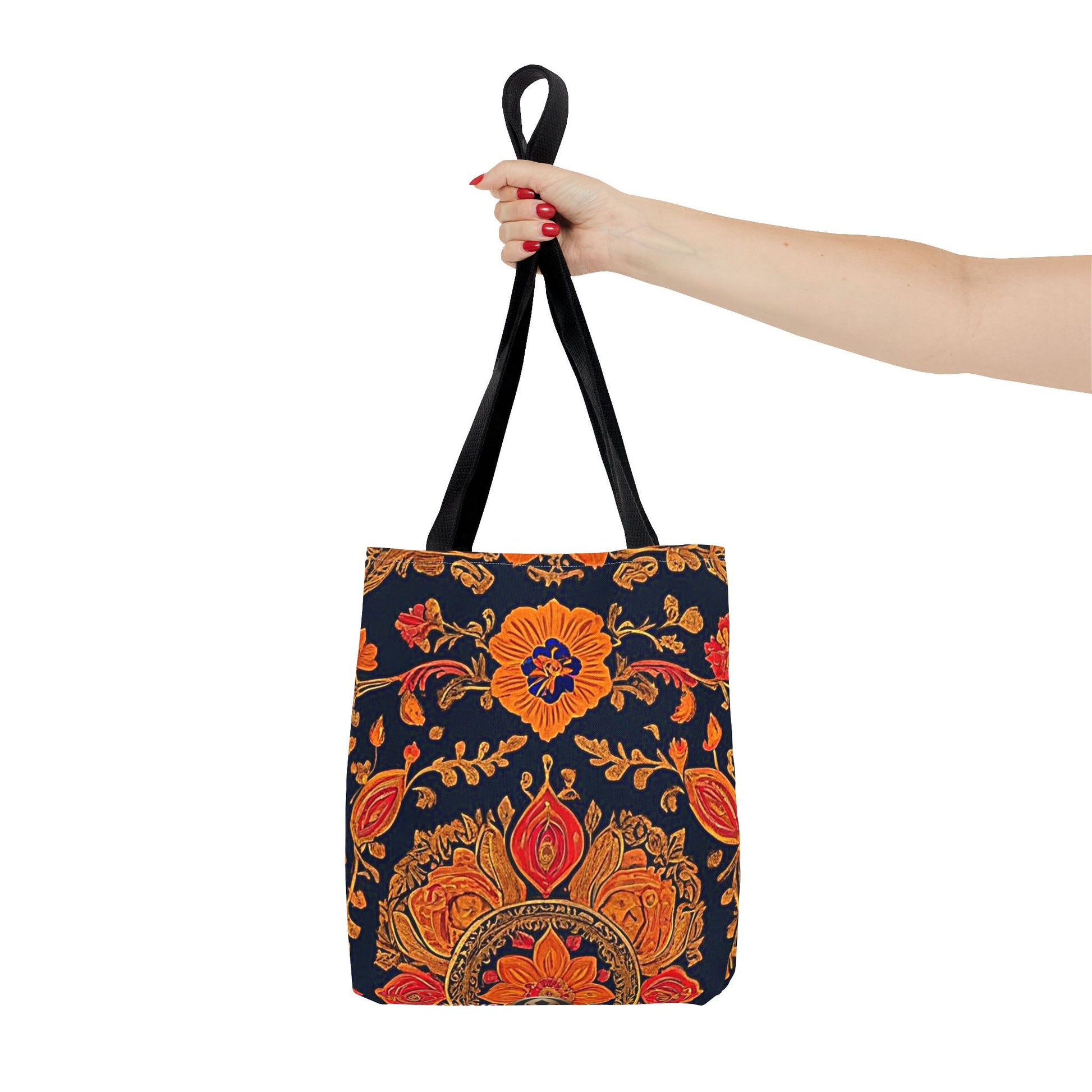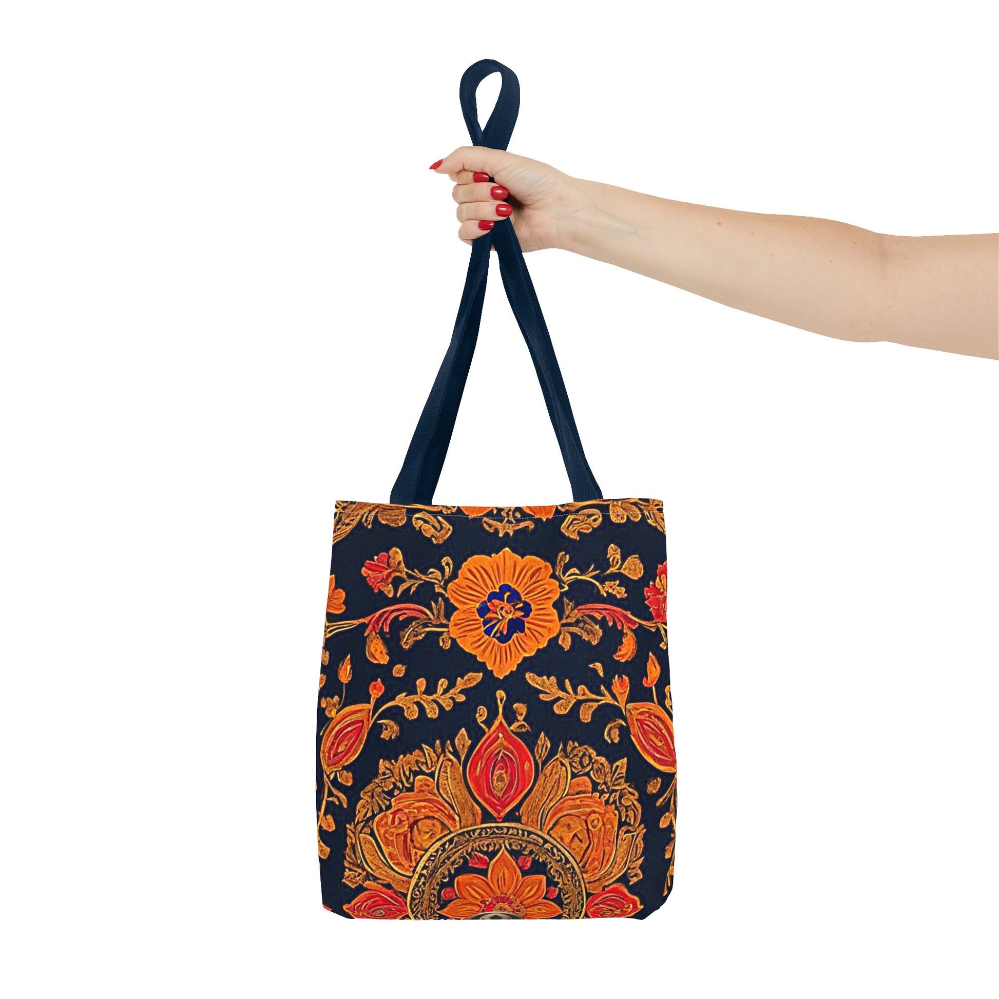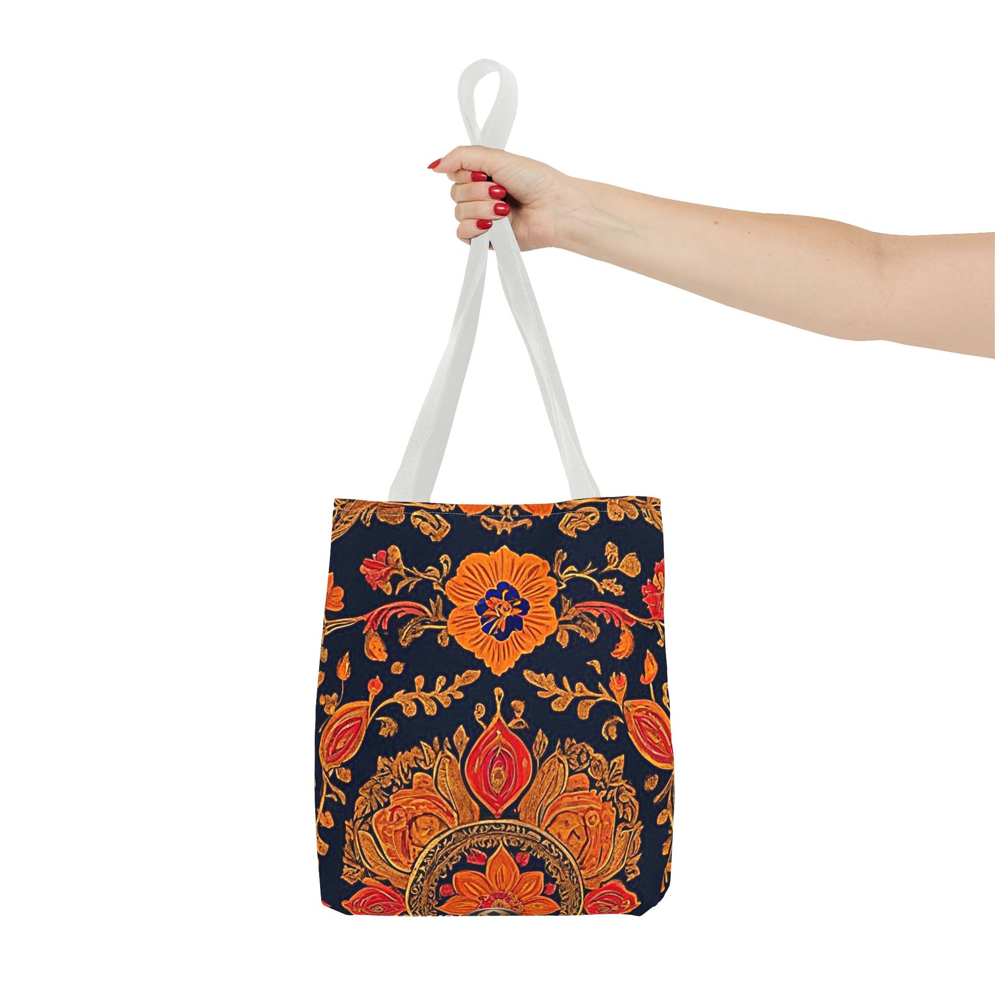 Treat yourself to a lush look with this gorgeous tote bag. Perfect for everyday use, this durable tote bag is made with 100% polyester and comes with 5 handle color options.