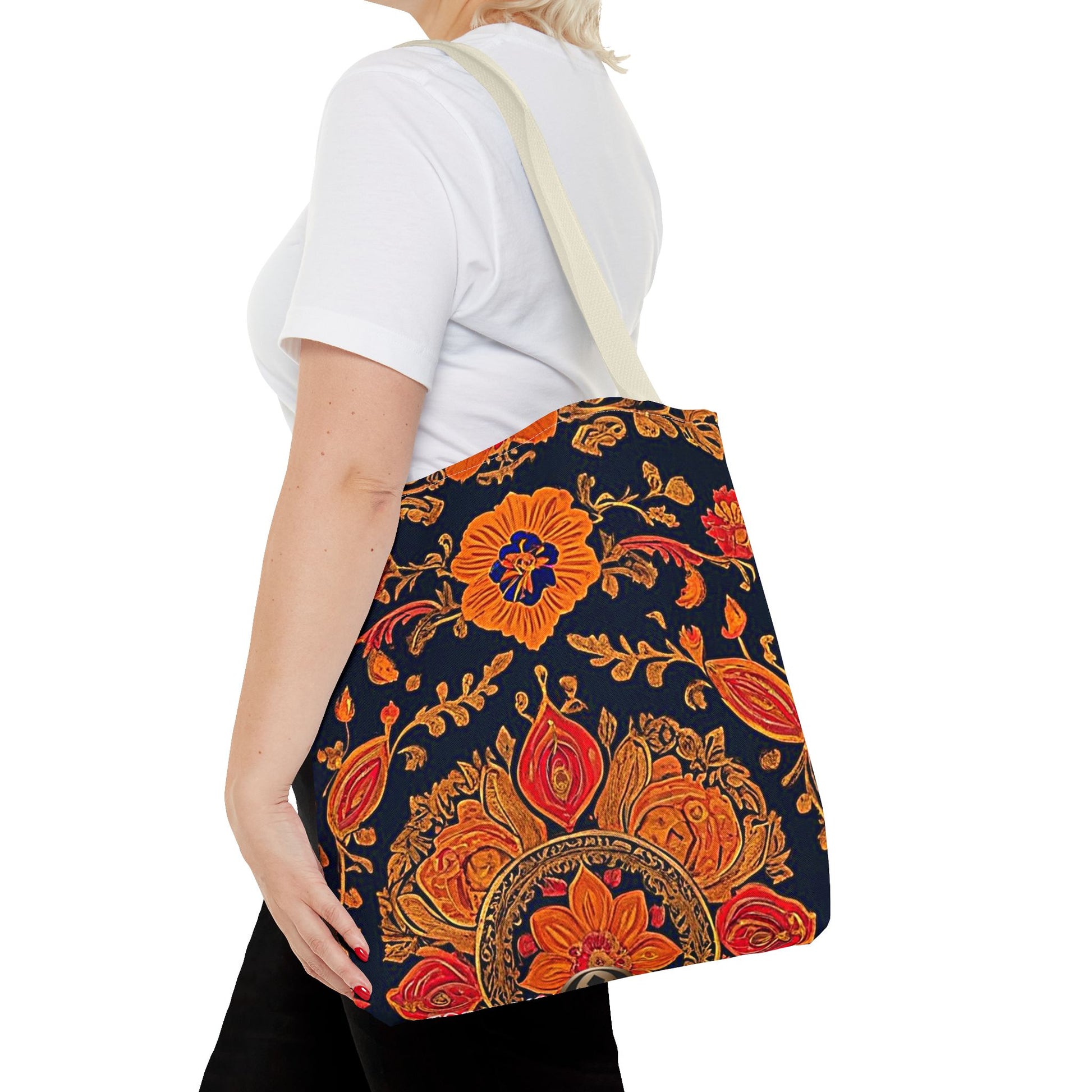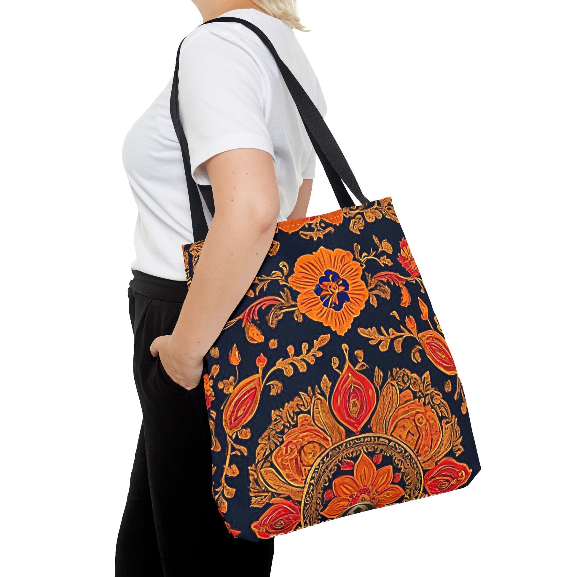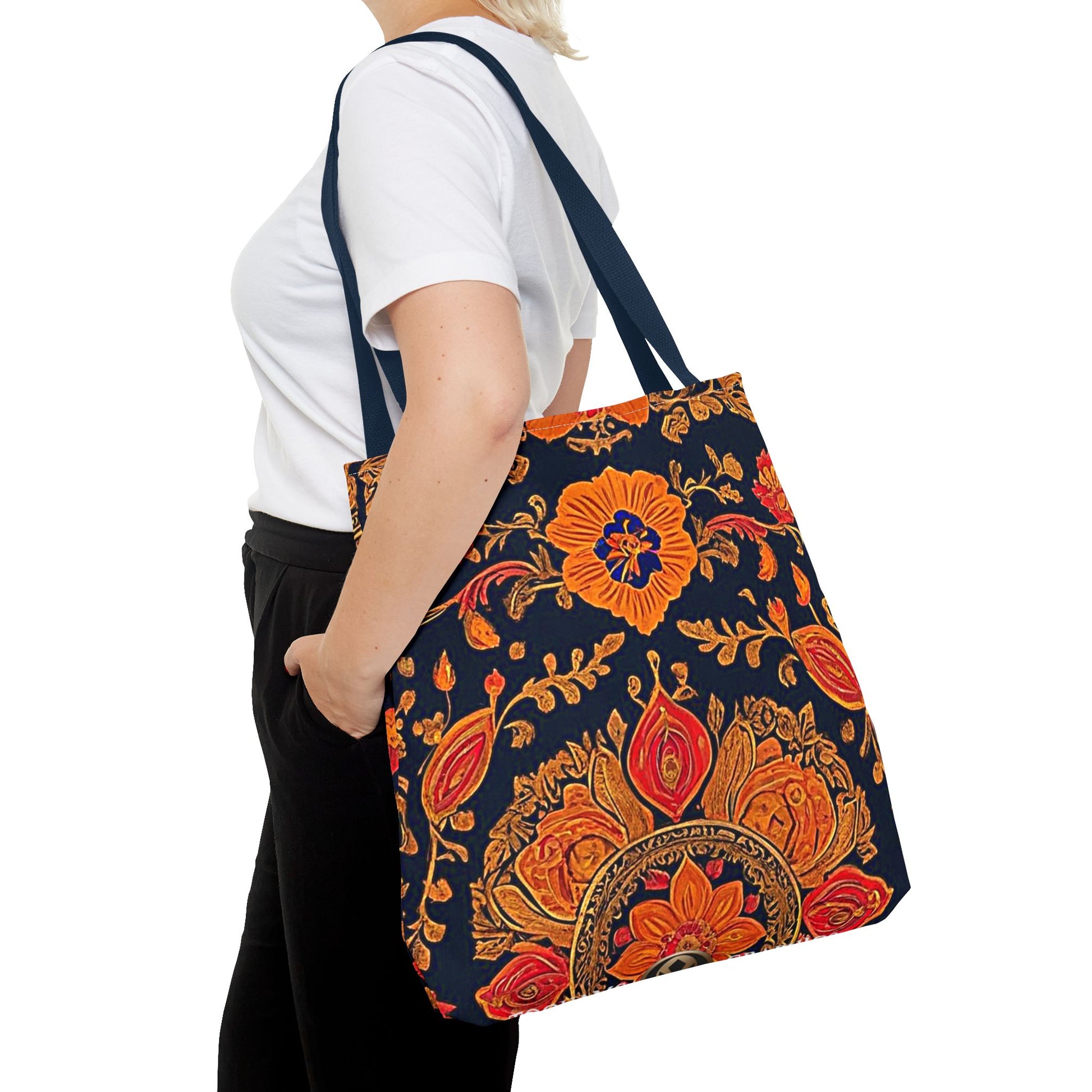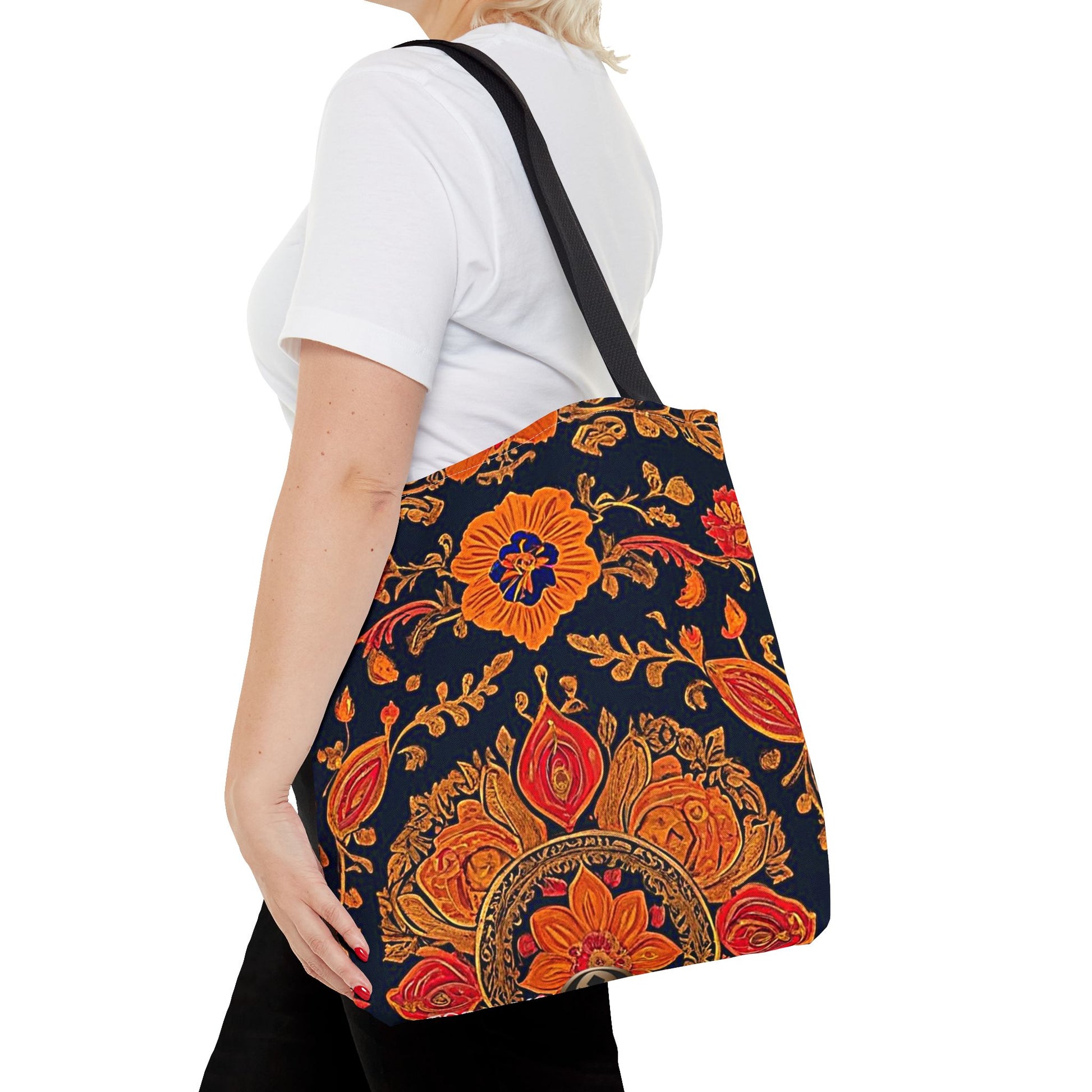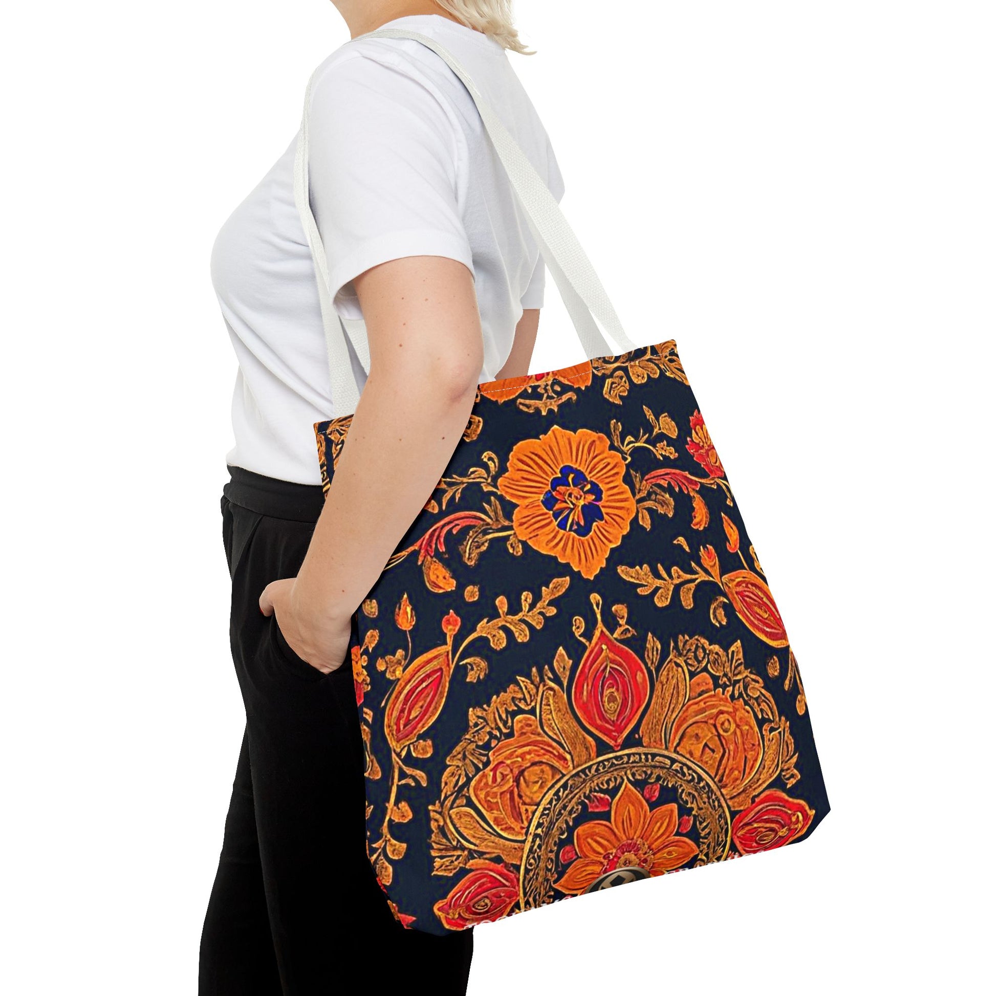 Treat yourself to a lush look with this gorgeous tote bag. Perfect for everyday use, this durable tote bag is made with 100% polyester and comes with 5 handle color options.