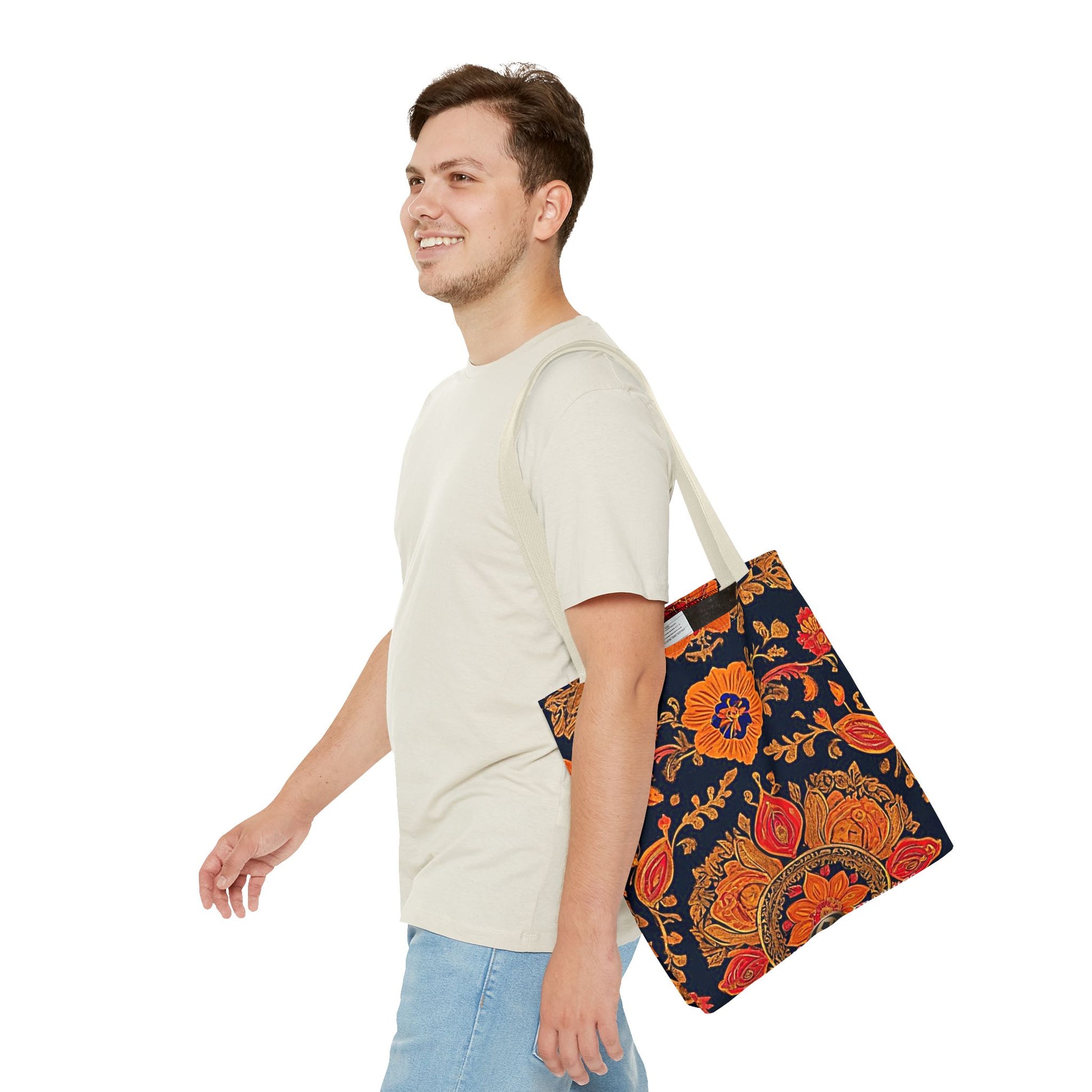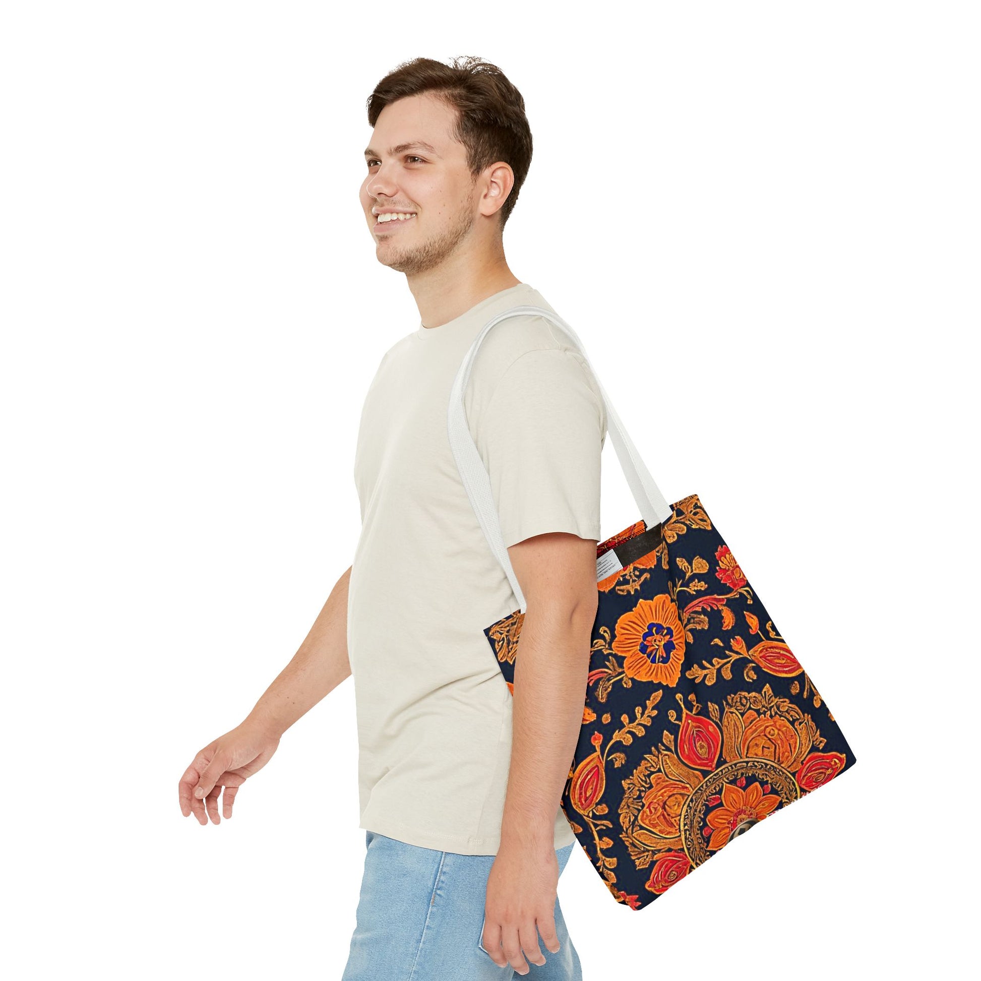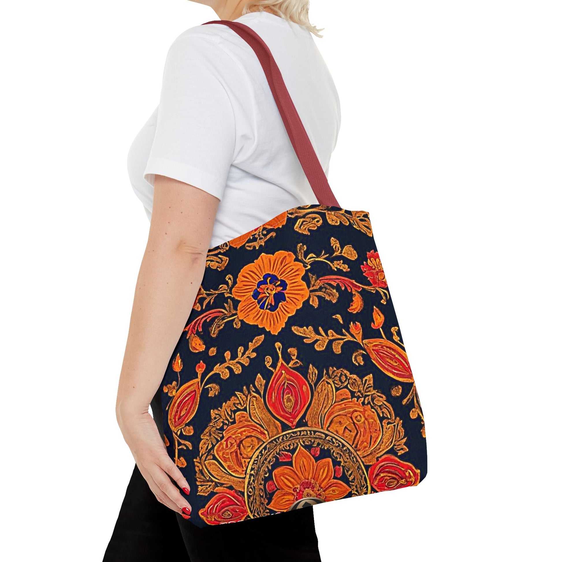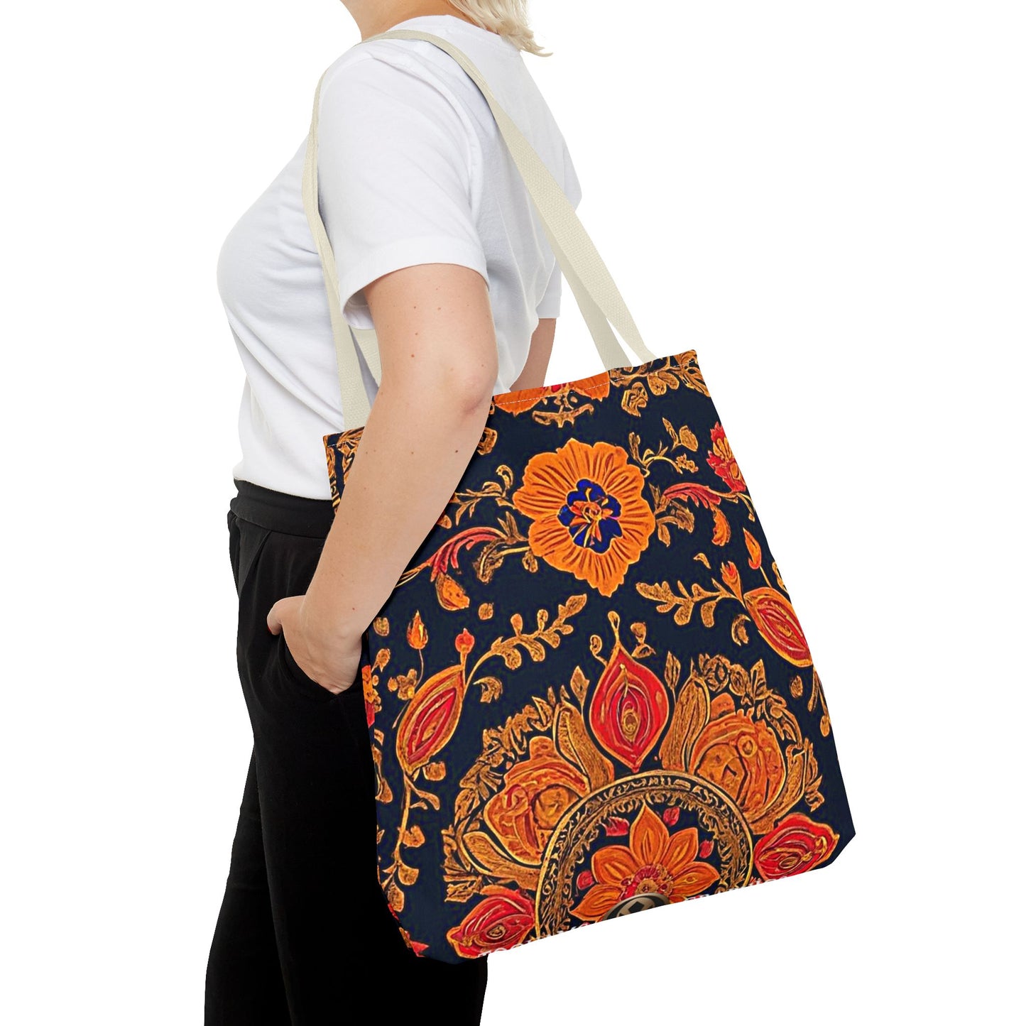 Treat yourself to a lush look with this gorgeous tote bag. Perfect for everyday use, this durable tote bag is made with 100% polyester and comes with 5 handle color options.