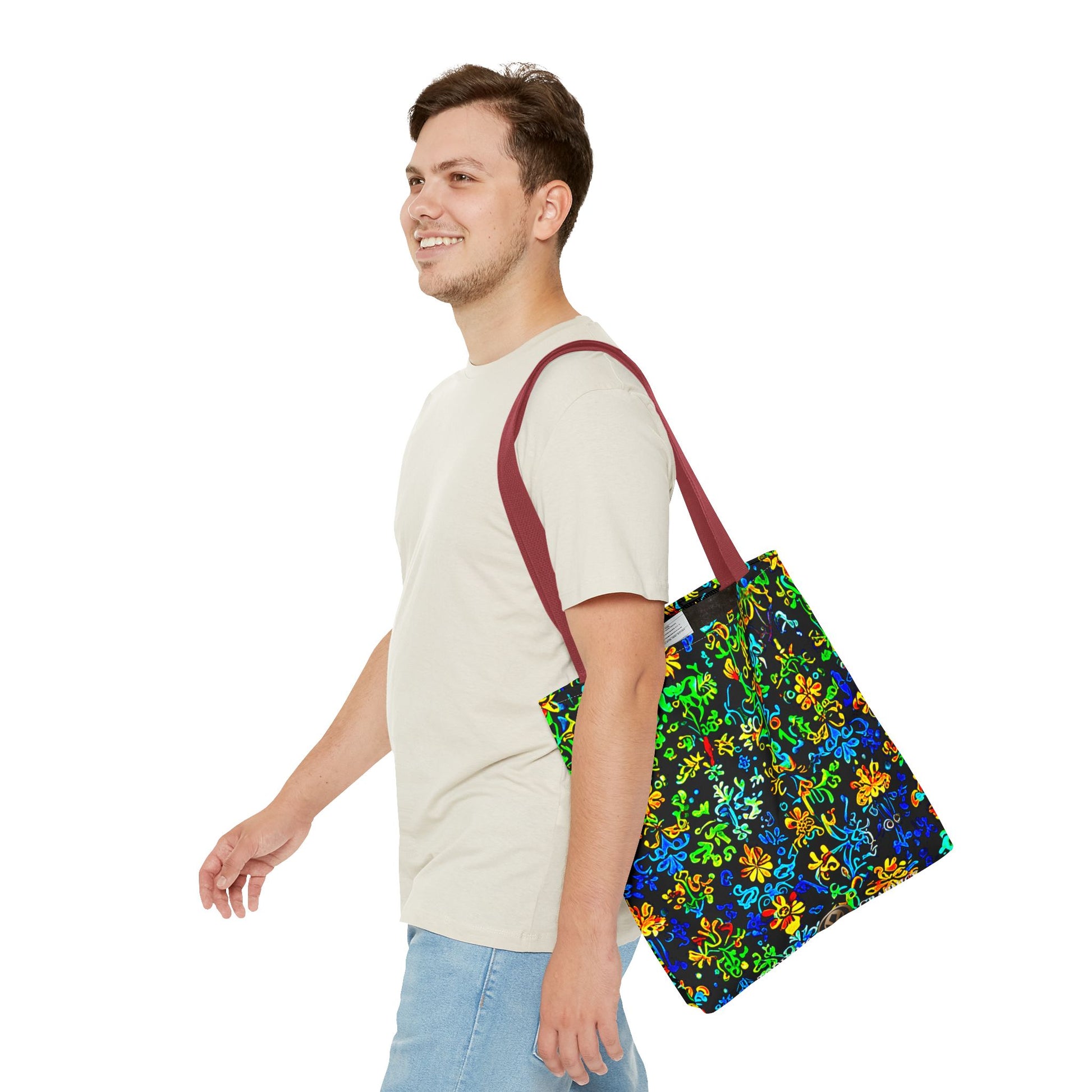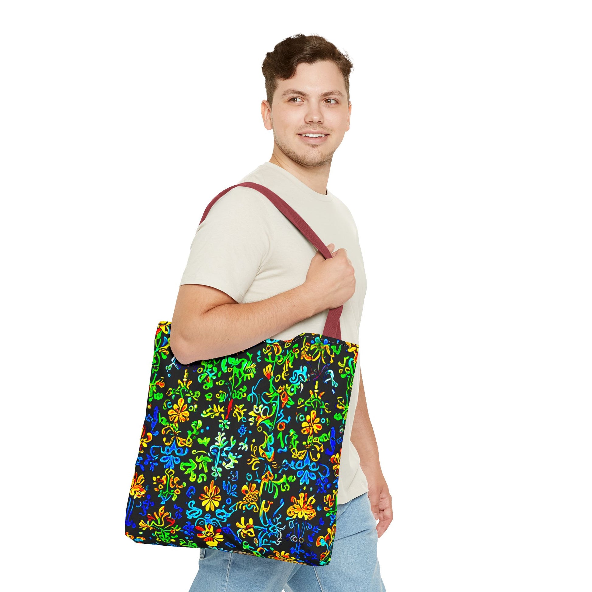 Available in 3 sizes to add both functionality and style, these custom-printed tote bags come with multiple handle colors to match your designs. Made with spun polyester, these bags feature double-stitched seams, cotton webbing straps, and nonwoven laminate lining for high-end durability. Your all-over print is created with dye sublimation for high-end visuals.