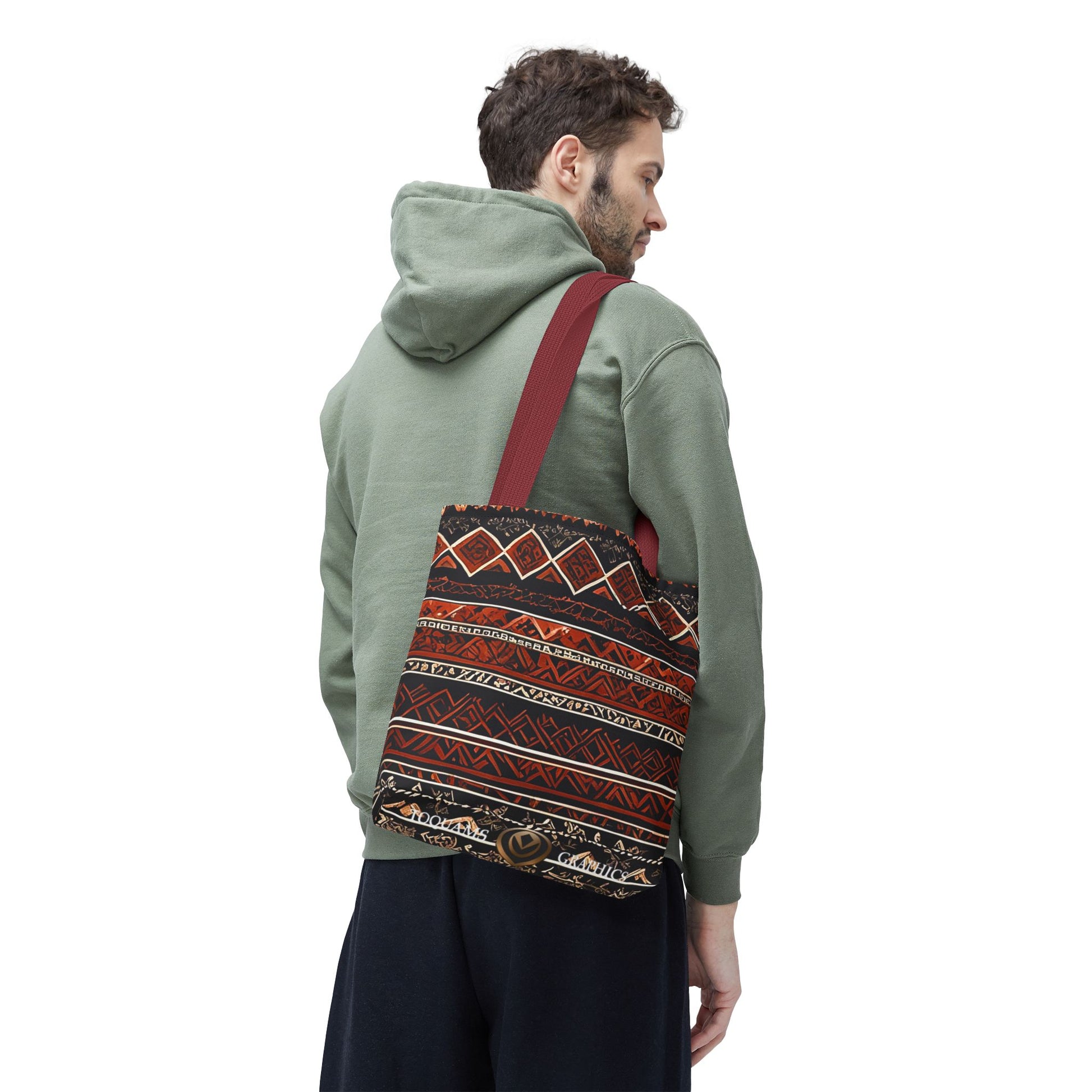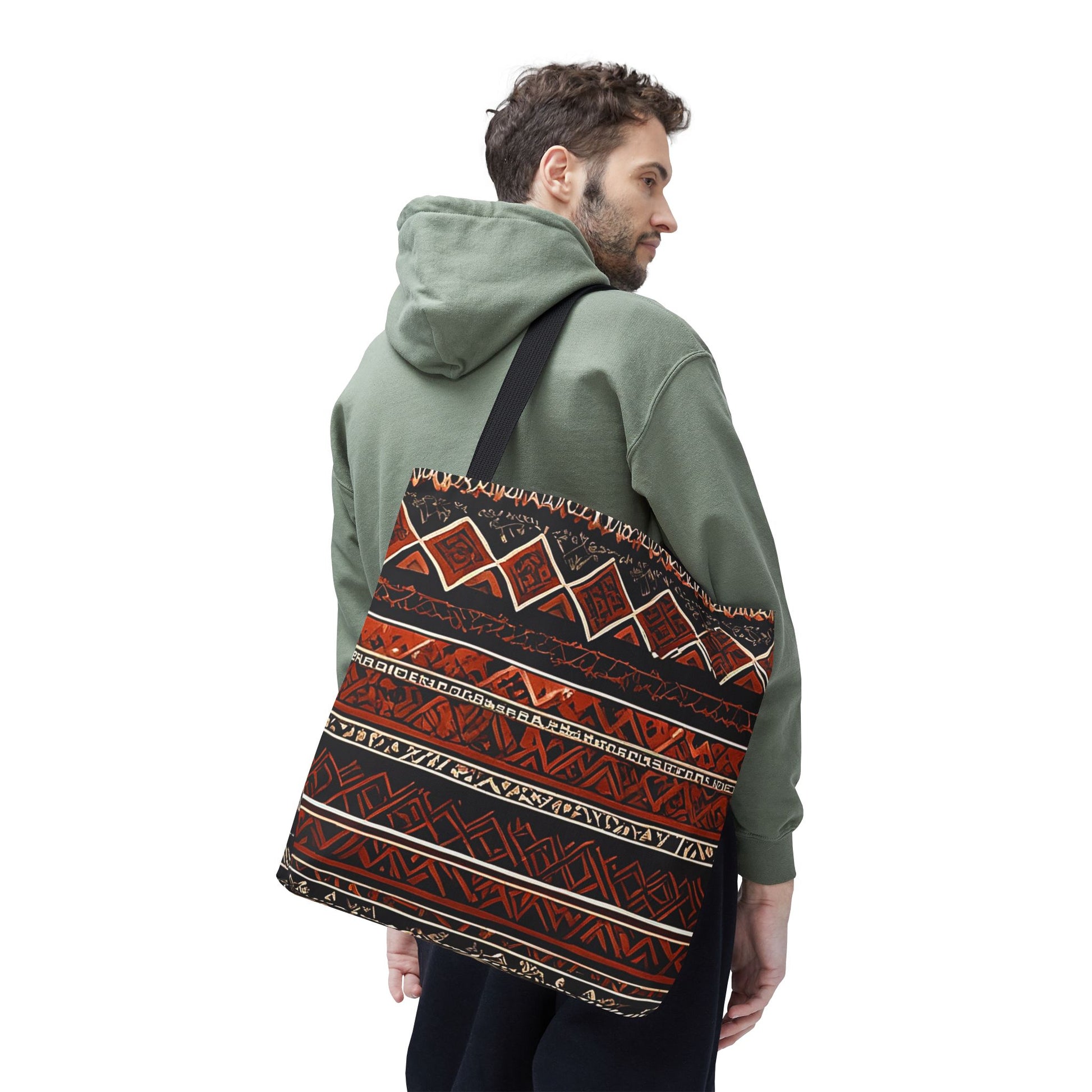 Perfect for those who love exploring the city, traveling to new towns, or enjoying a relaxing picnic in the park. This patterned tote bag is great for carrying everyday essentials or new treasures, providing a stylish and practical accessory for on-the-go adventures. Ideal for city dwellers, travelers, and outdoor enthusiasts. Relevant for picnics, travel, and everyday use.