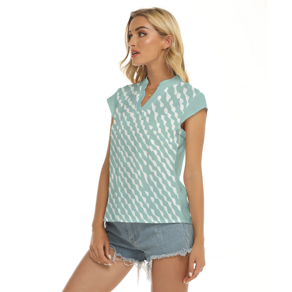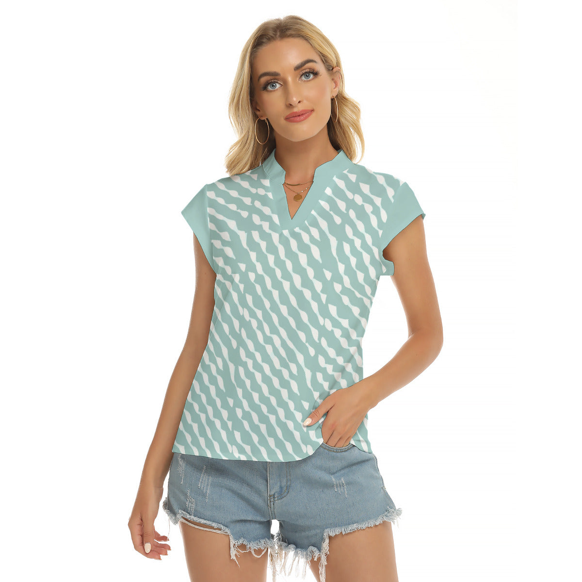 Waves -- Women's Stacked V-neck Short Sleeve Blouse