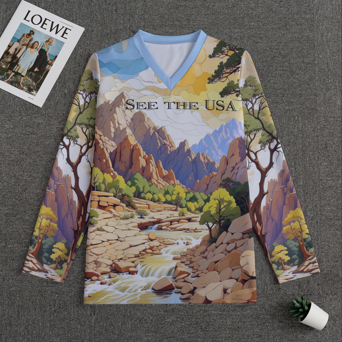 Zion Nat'l Park -- Men's V-neck Sweatshirt With Long Sleeve
